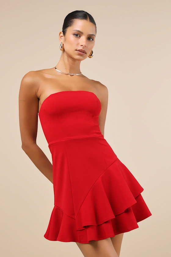Sizzling Soirées Strapless Mini Dress Red