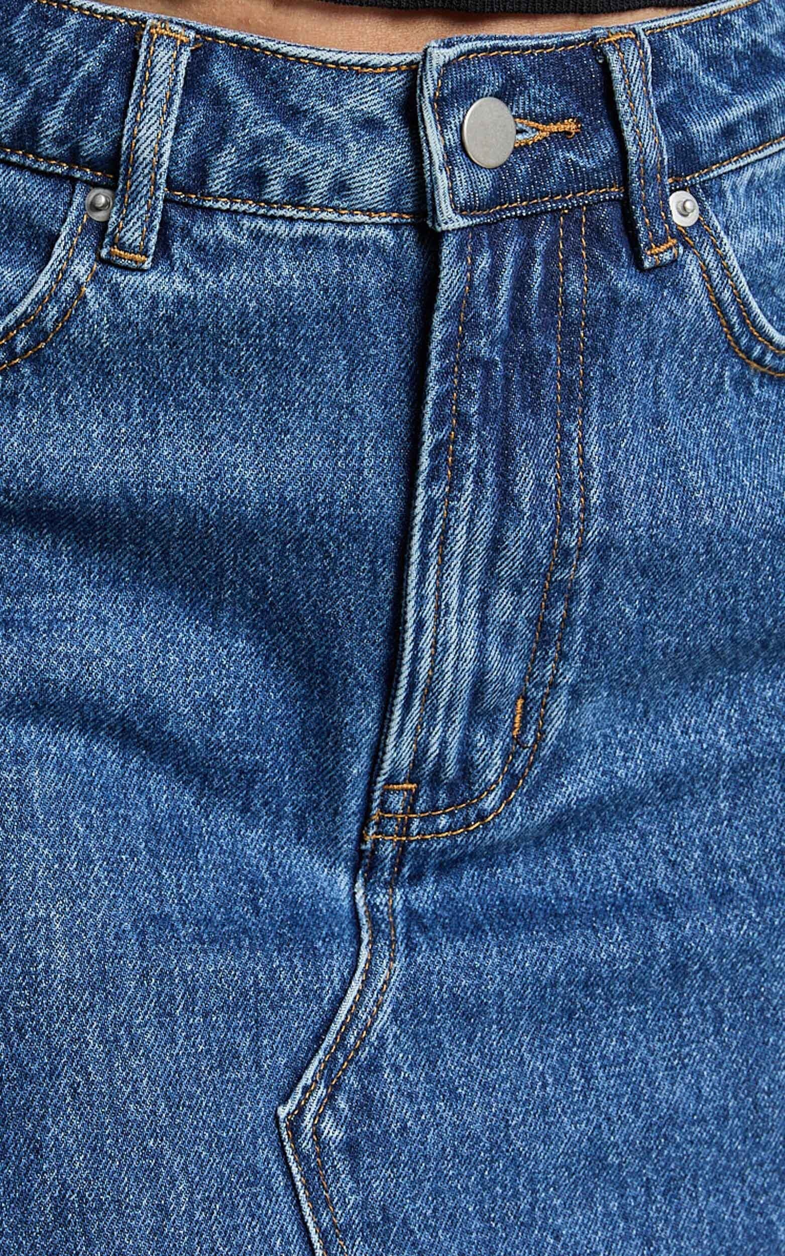Kira Midi Skirt - Front Split Denim Skirt in Dark Blue Wash