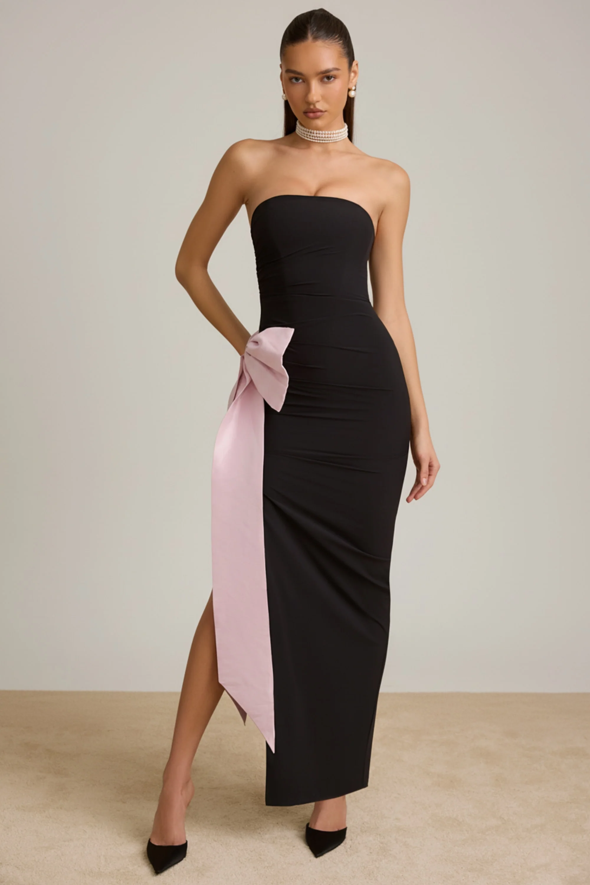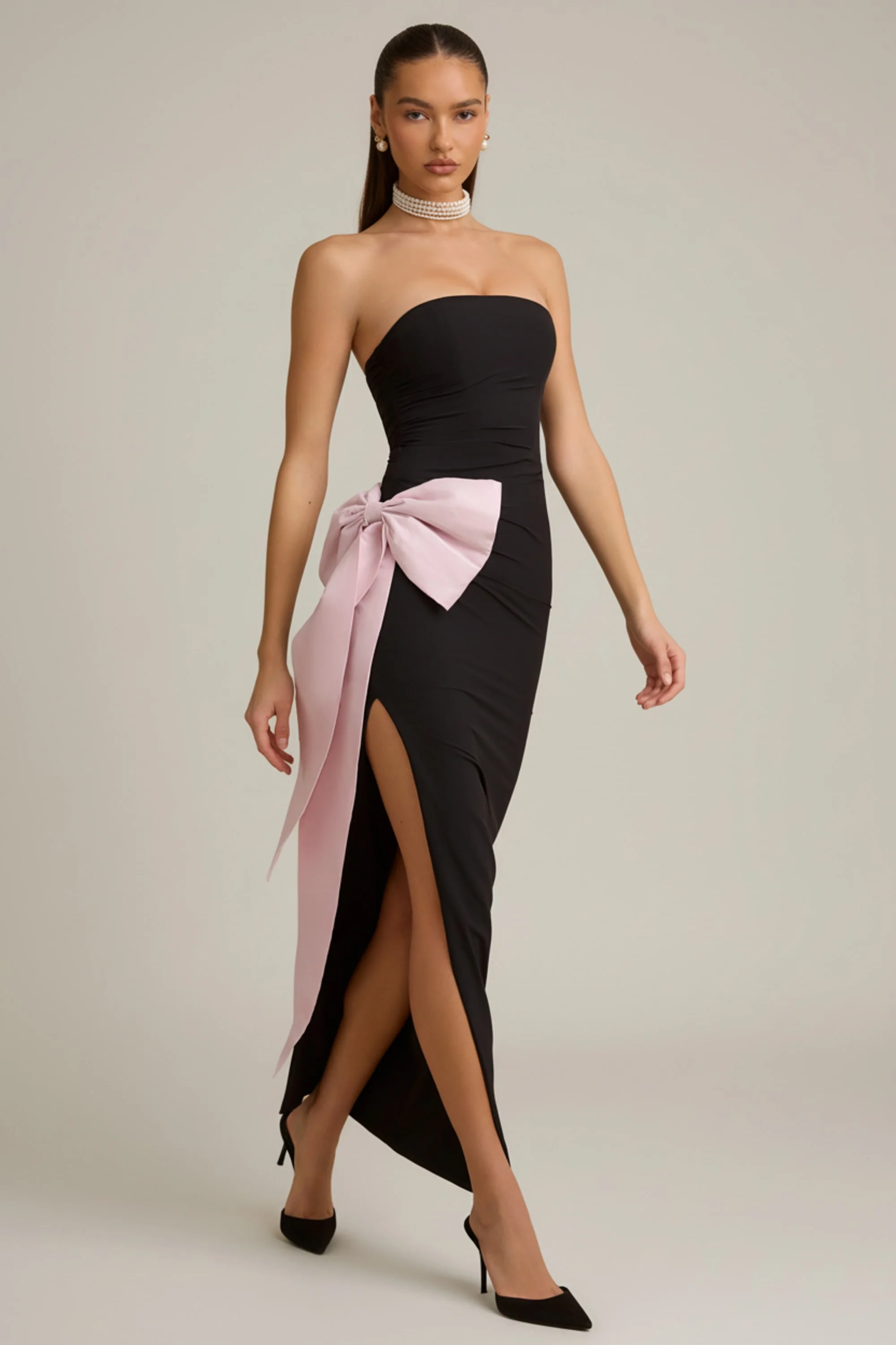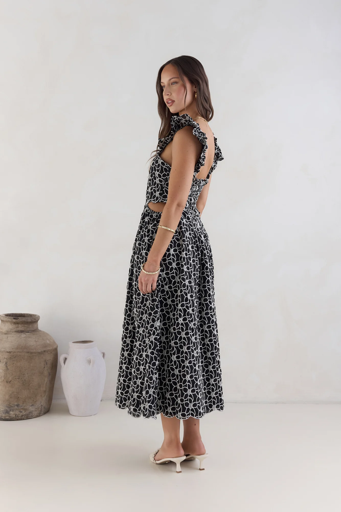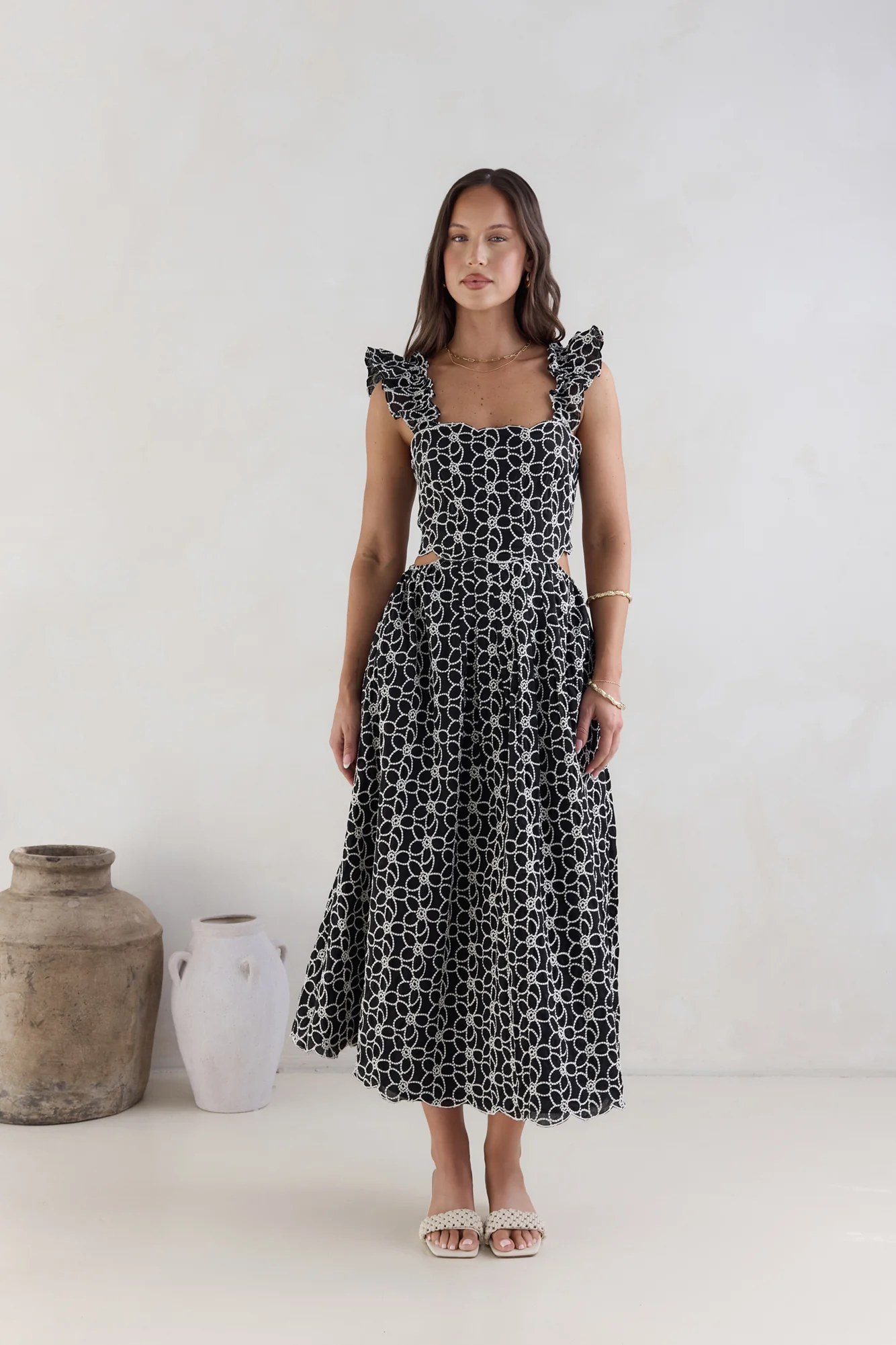 Arrabel Tiered Ruffle Tulle Maxi Dress Black