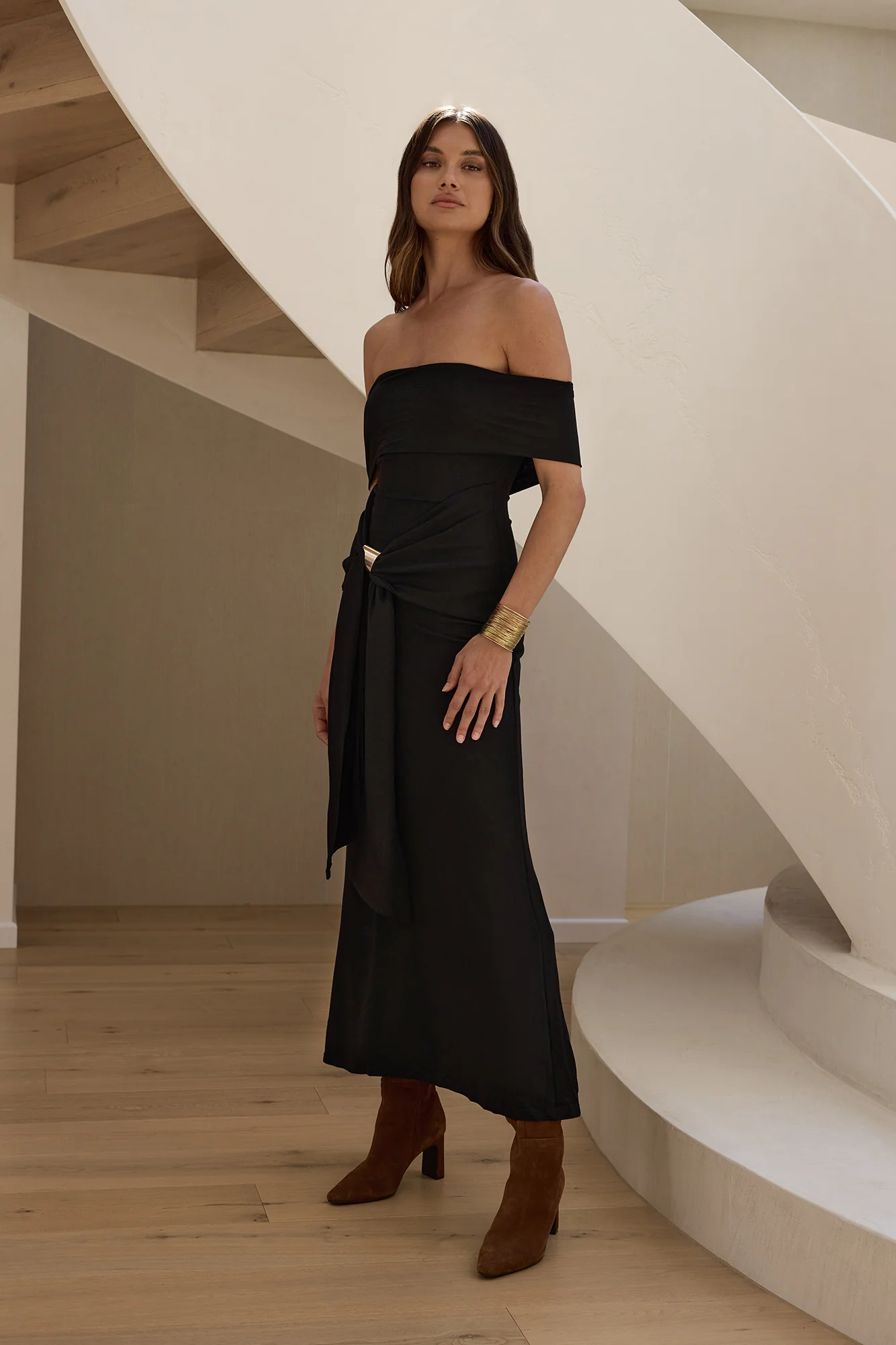 Sands Of Somewhere Off Shoulder Maxi Dress Black
