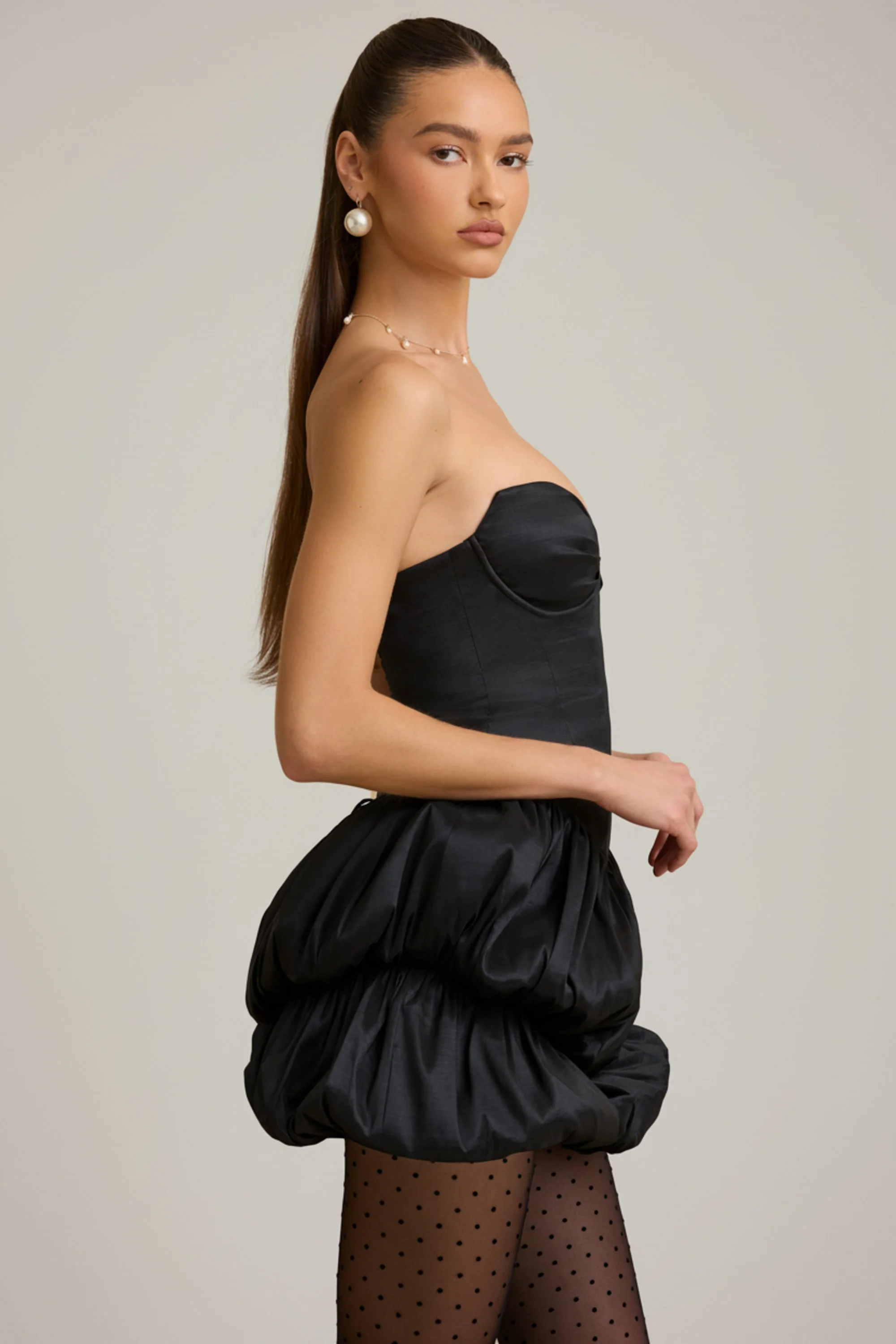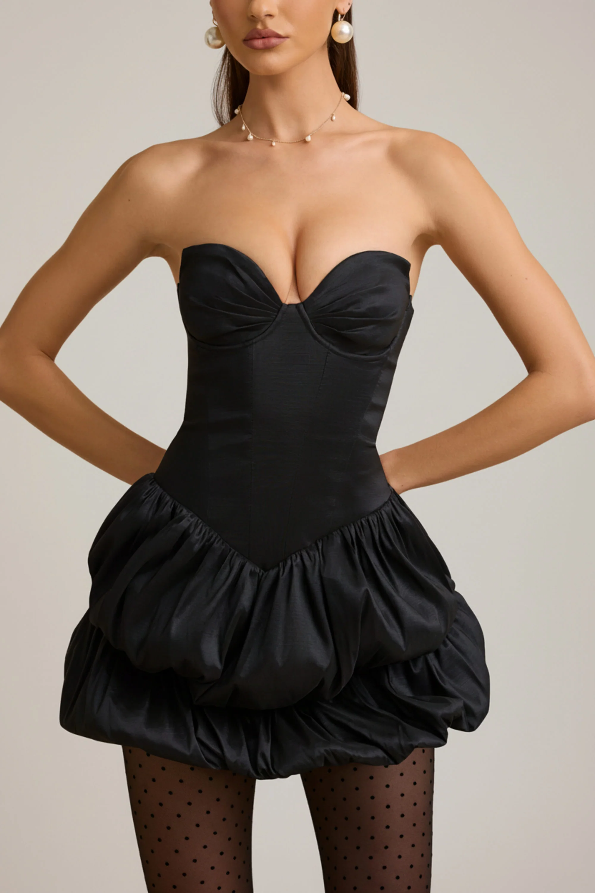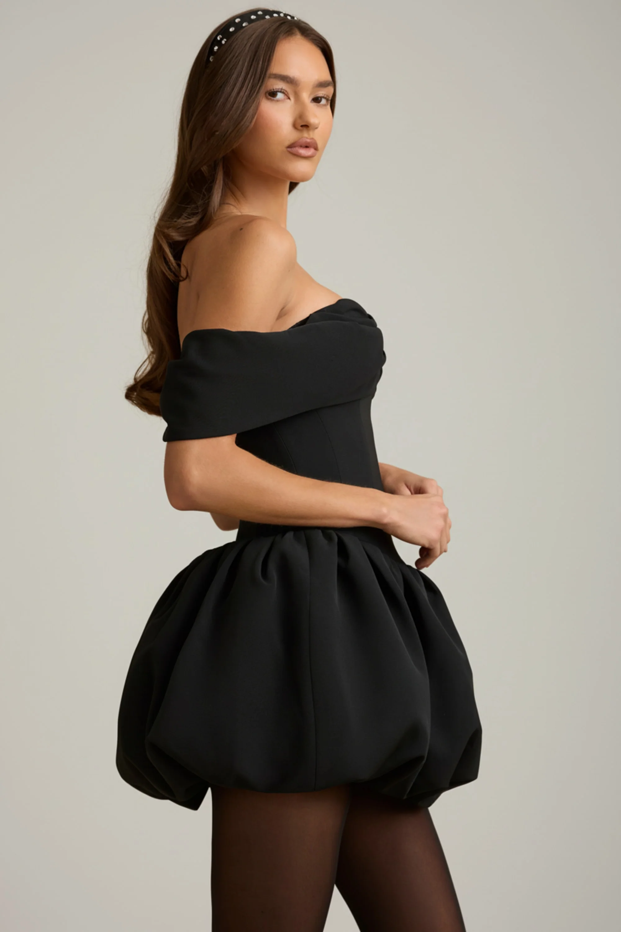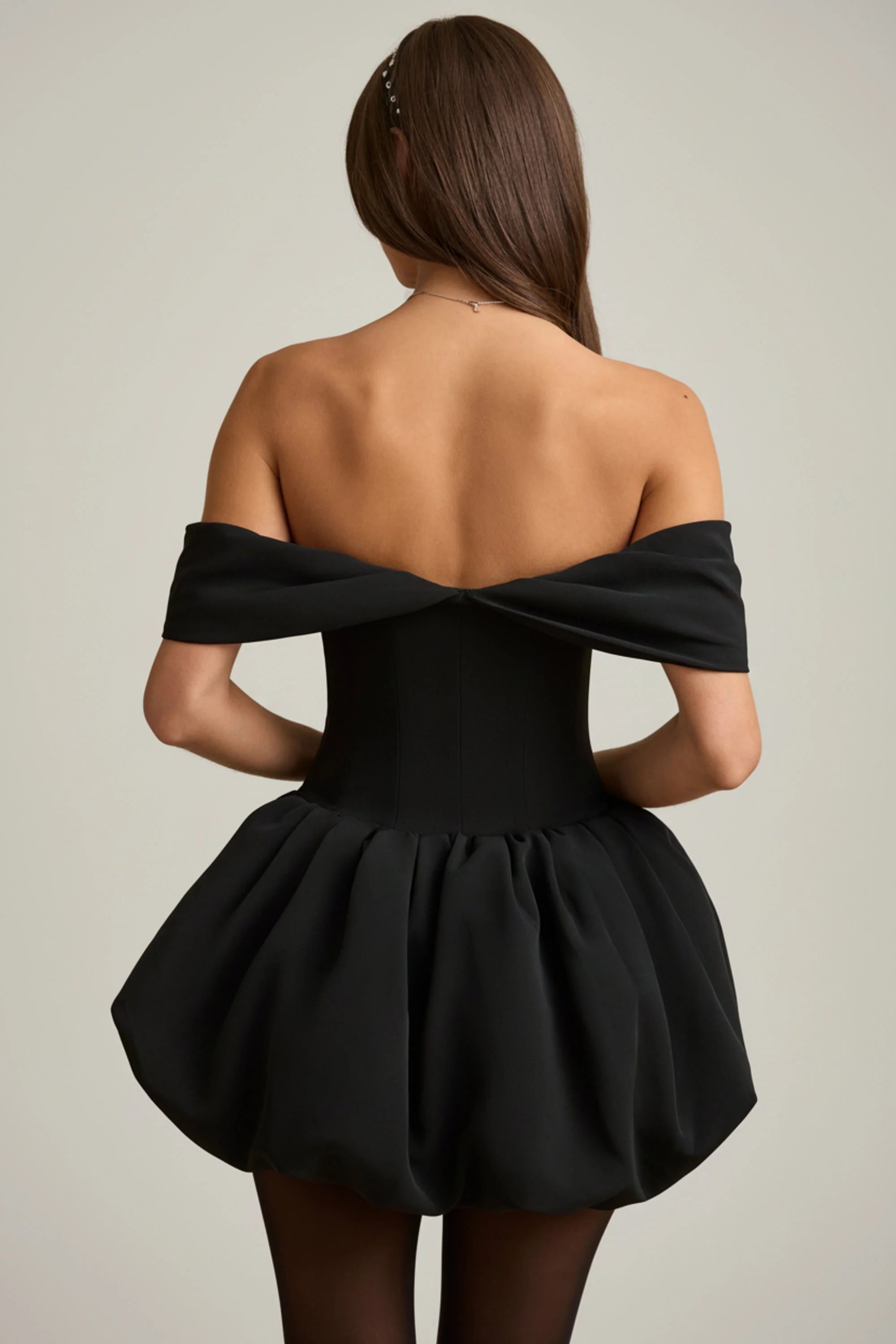 Off-Shoulder Layered Bubble Hem Corset Mini Dress in Black
