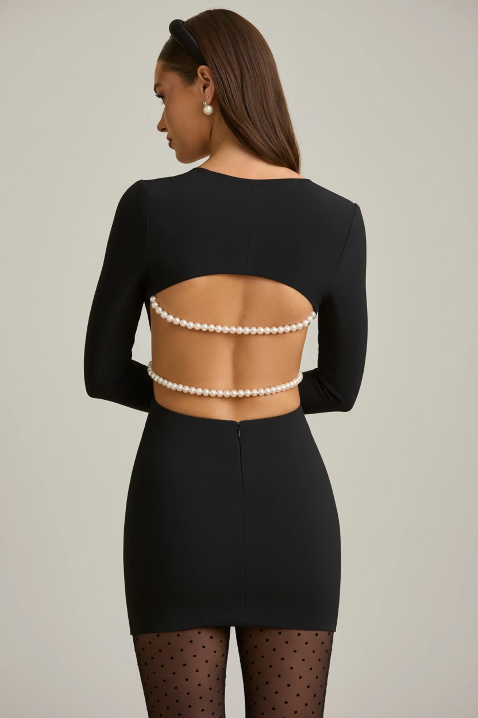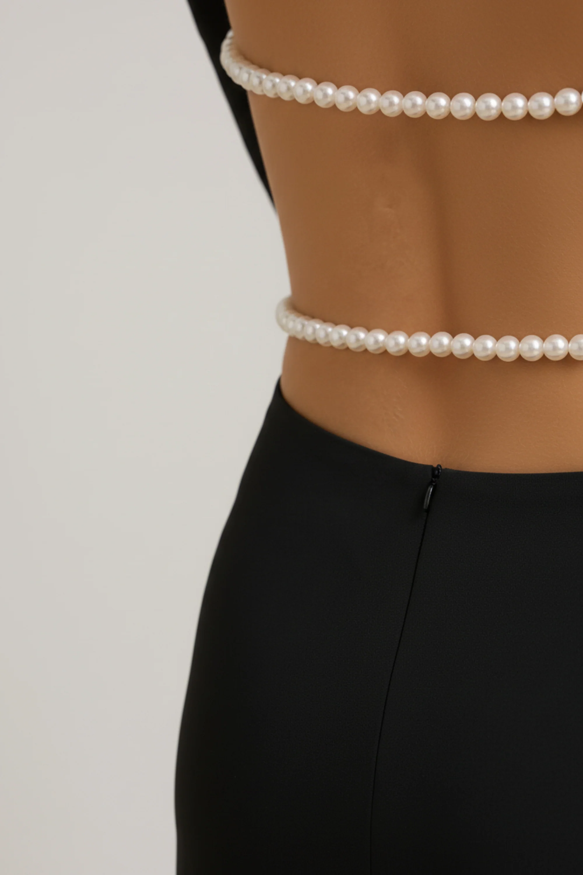Pearl-Detail Cut-Out Maxi Dress in Black