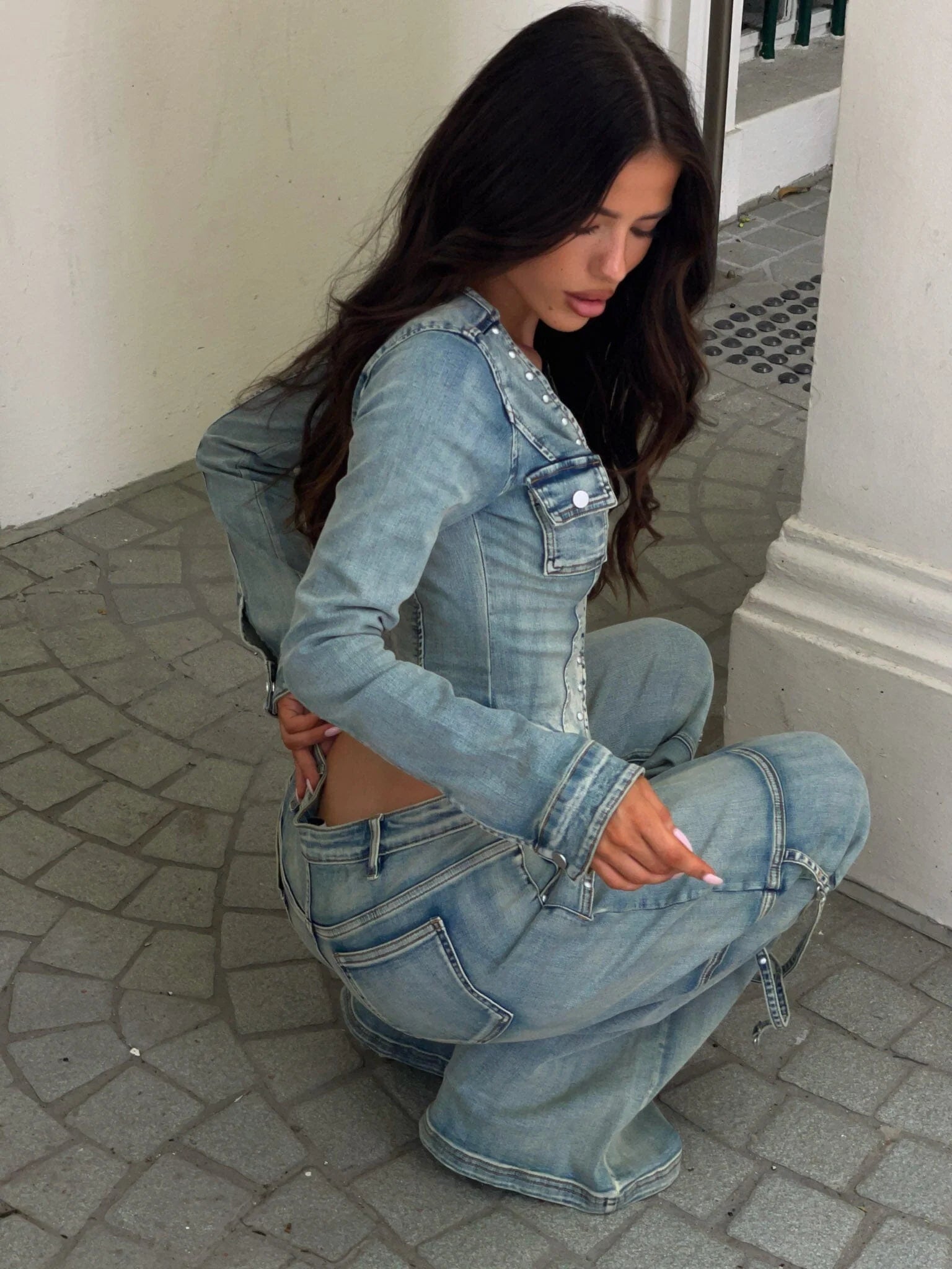 Johnny Low Rise Wide Leg Jeans - Grey Charcoal