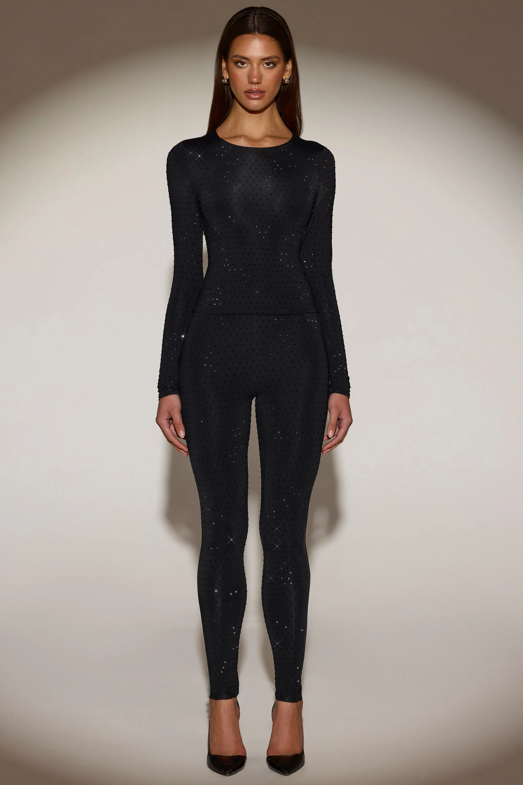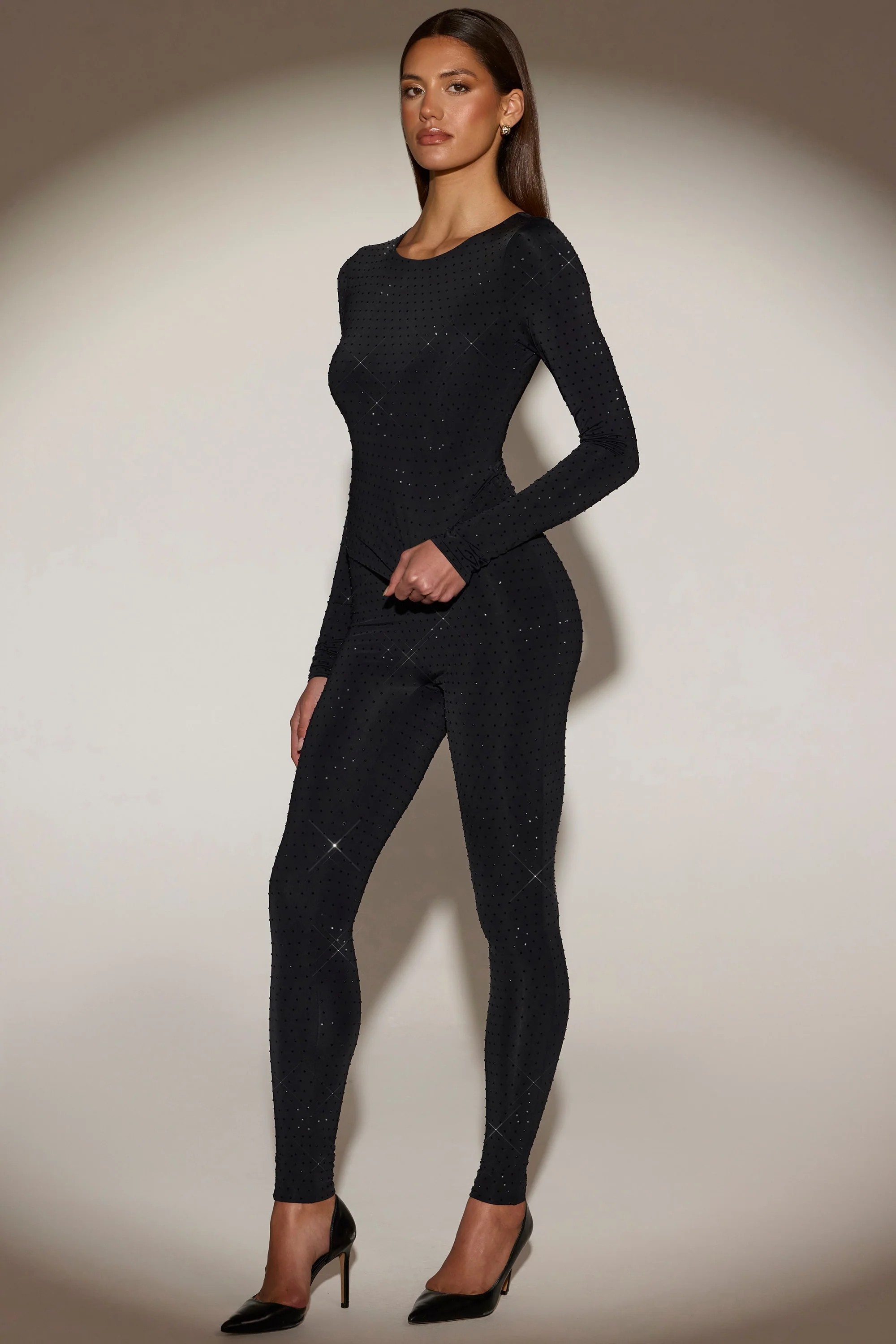 Embellished Scoop-Neck A-Line Mini Dress in Black
