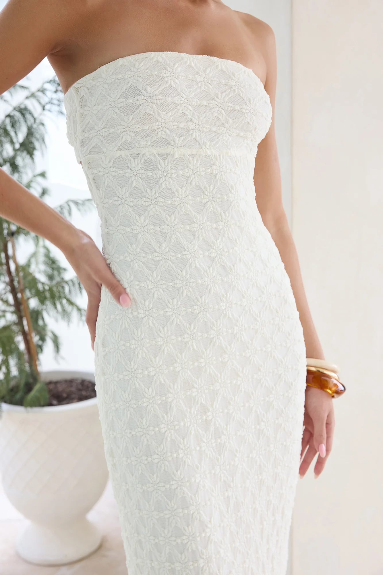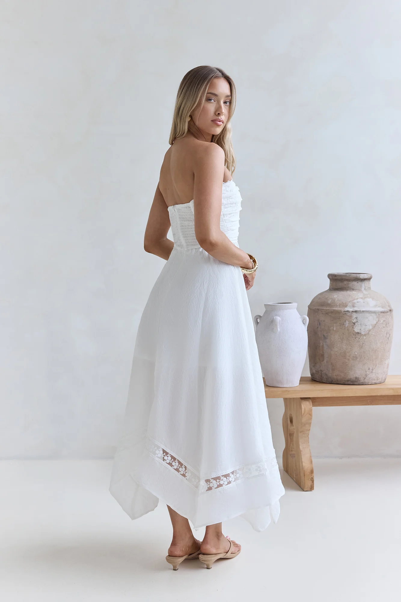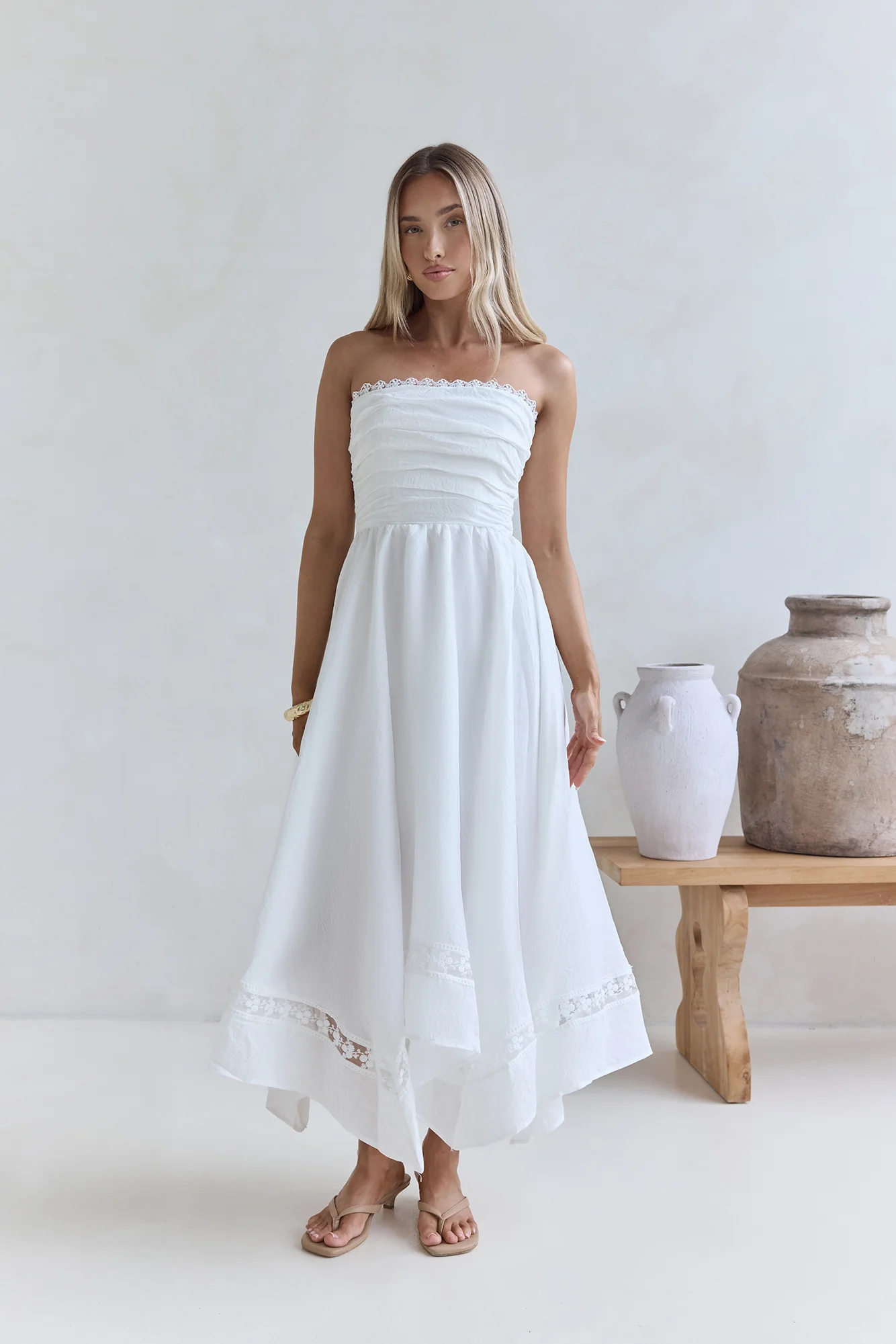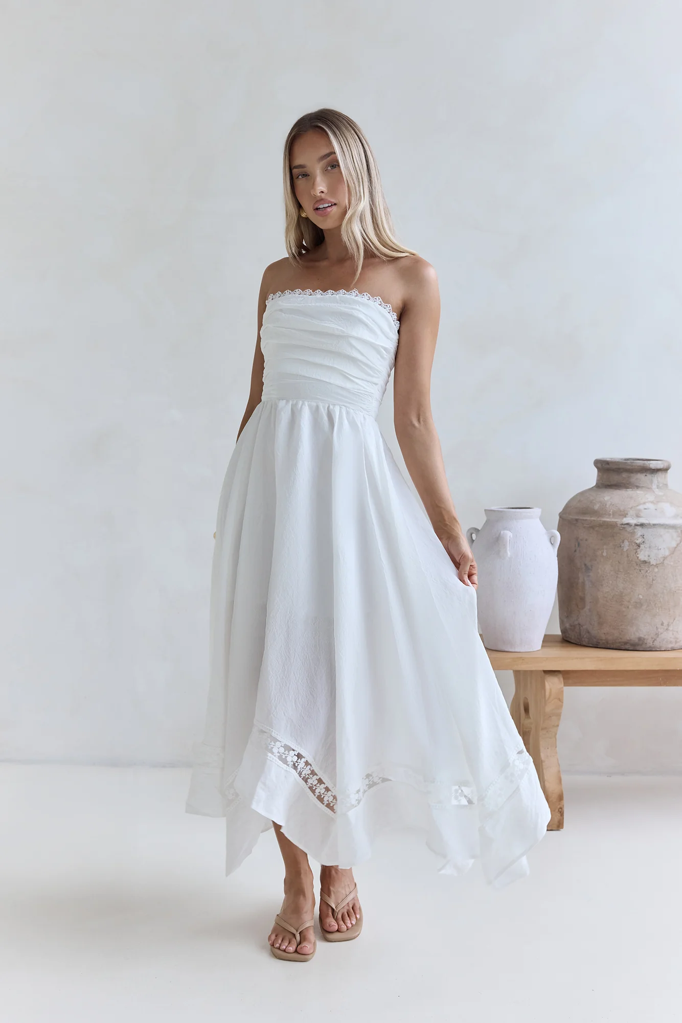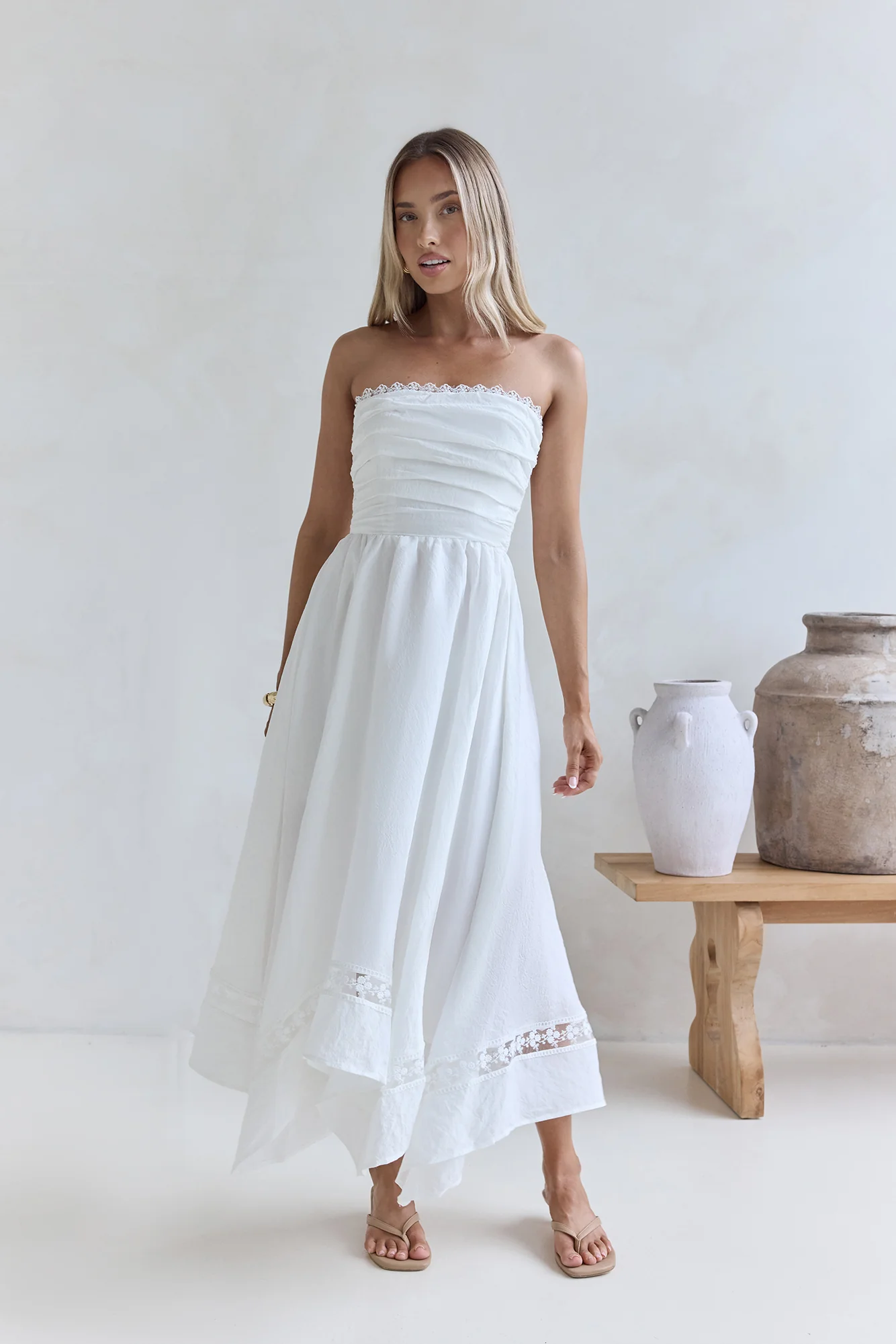 Lucia Strapless Midi Dress White