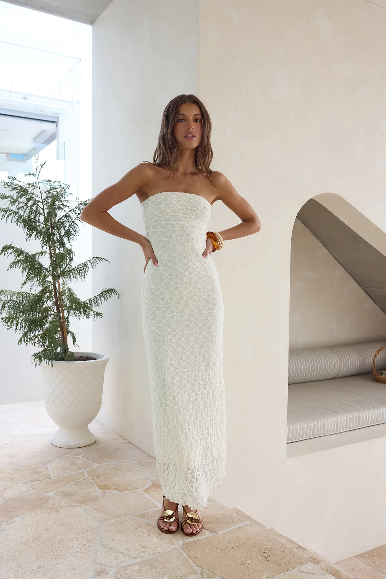 Goddess Blessings Strapless Maxi Dress Cream