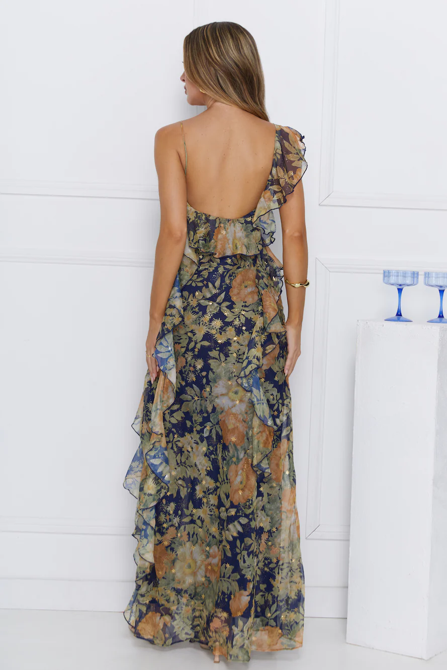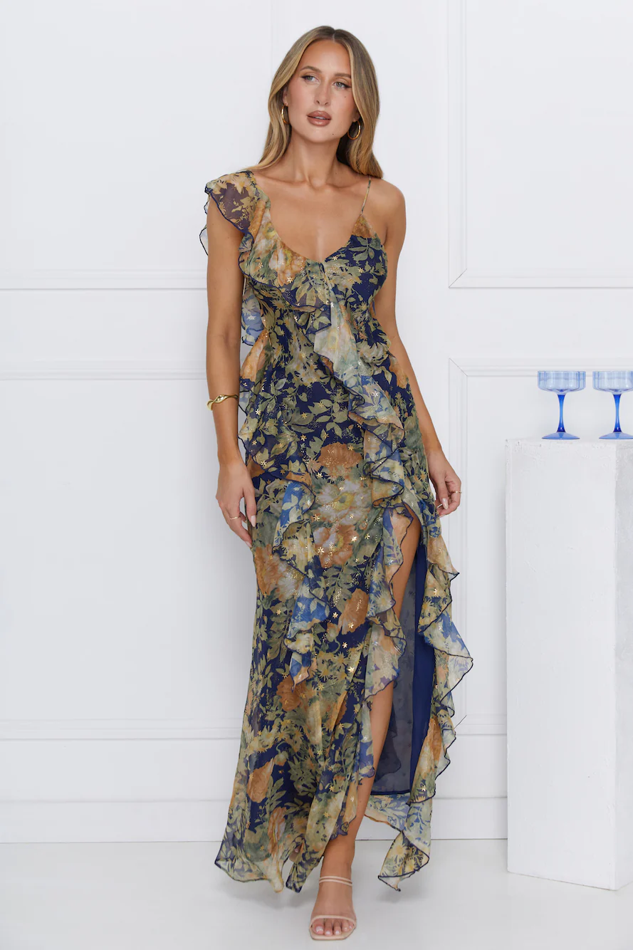 Night Of Distinction One Shoulder Satin Maxi Dress Sage