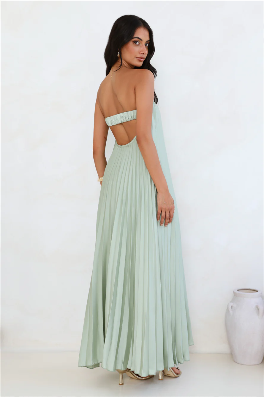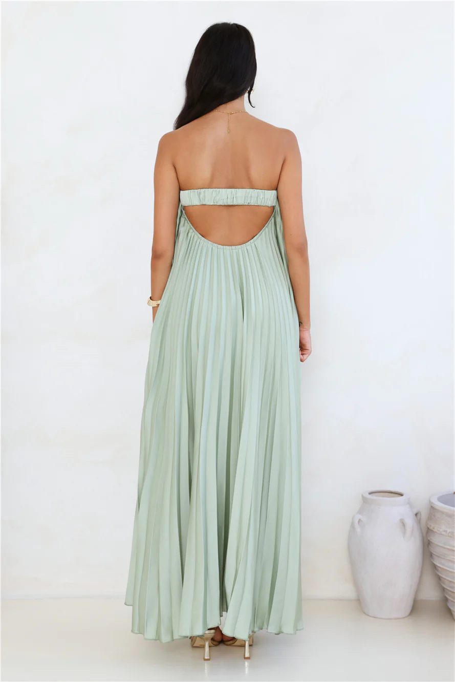 Moonlit Sea Pleated Strapless Maxi Dress Sage