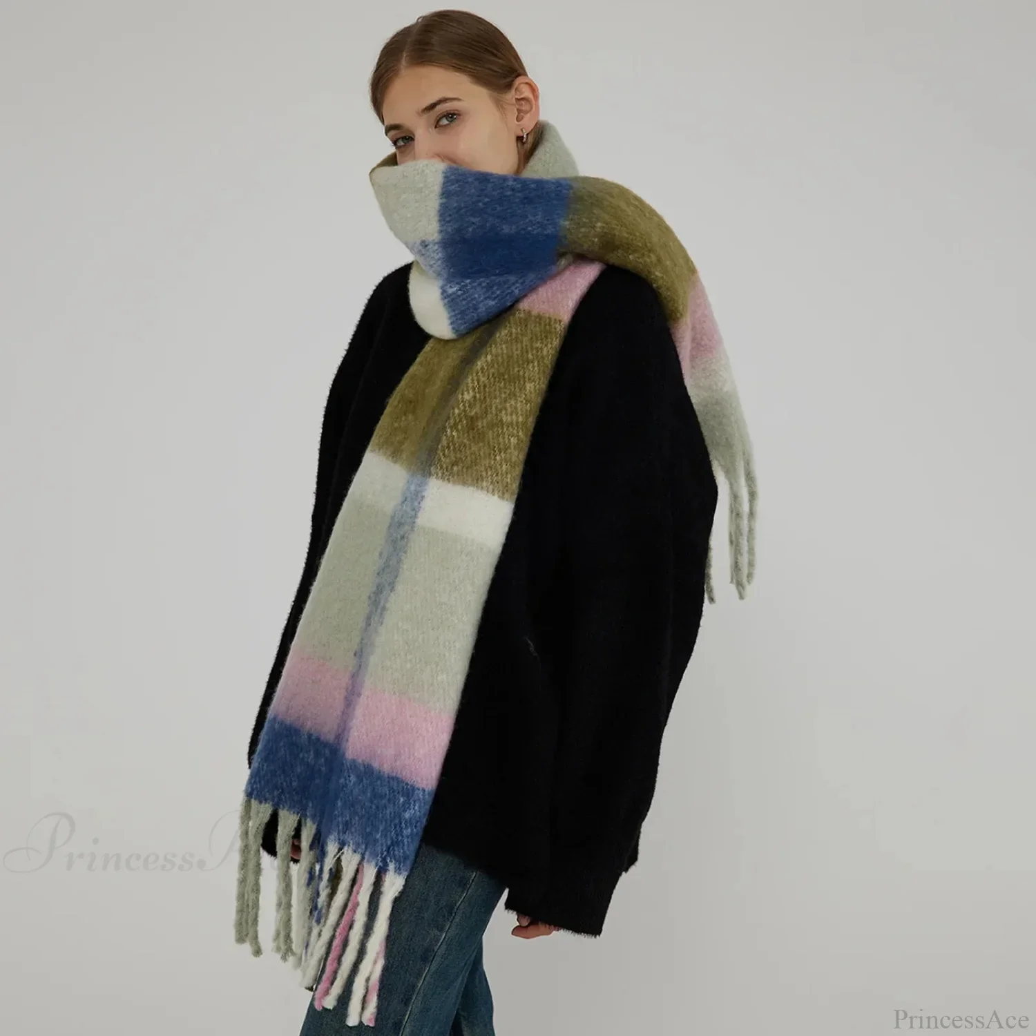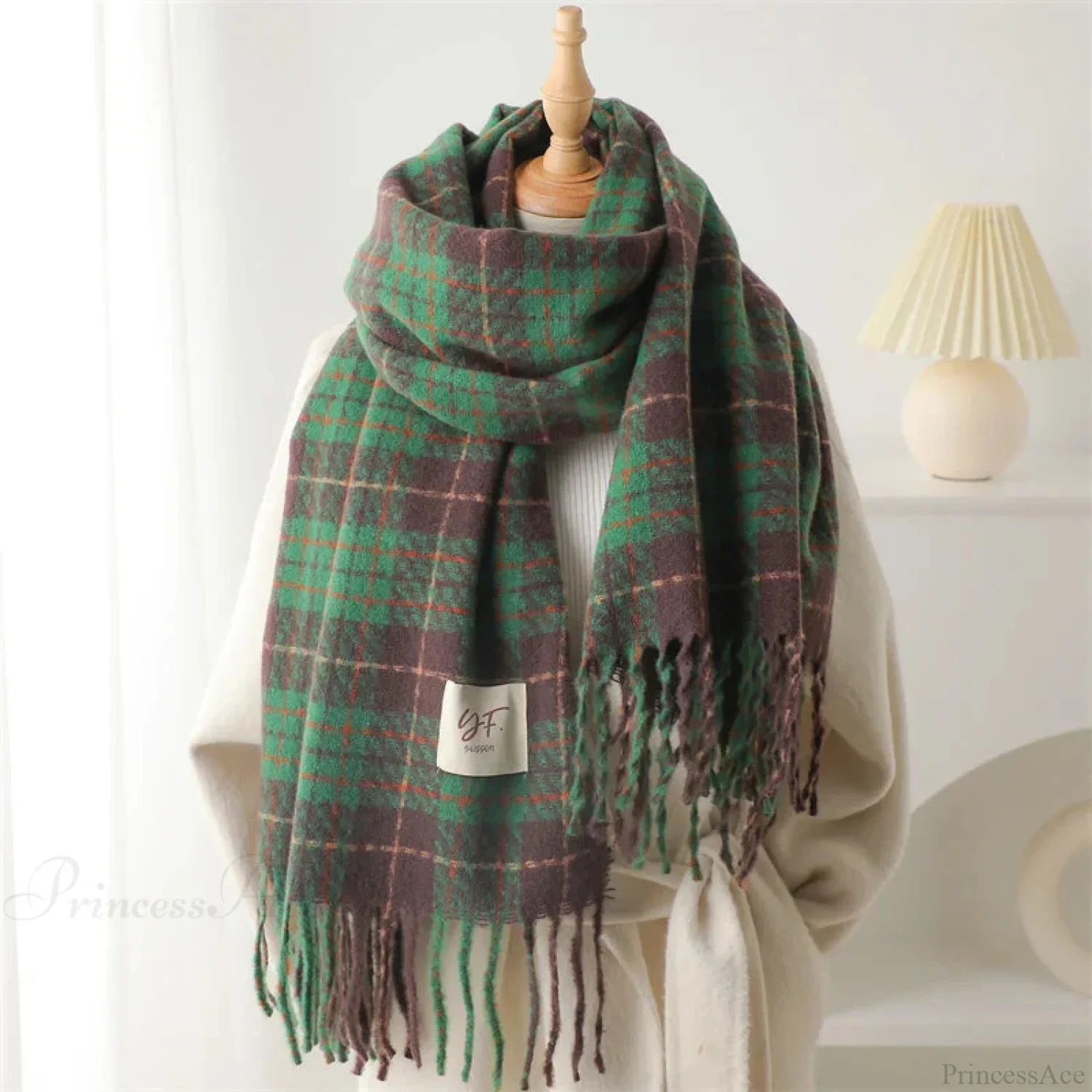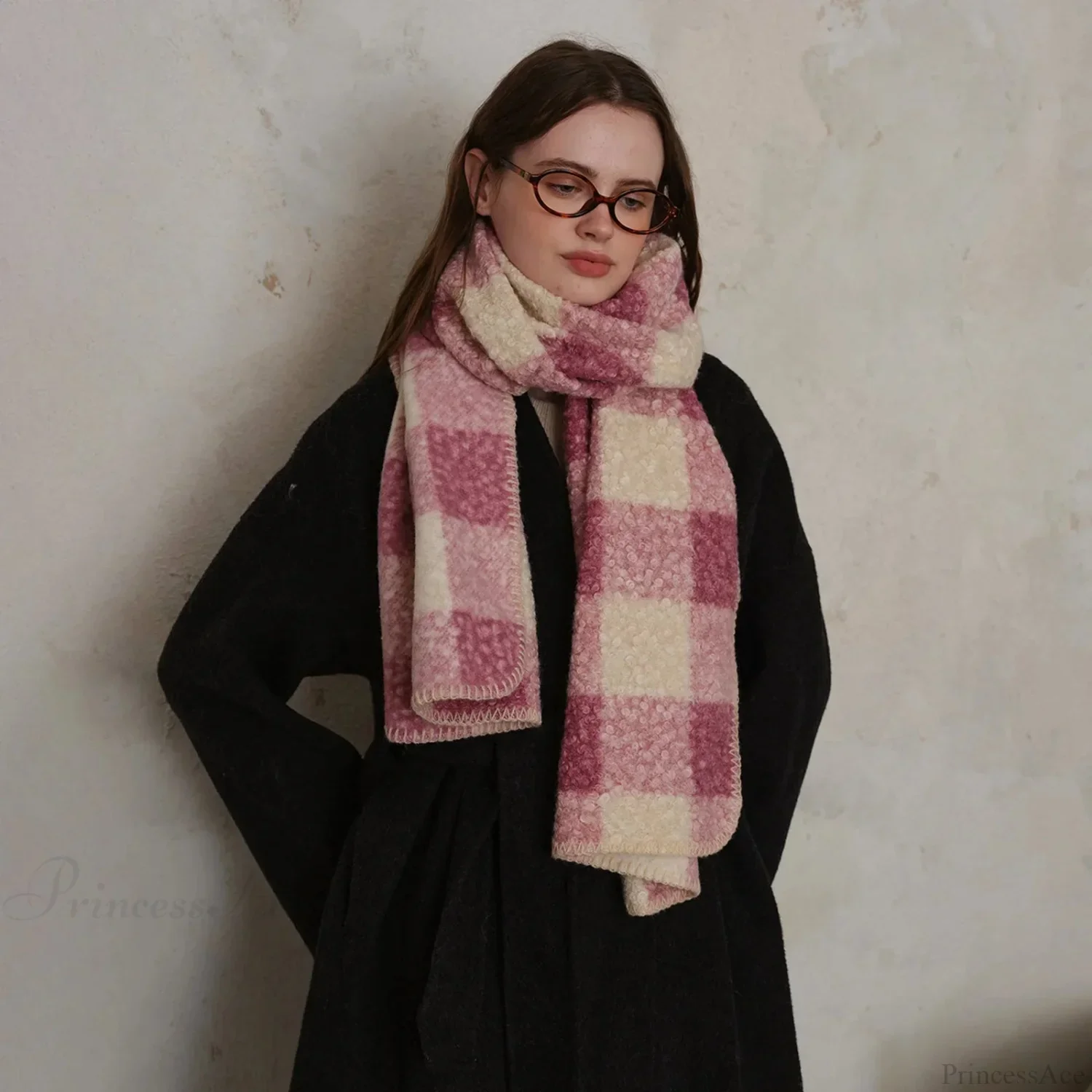 Korean Style Plaid Cashmere Pashmina Wrap Scarf - Winter Warm and Thick