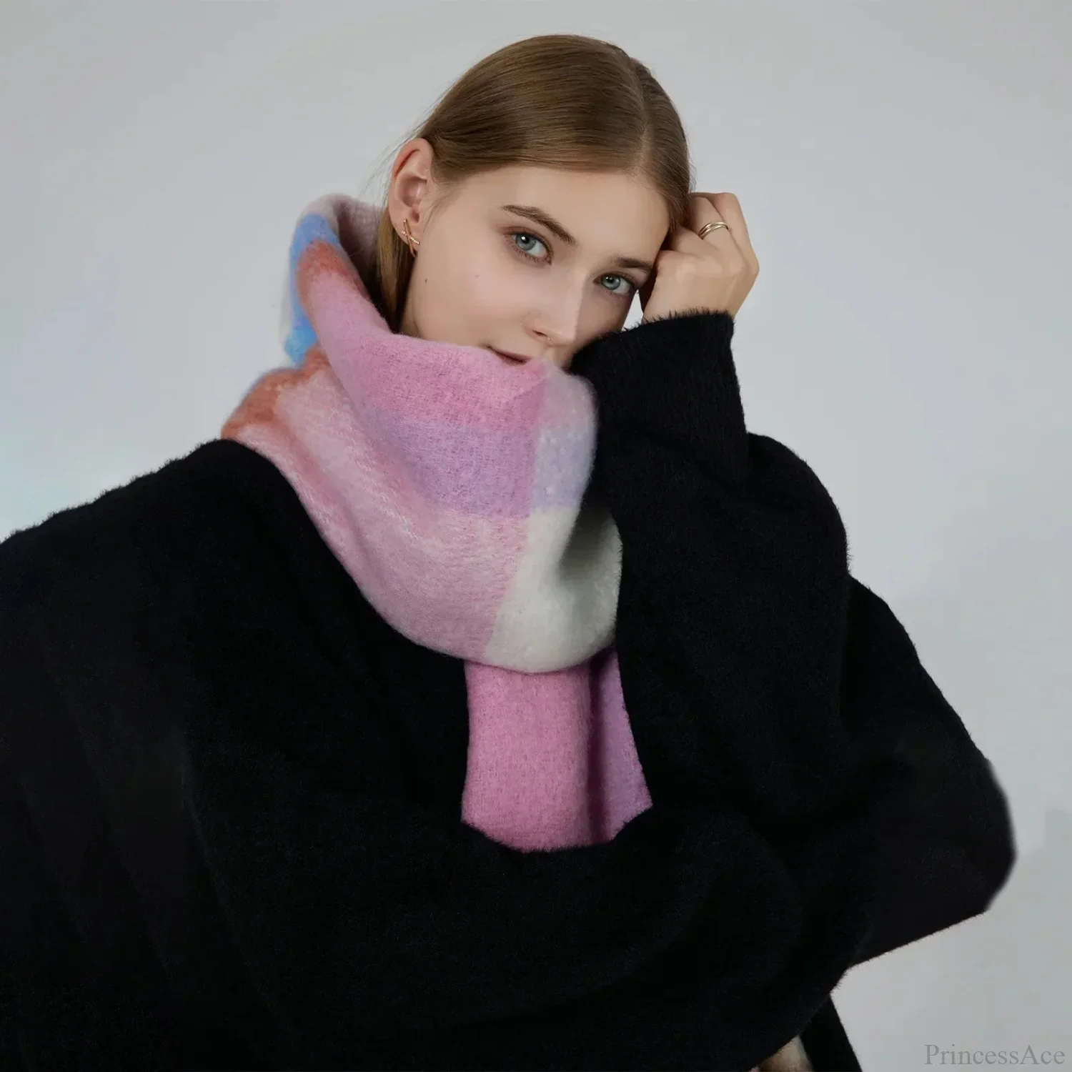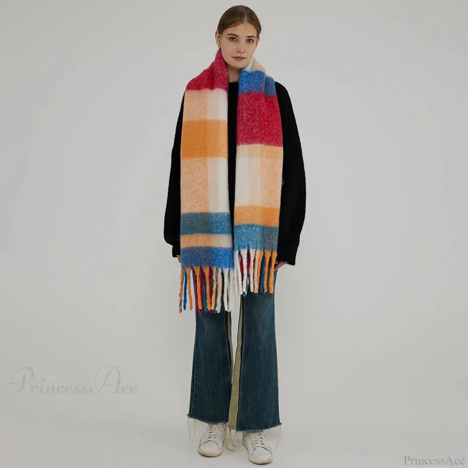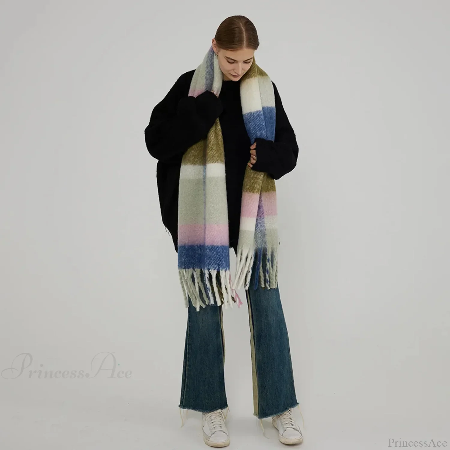 Korean Style Plaid Cashmere Pashmina Wrap Scarf - Winter Warm and Thick