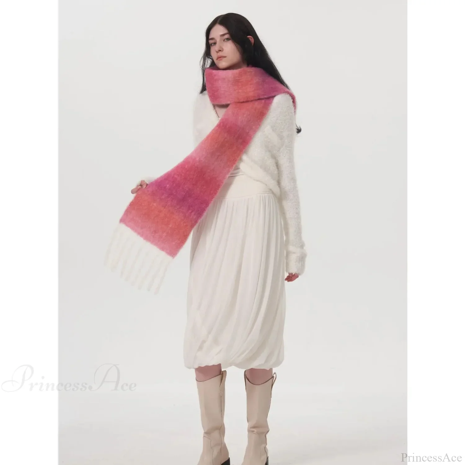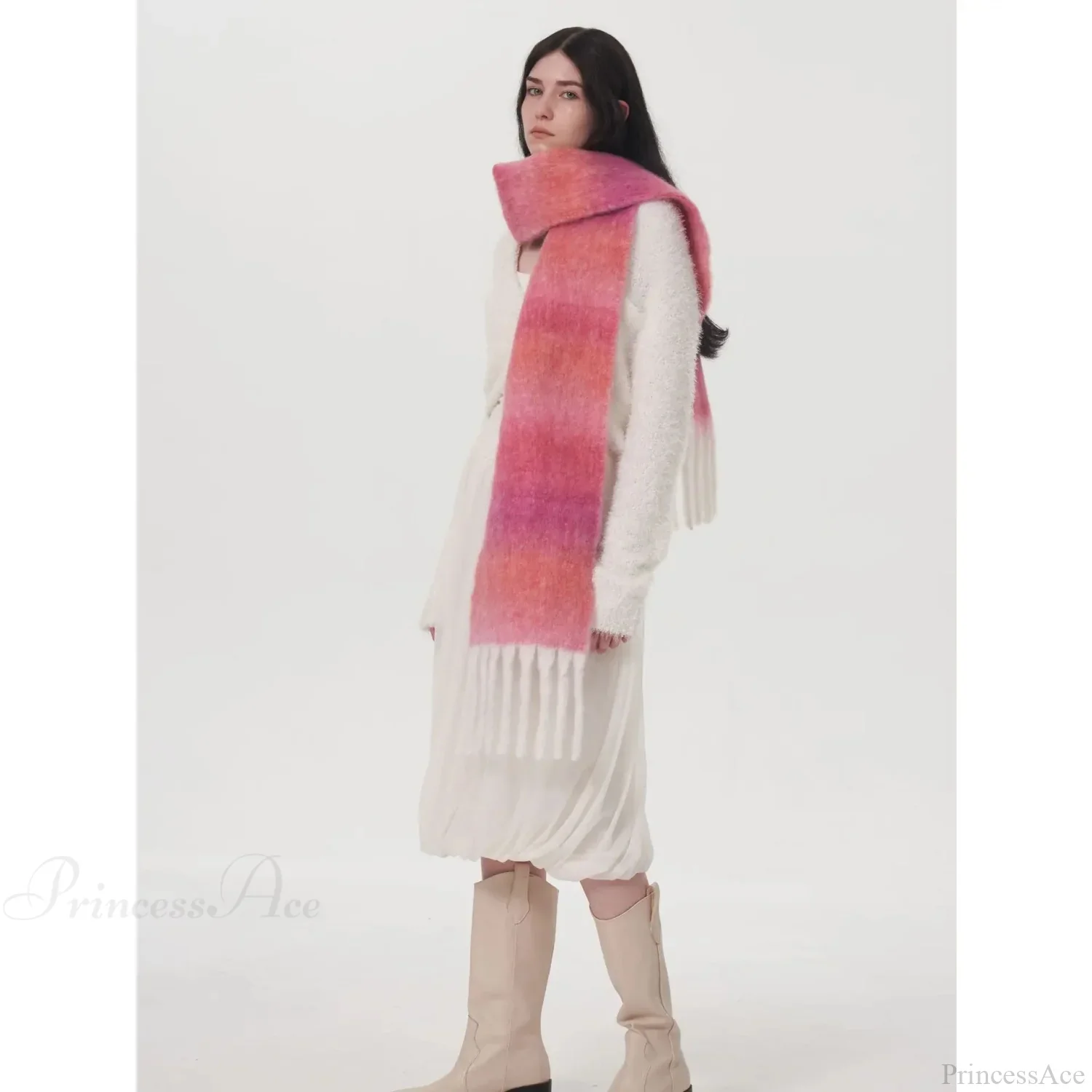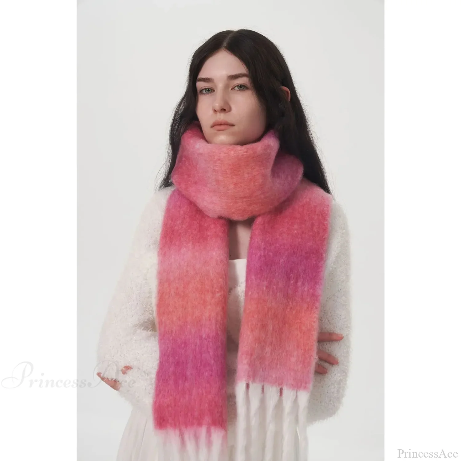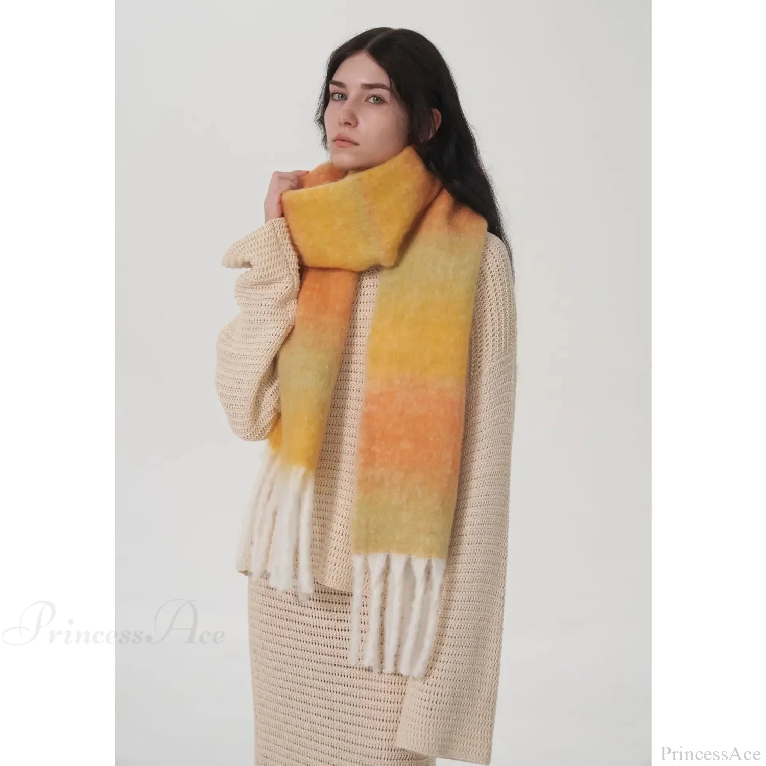Light Luxury Gradient Color Wool Striped Fringed Mohair Scarf