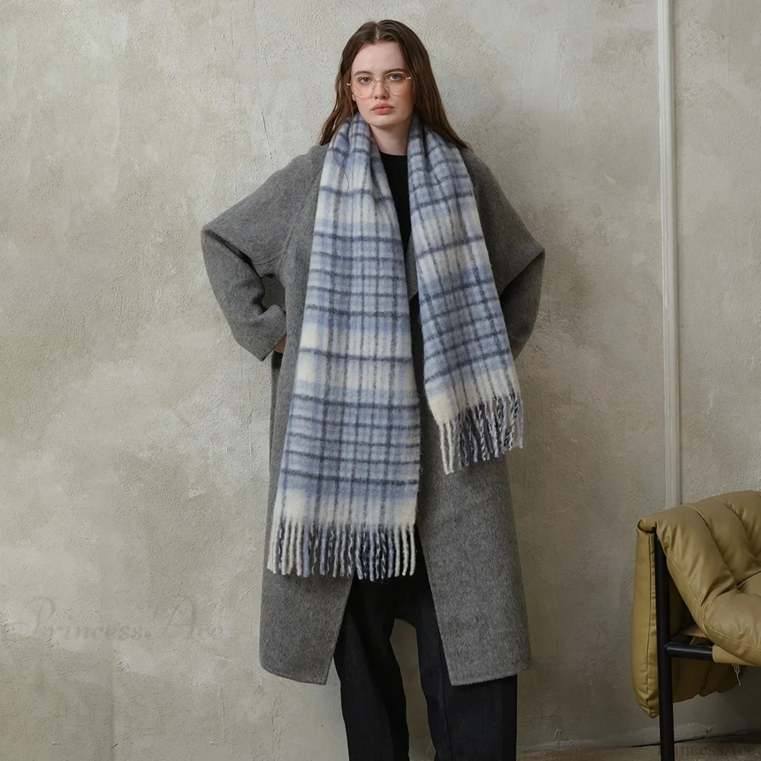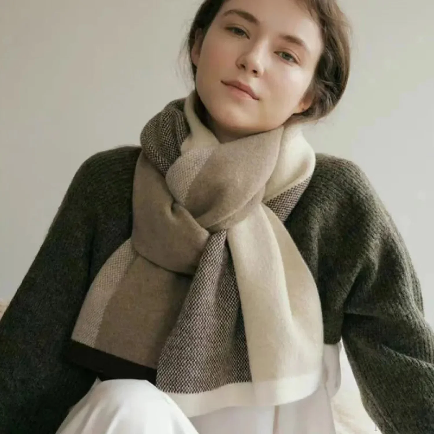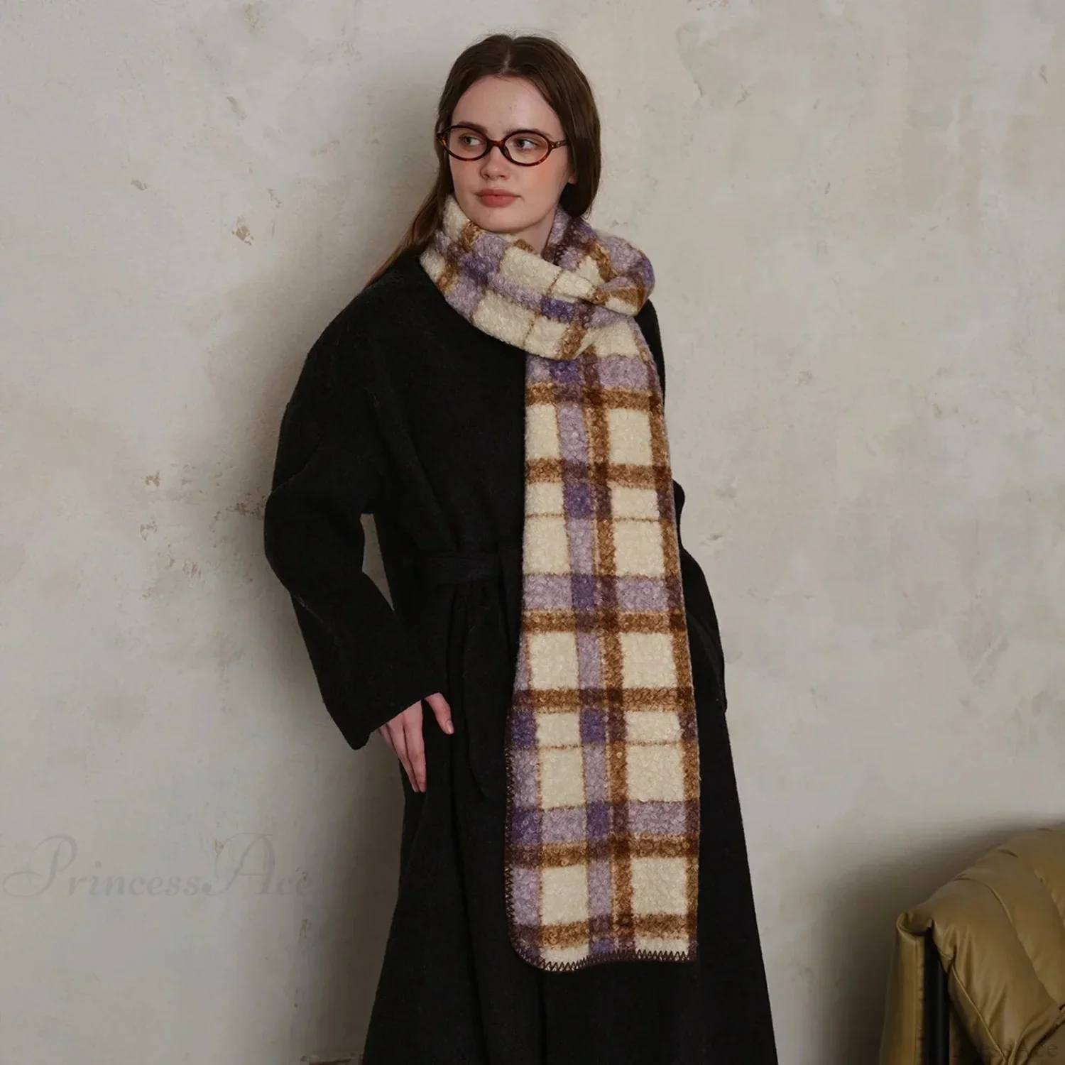 Elegant Minimalist Plaid Long Shawl Thickened Warm Scarf for Women