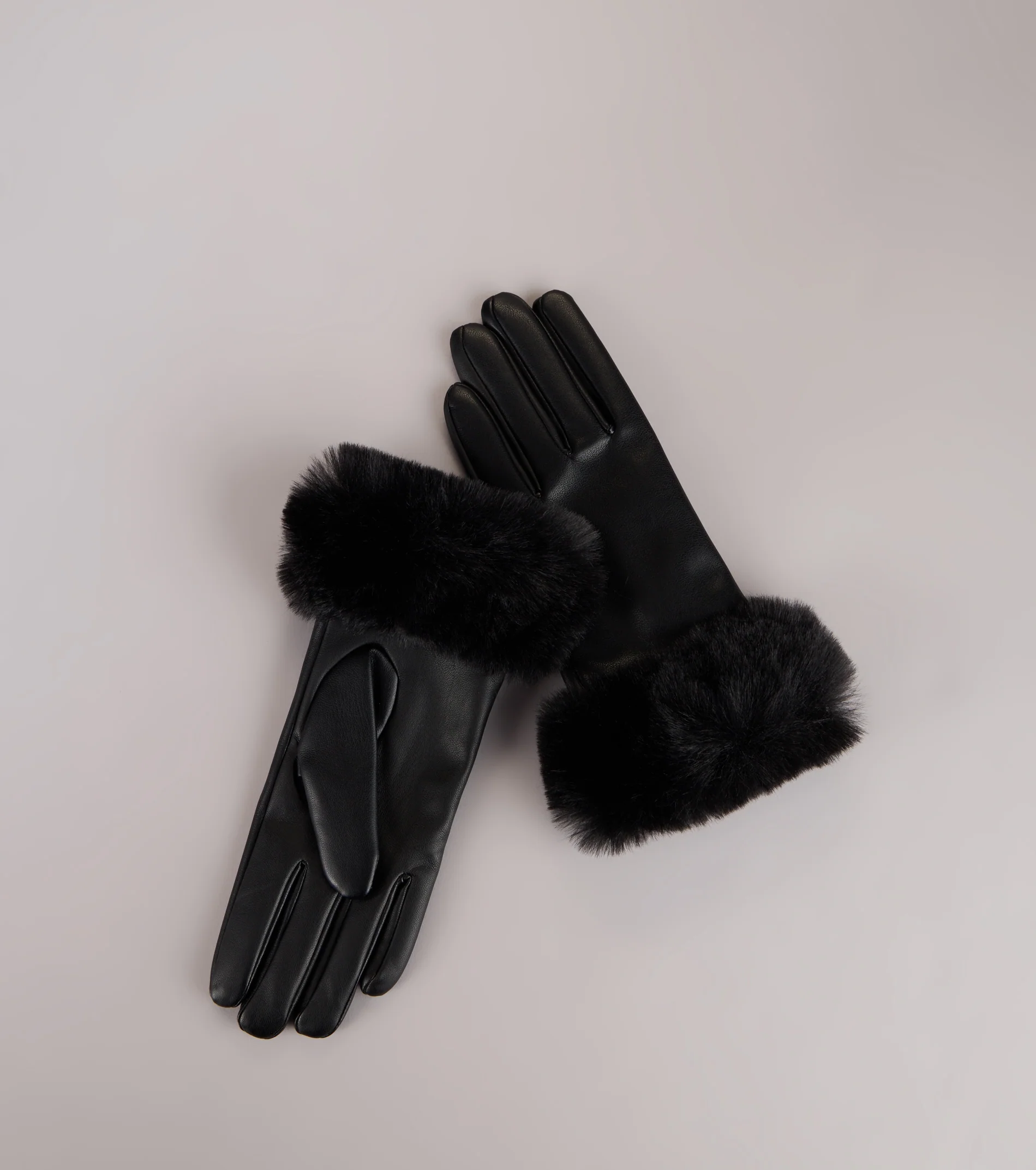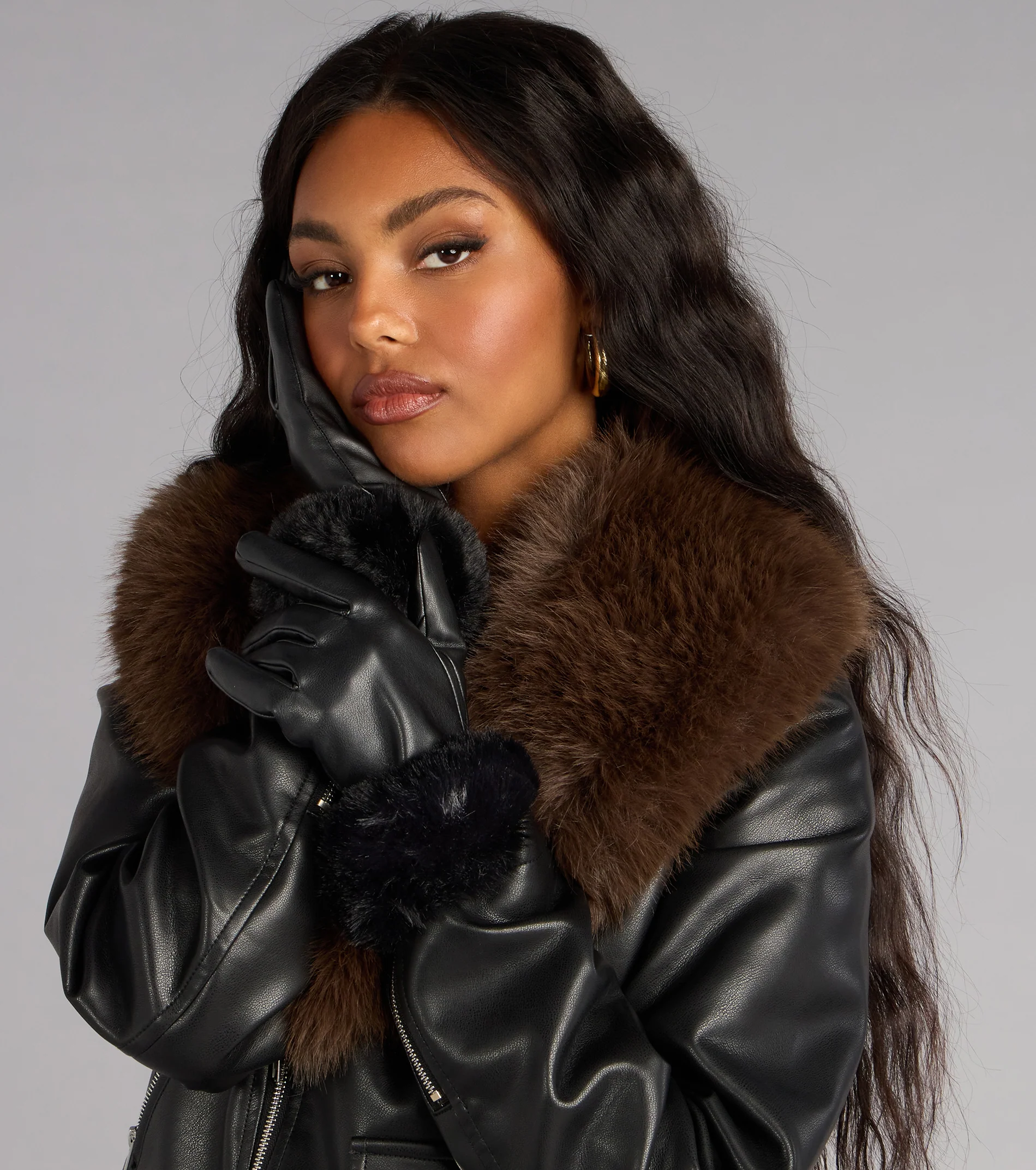 Style Forecast Sherpa Trim Faux Leather Gloves