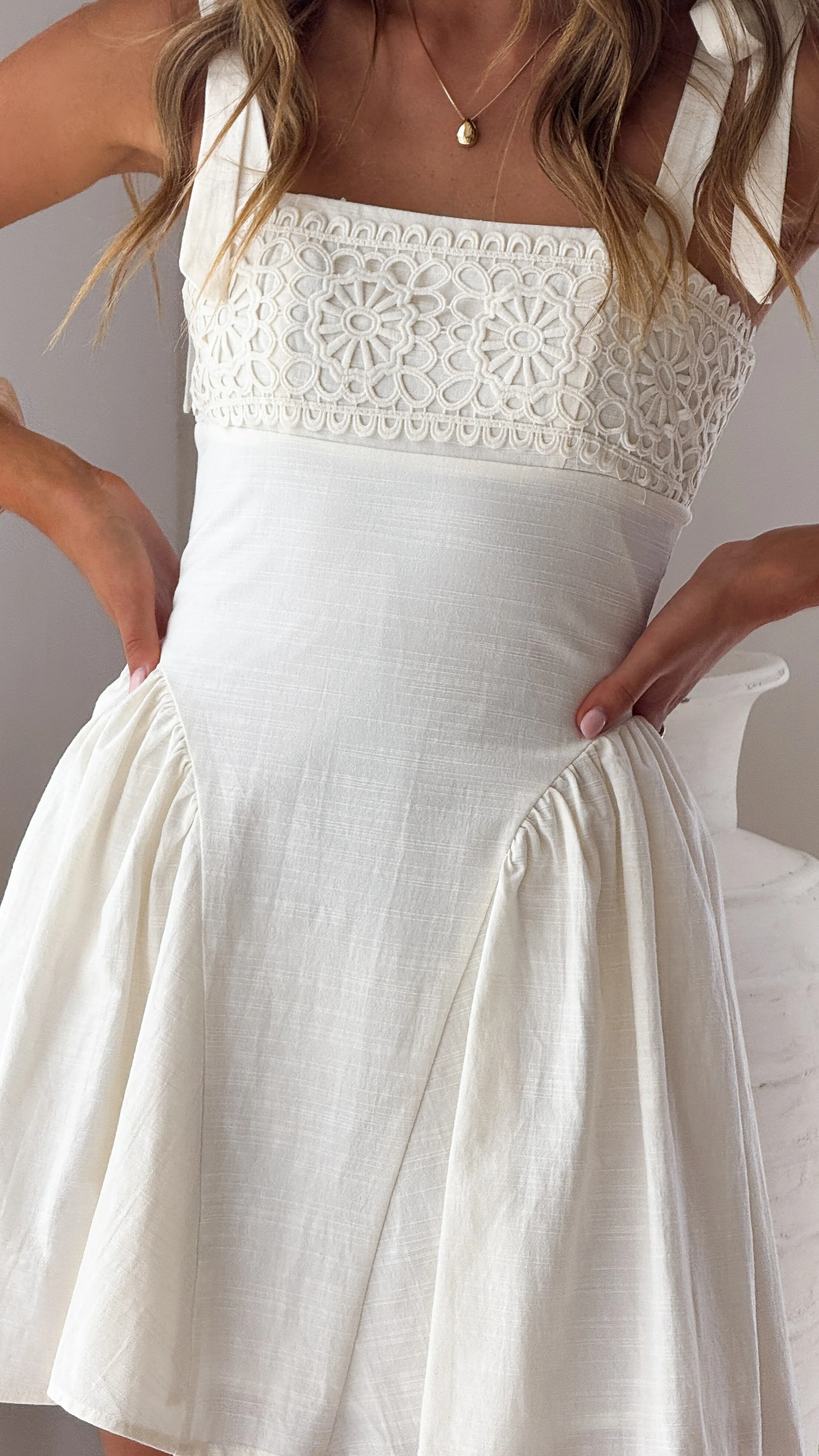 Nari Tie Strap Mini Dress - White