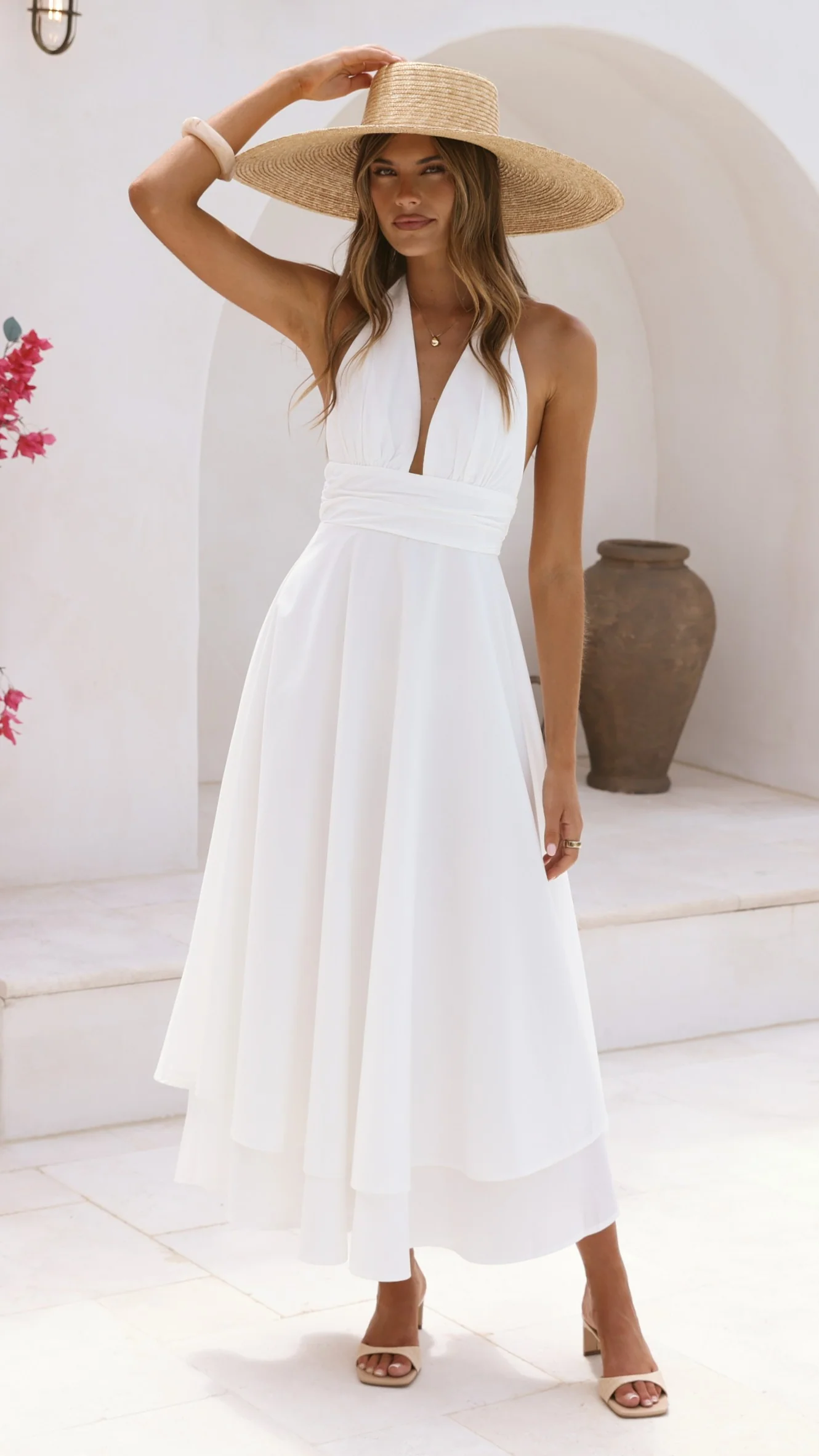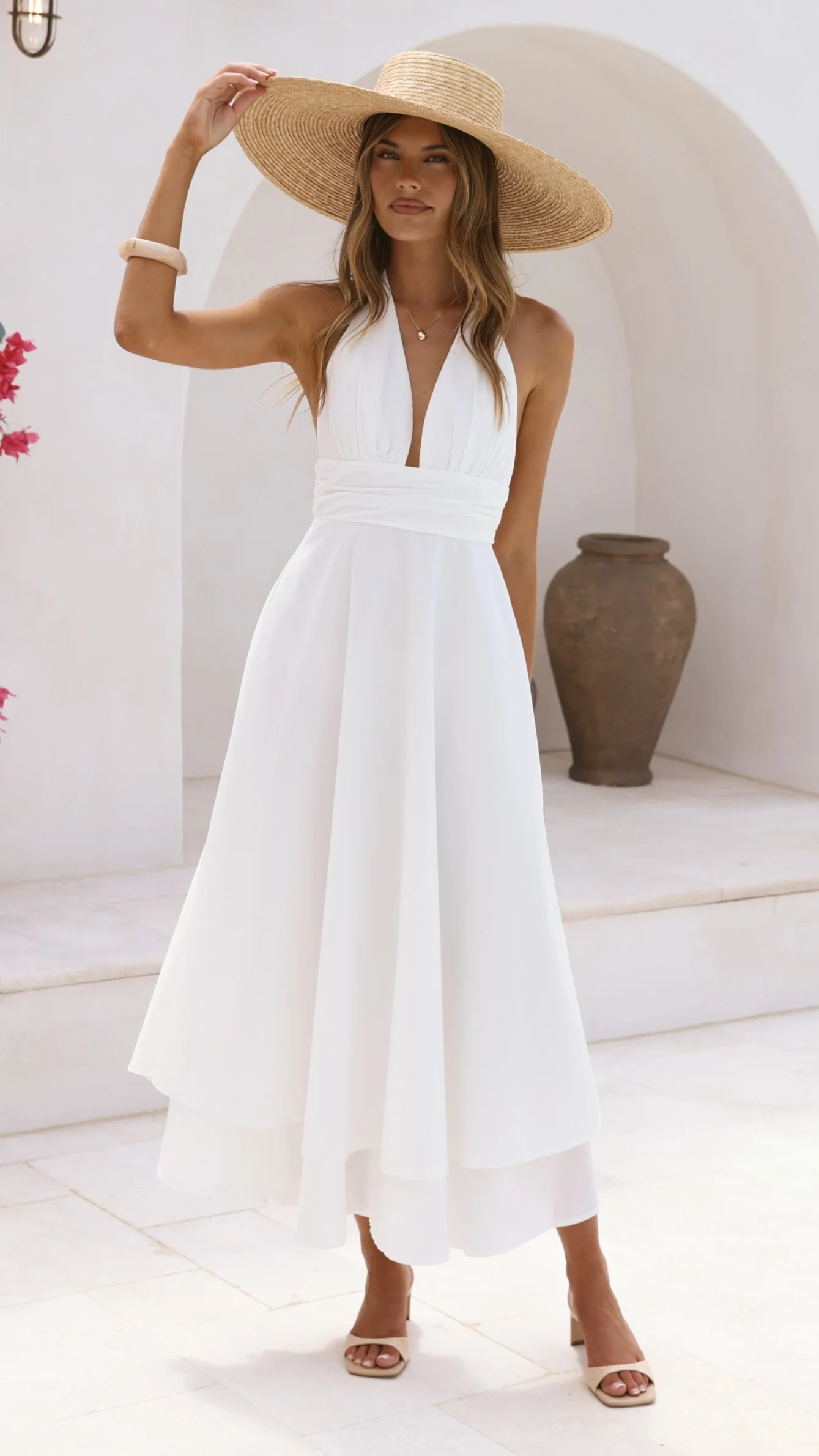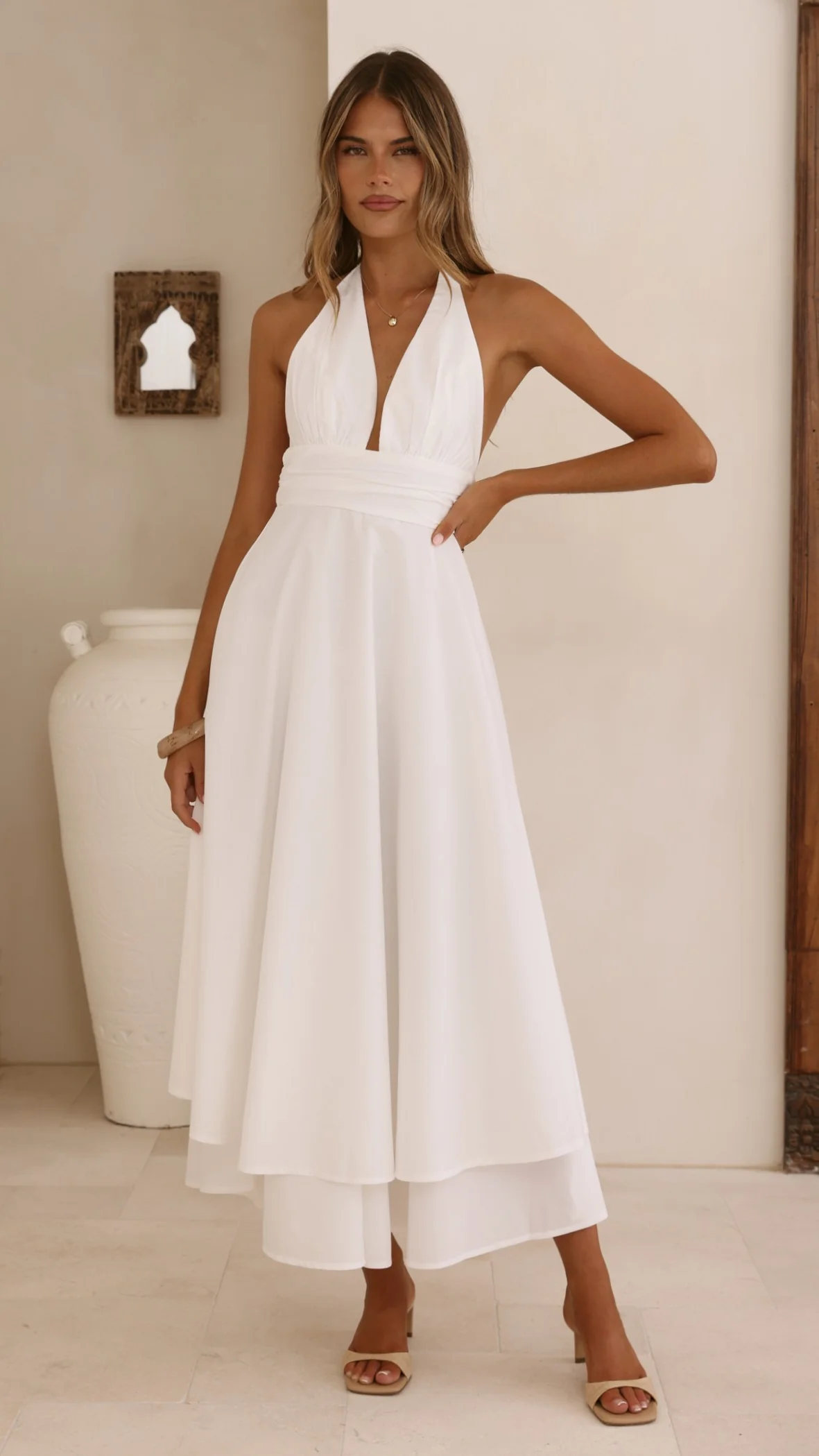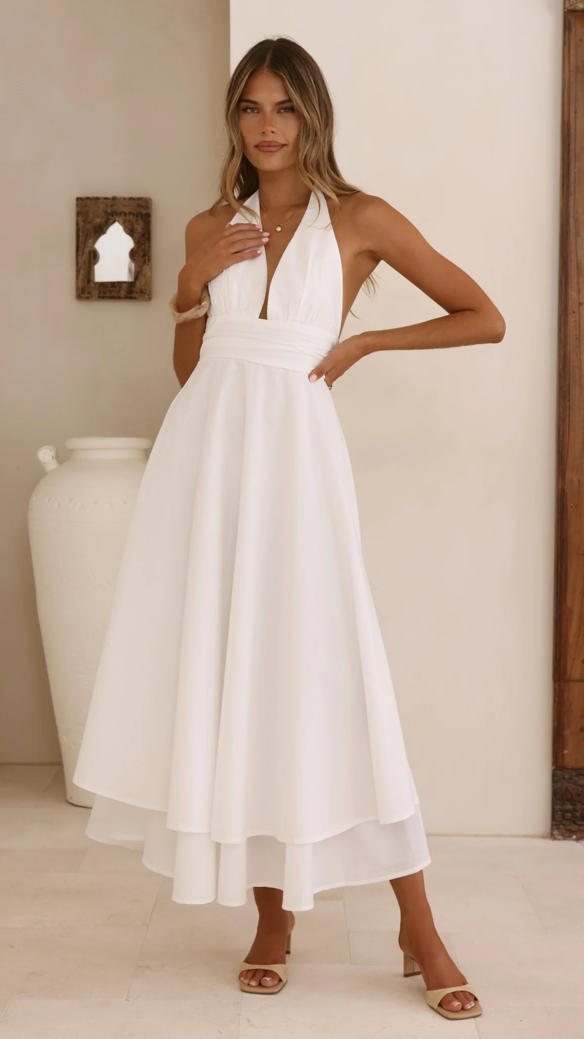 Kathy Halter Neck Maxi Dress - White