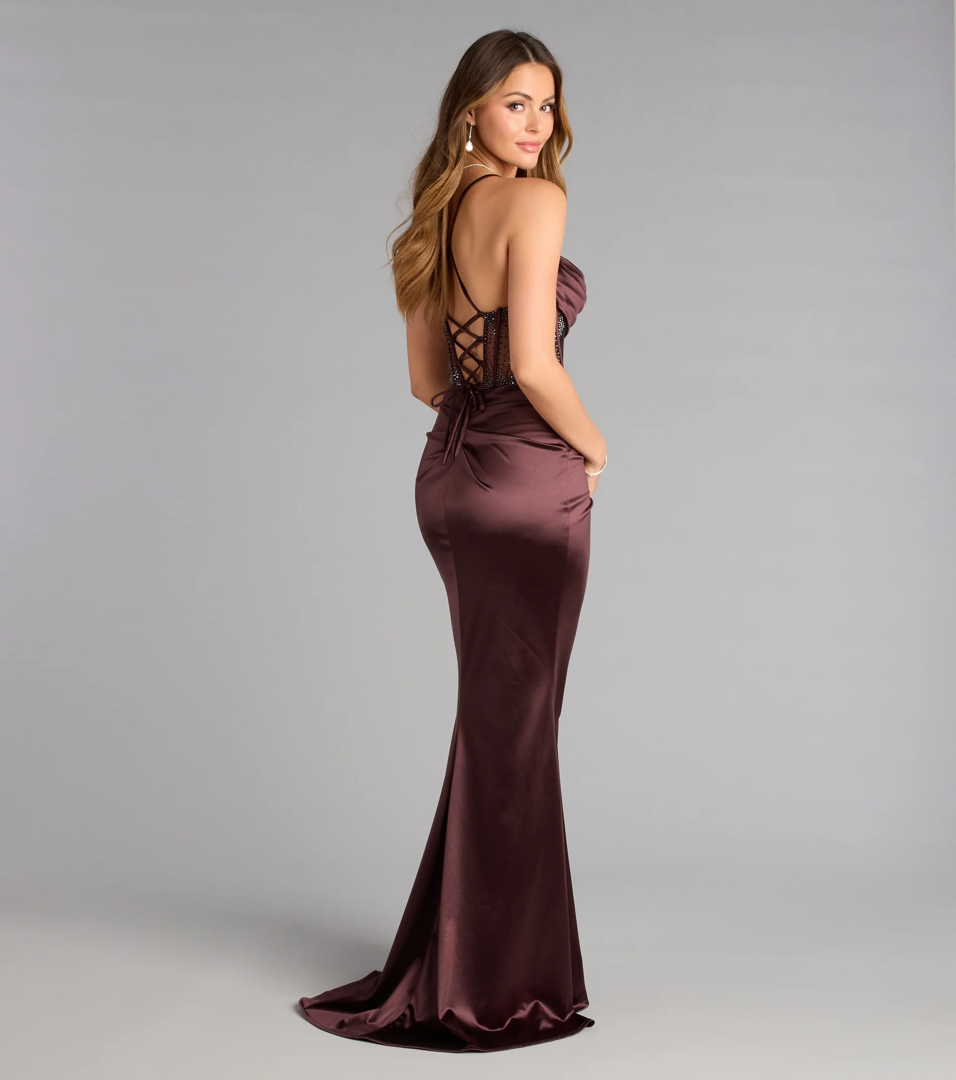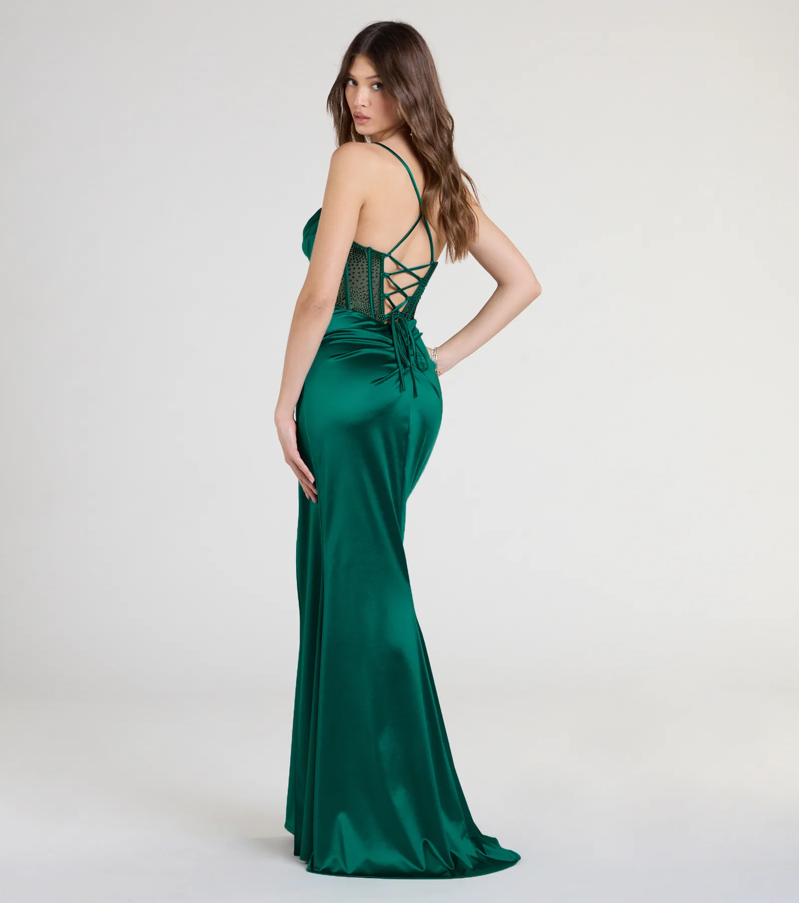 Gabbie Lace-Up Rhinestone Corset Formal Dress