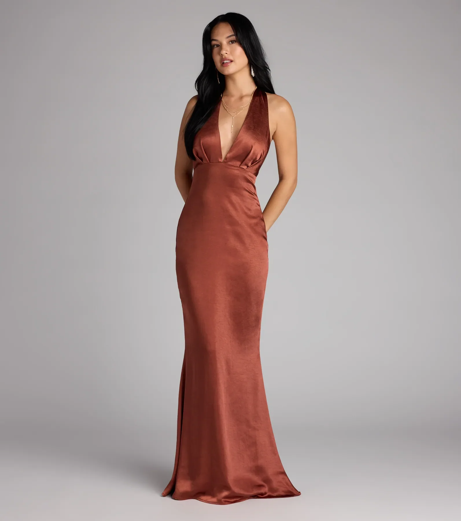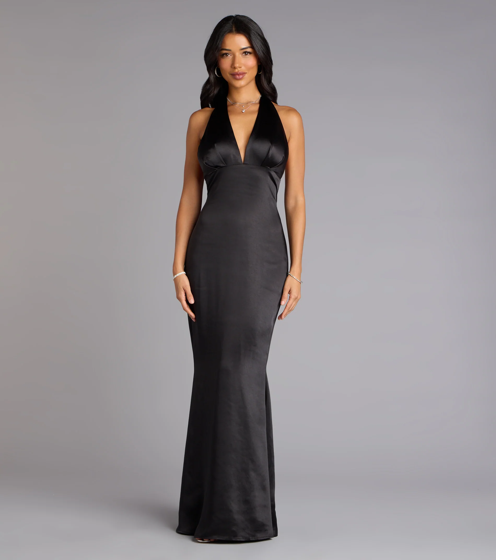 Erika Halter Satin Column Formal Dress