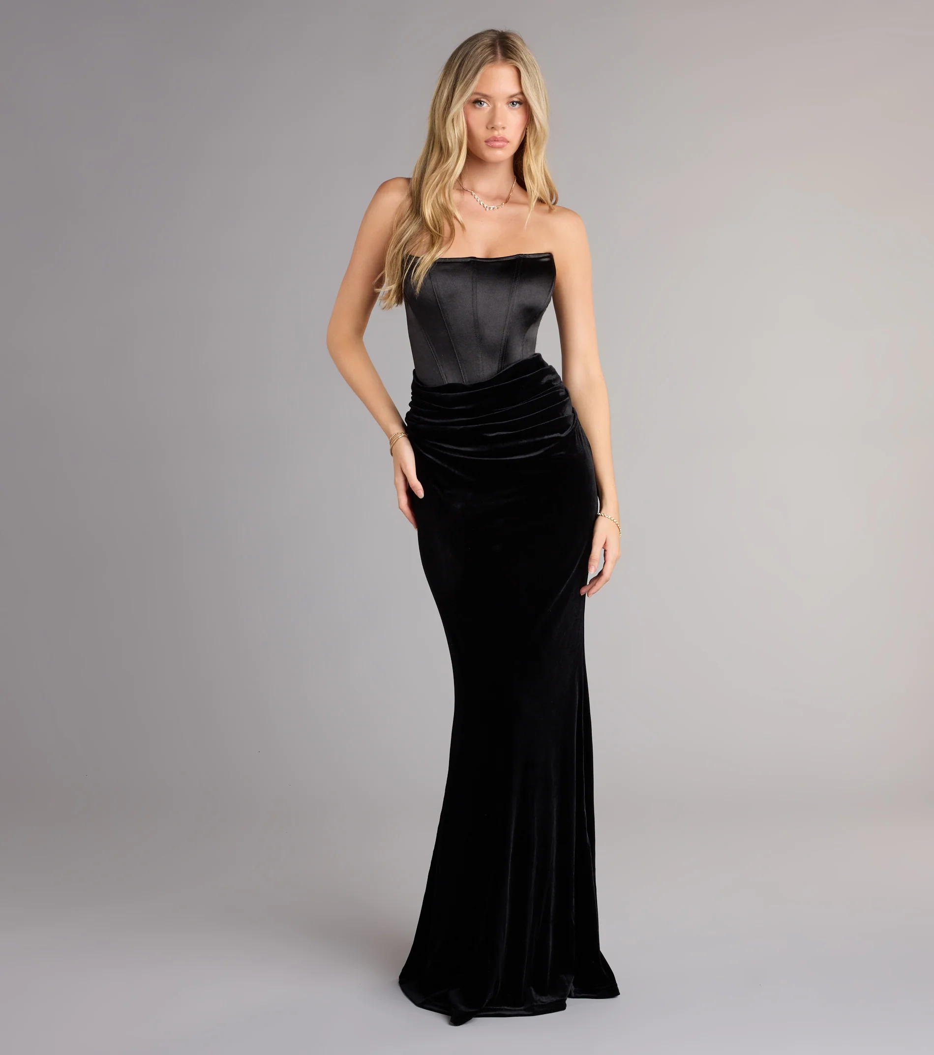 Zoya Satin Corset Velvet Mermaid Dress