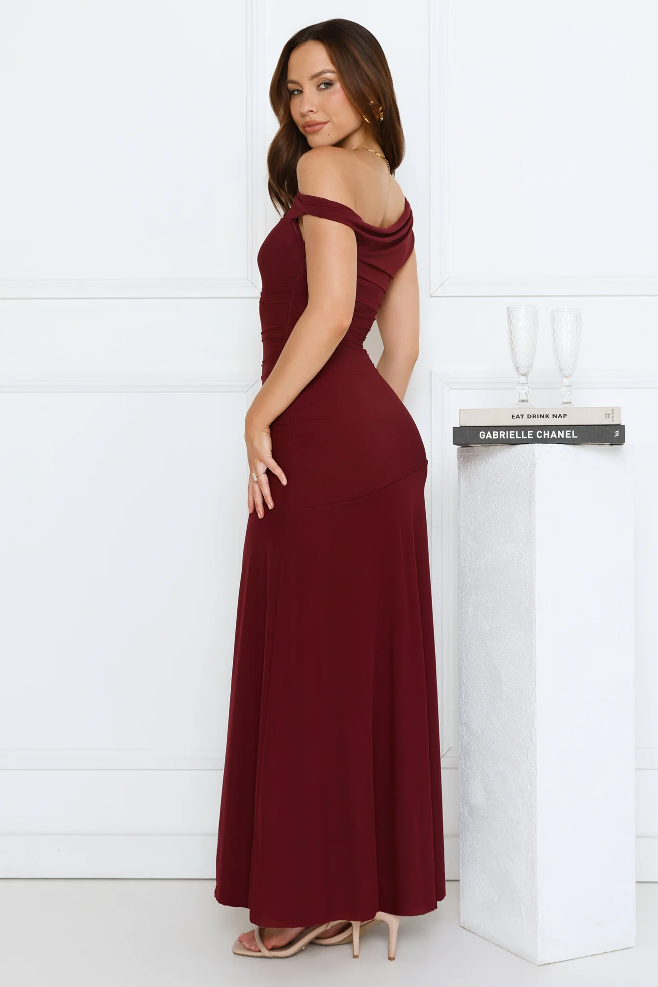 Dusk Noir Off Shoulder Maxi Dress Wine
