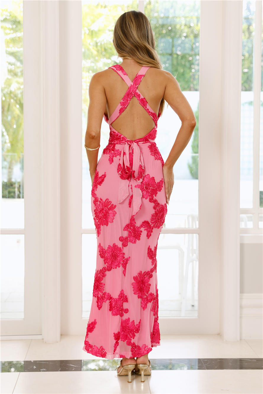 Libre Plunging Halter Ruffle Maxi Dress Red
