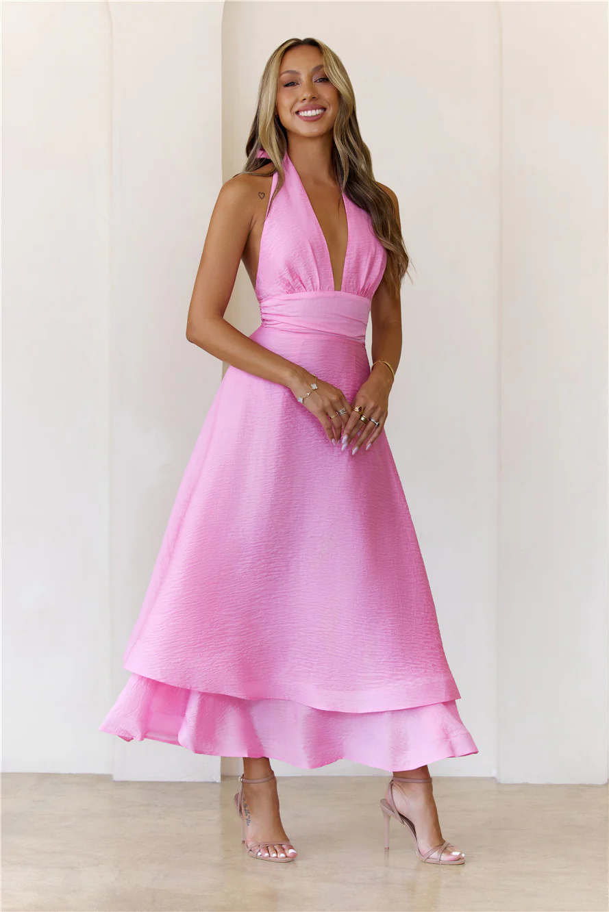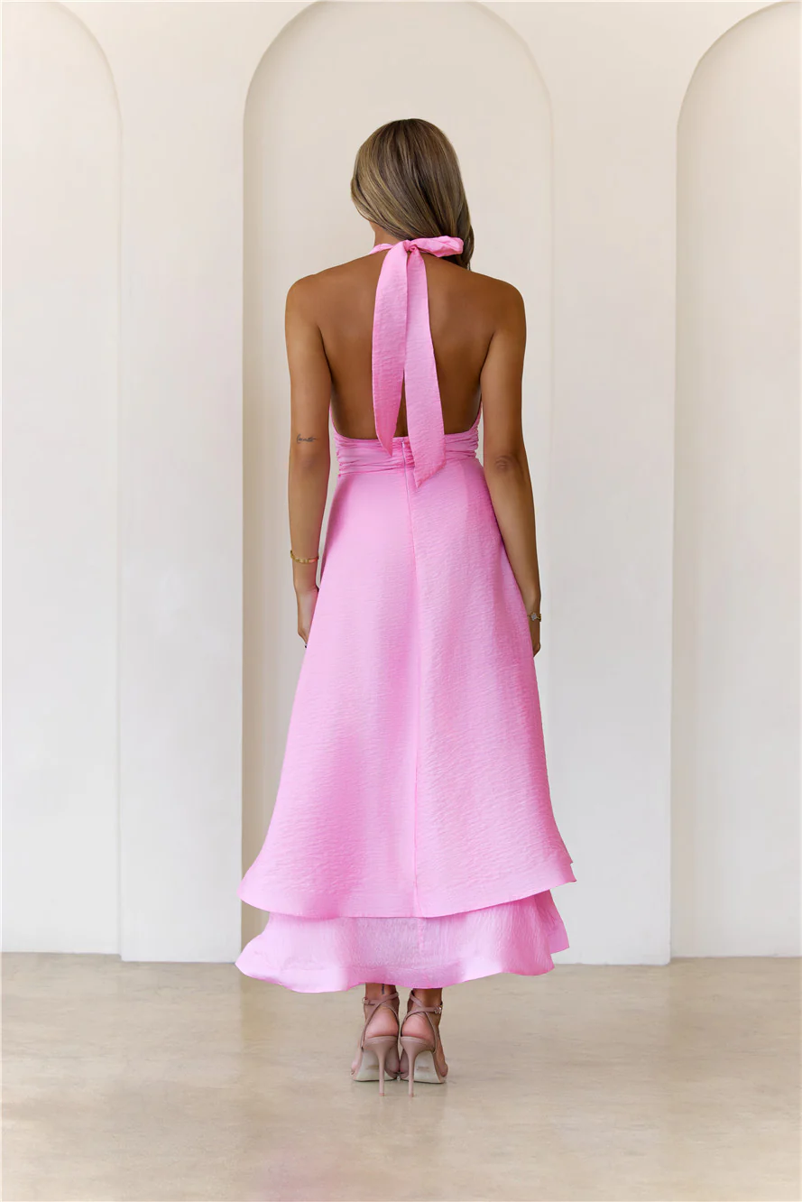 Rule The Glow Satin Mesh Maxi Dress Pink