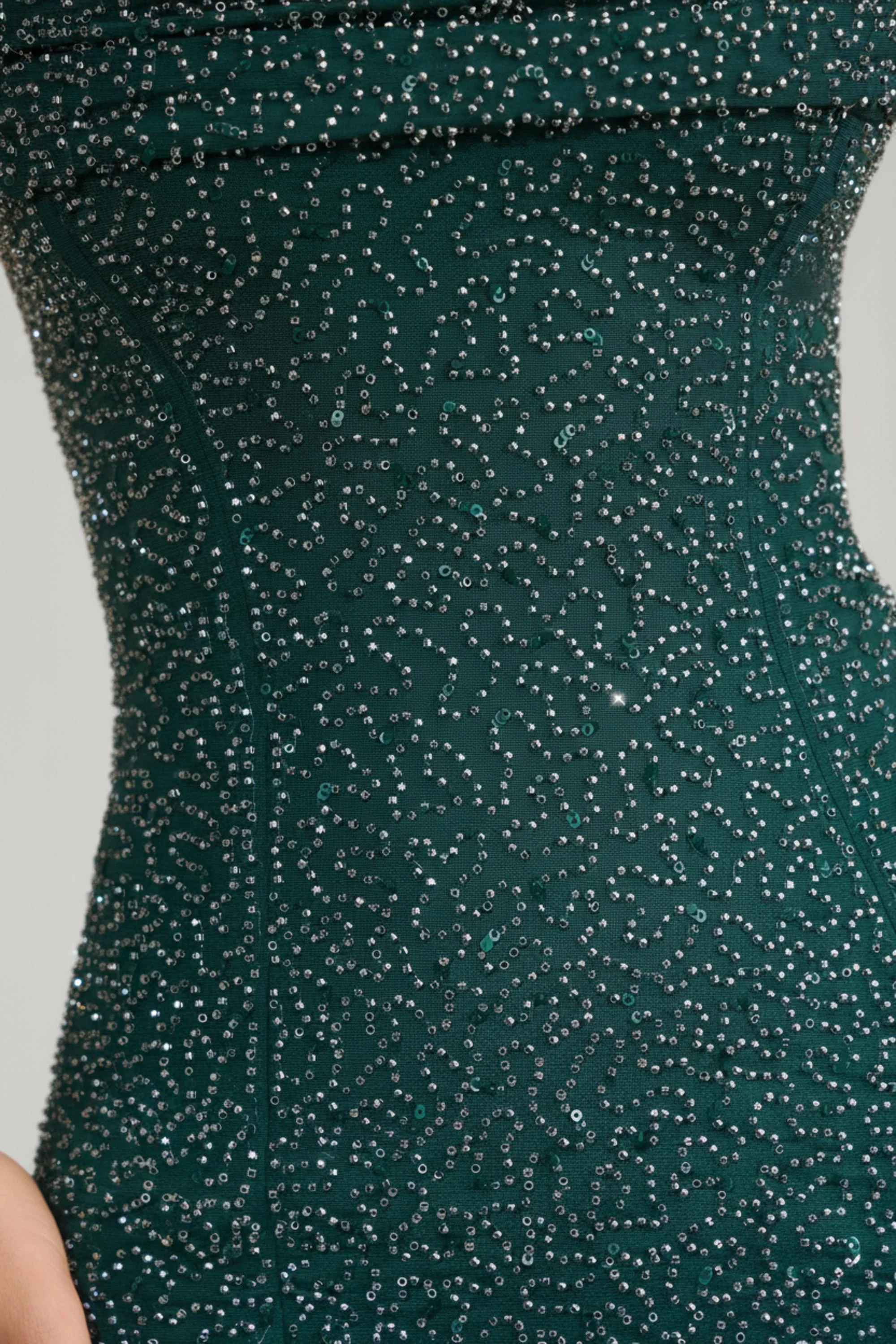 Embellished Strapless Cowl-Neck Mini Dress in Emerald Green