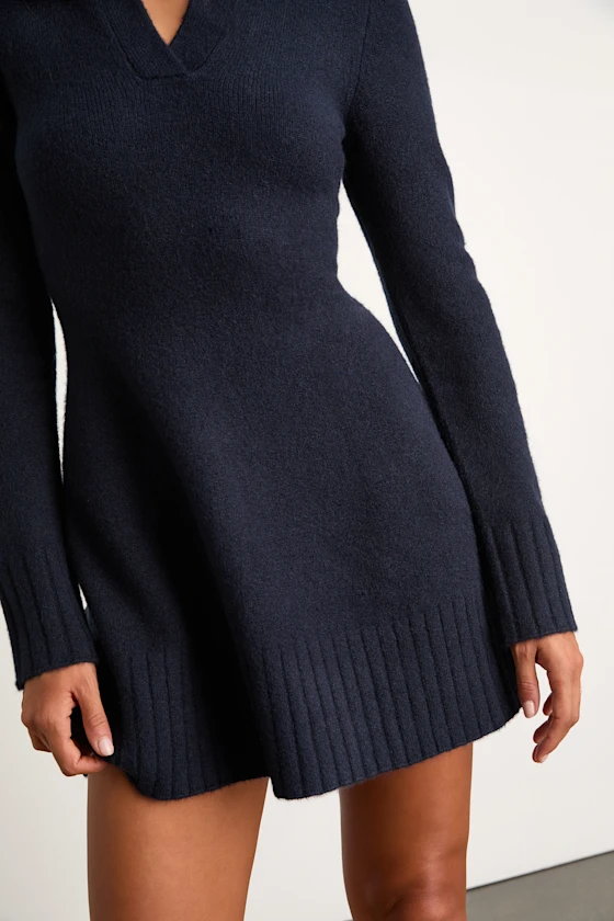 Soft Serenity Navy Collared Sweater Mini Dress