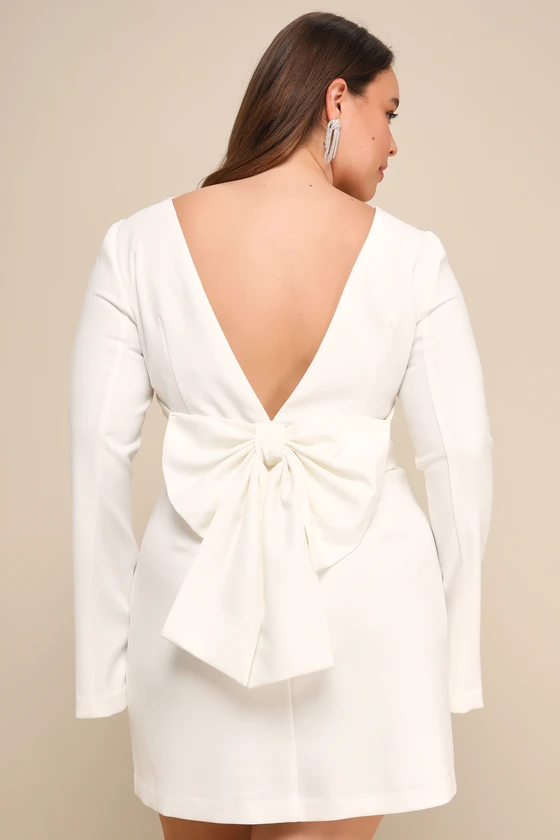 Elegant Cutie Ivory Bow Long Sleeve Backless Mini Dress