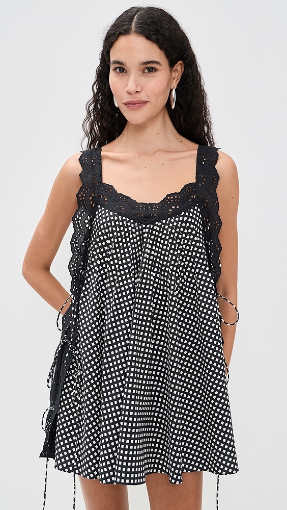 Lucilla Eyelet Trimmed Open Back Mini Dress