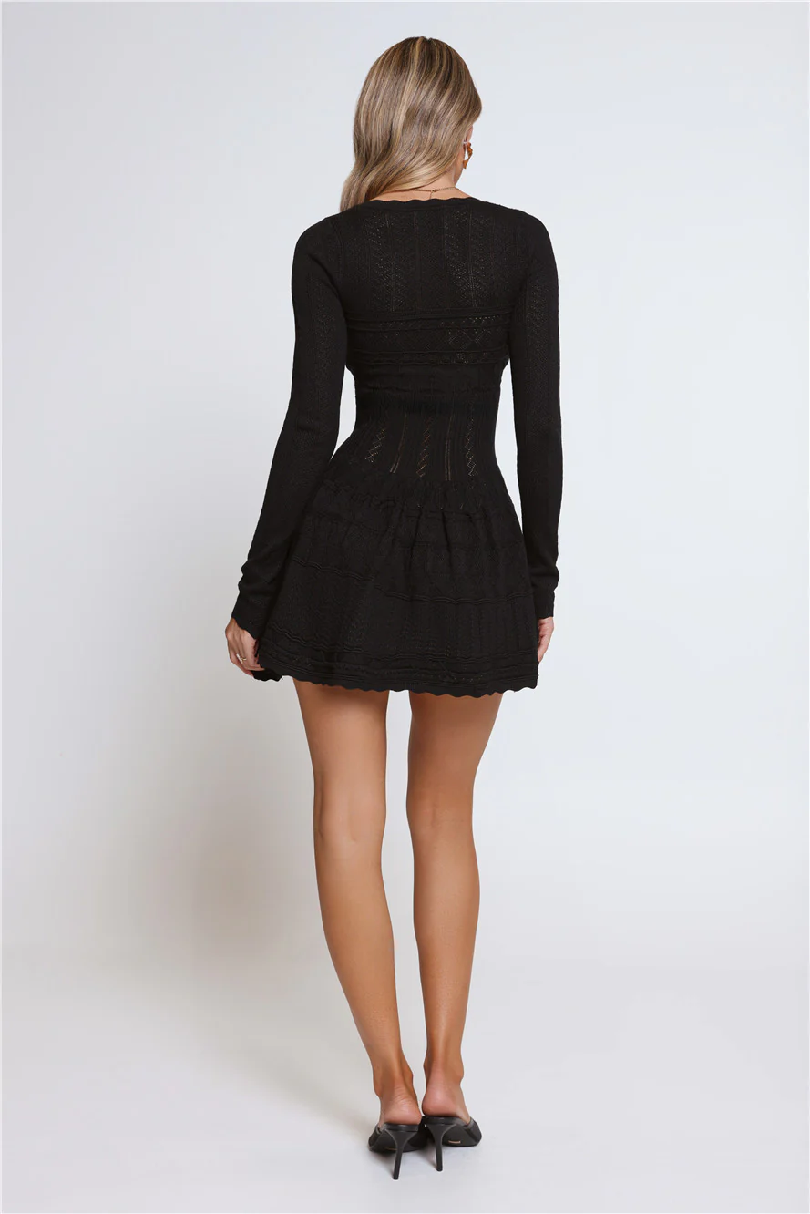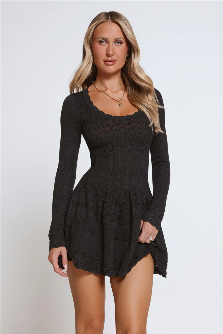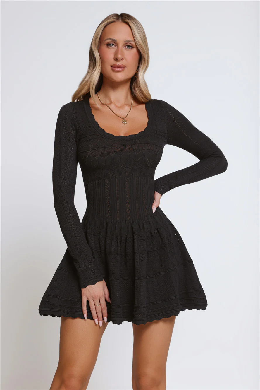 Pretty Portrait Long Sleeve Knit Mini Dress Black