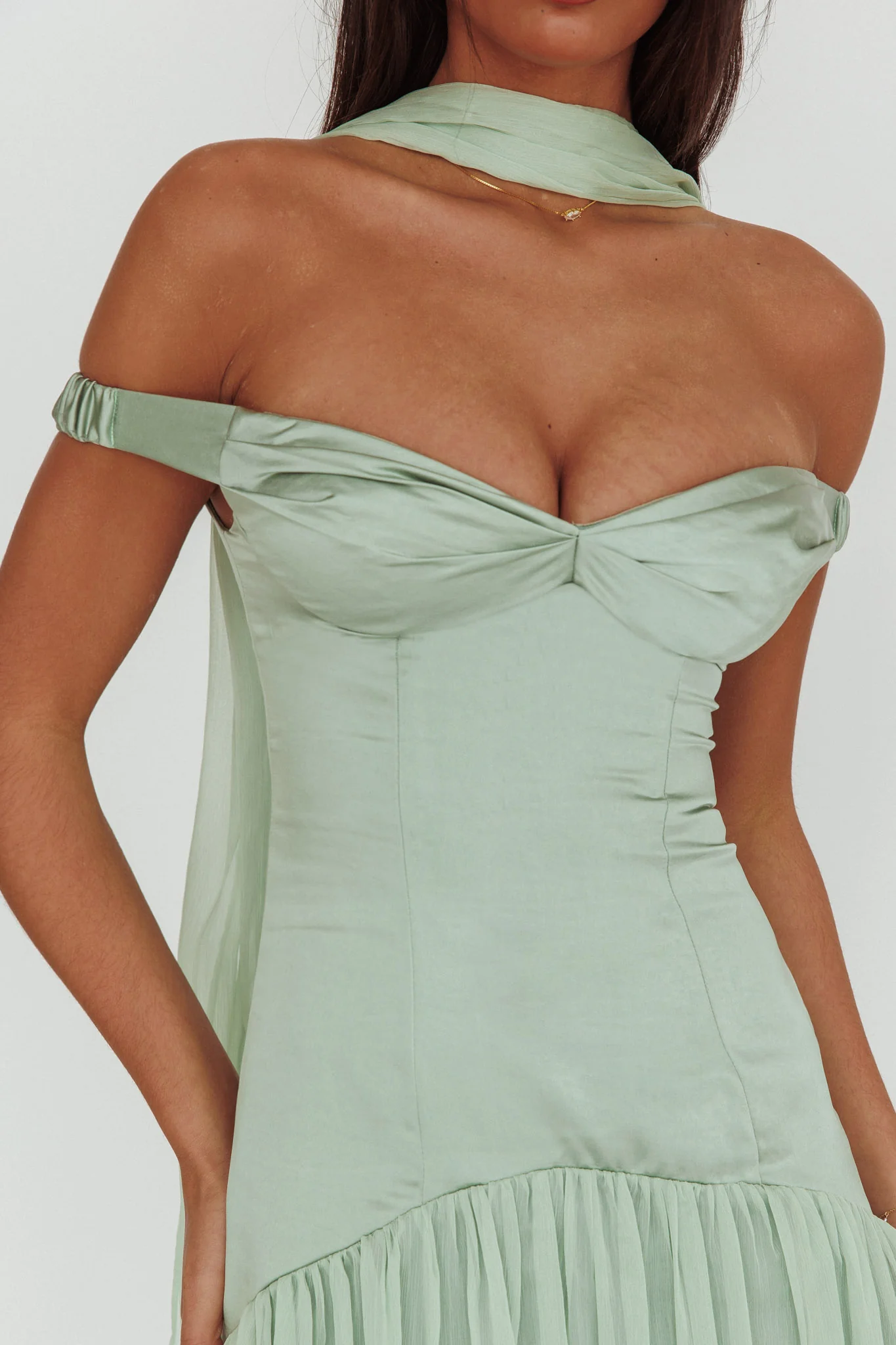 Moonlit Magic Asymmetric Neckline Satin Ruffle Dress Butter