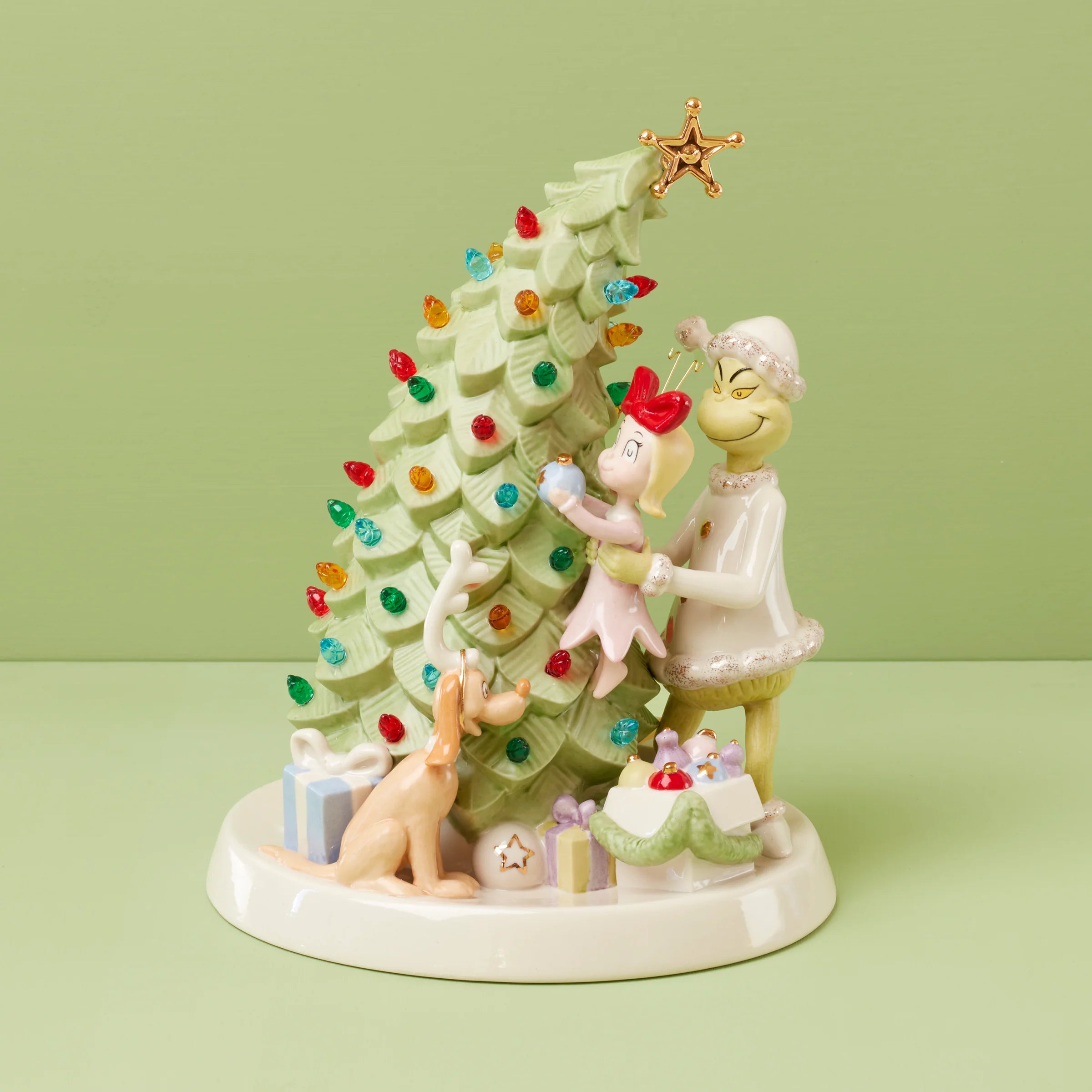 Merry Grinchmas Trimming The Tree Lit Figurine