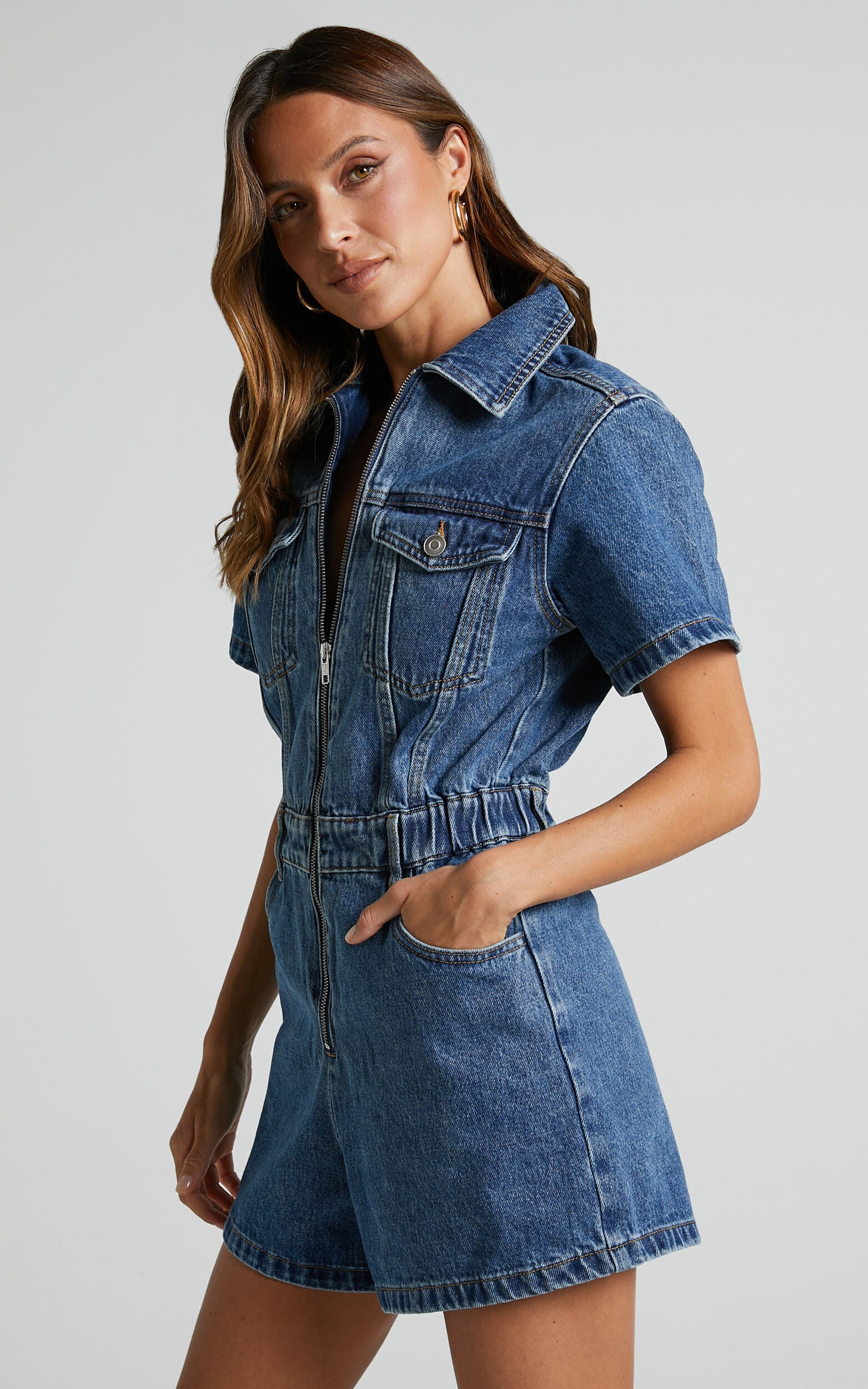 Mauriel Playsuit - Recycled Cotton Utility Playsuit in Dark Blue