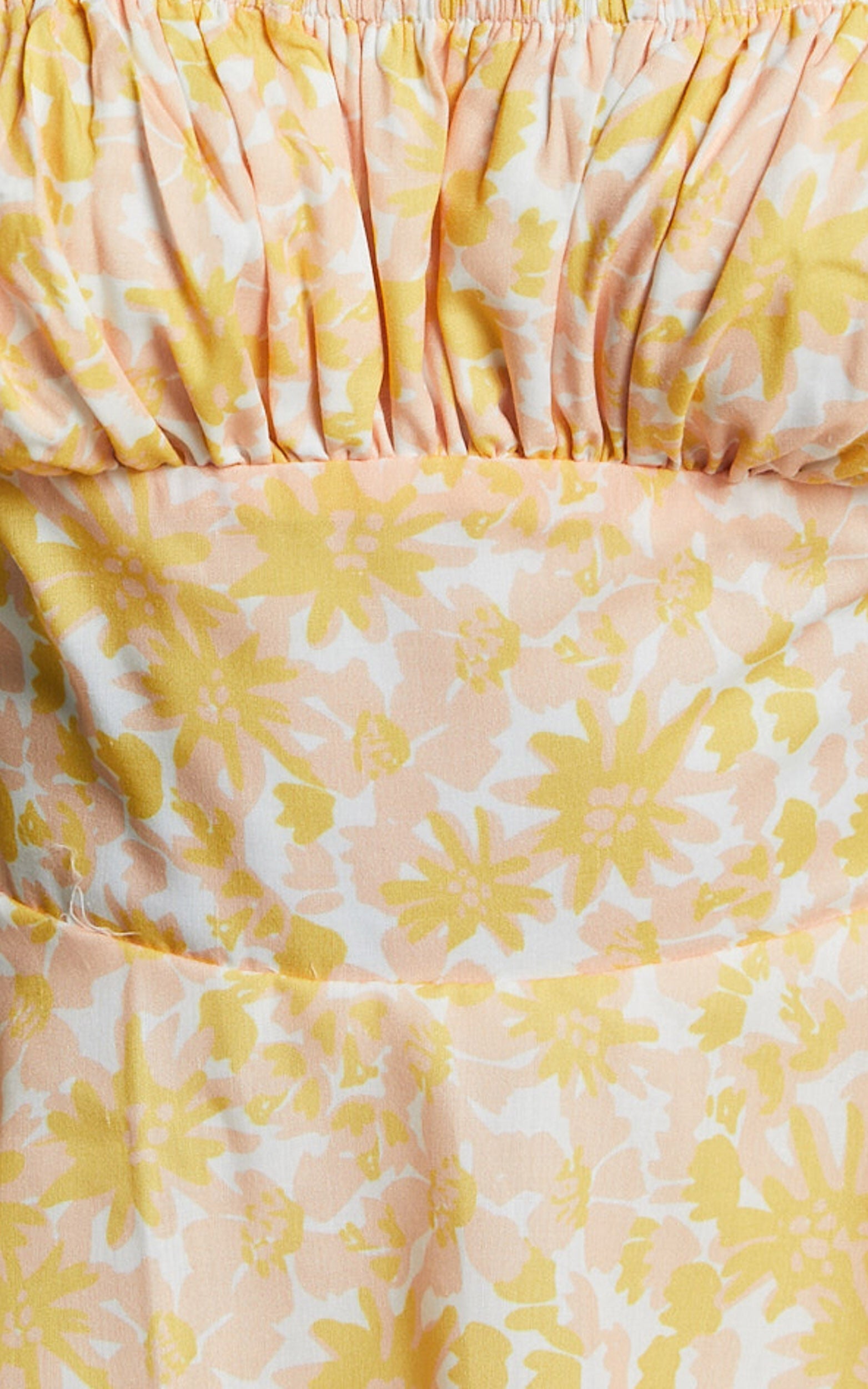 Lorma Midi Dress - Ruched Layered Dress in Orange Floral