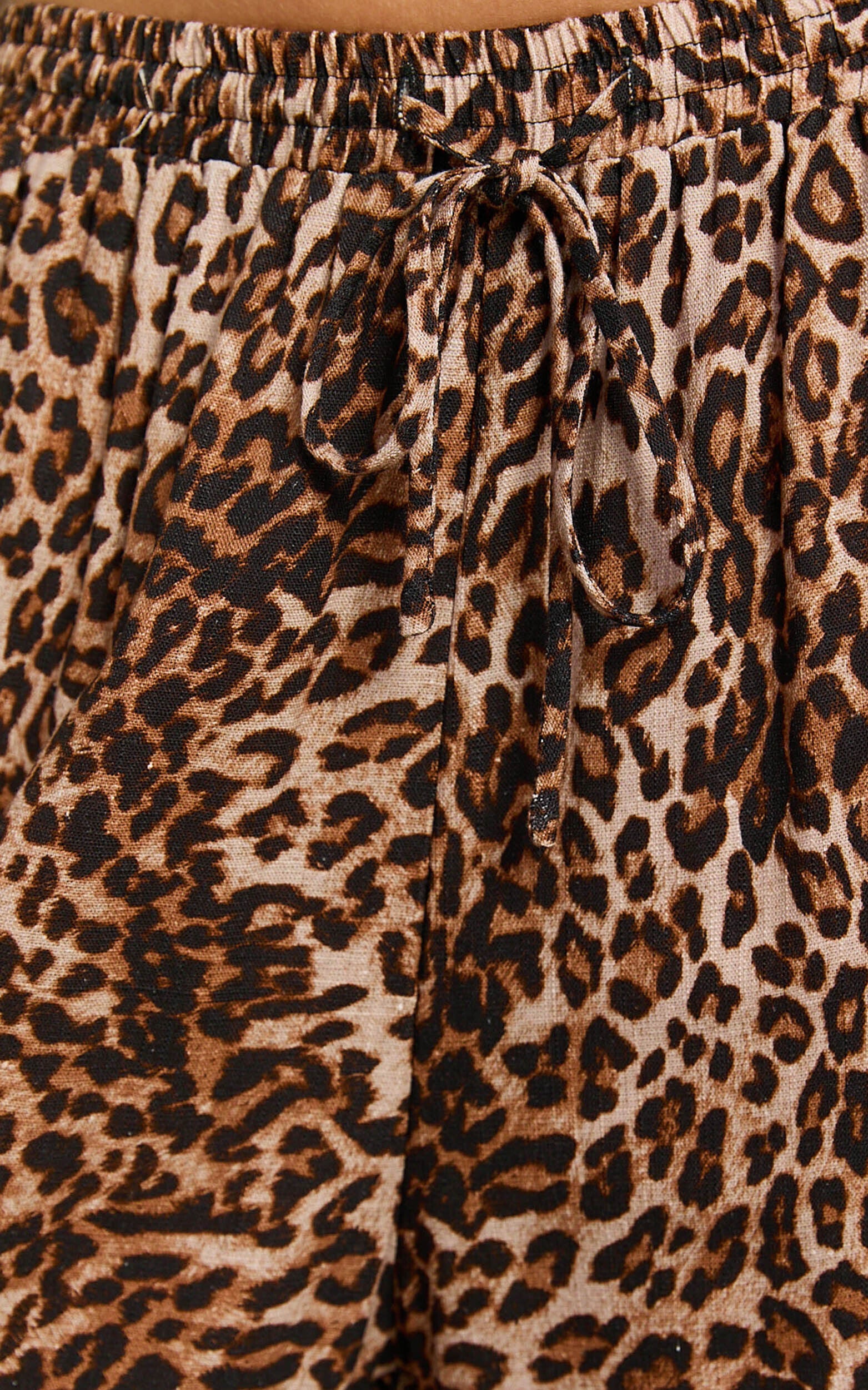 Lopez Linen Pants - Elasticated Straight Leg Pants in Tonal Leopard Print