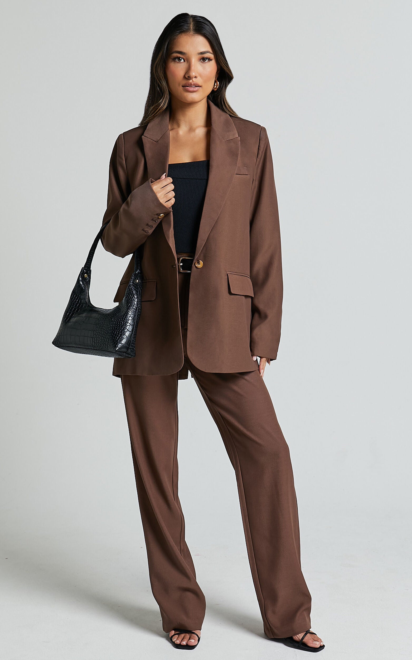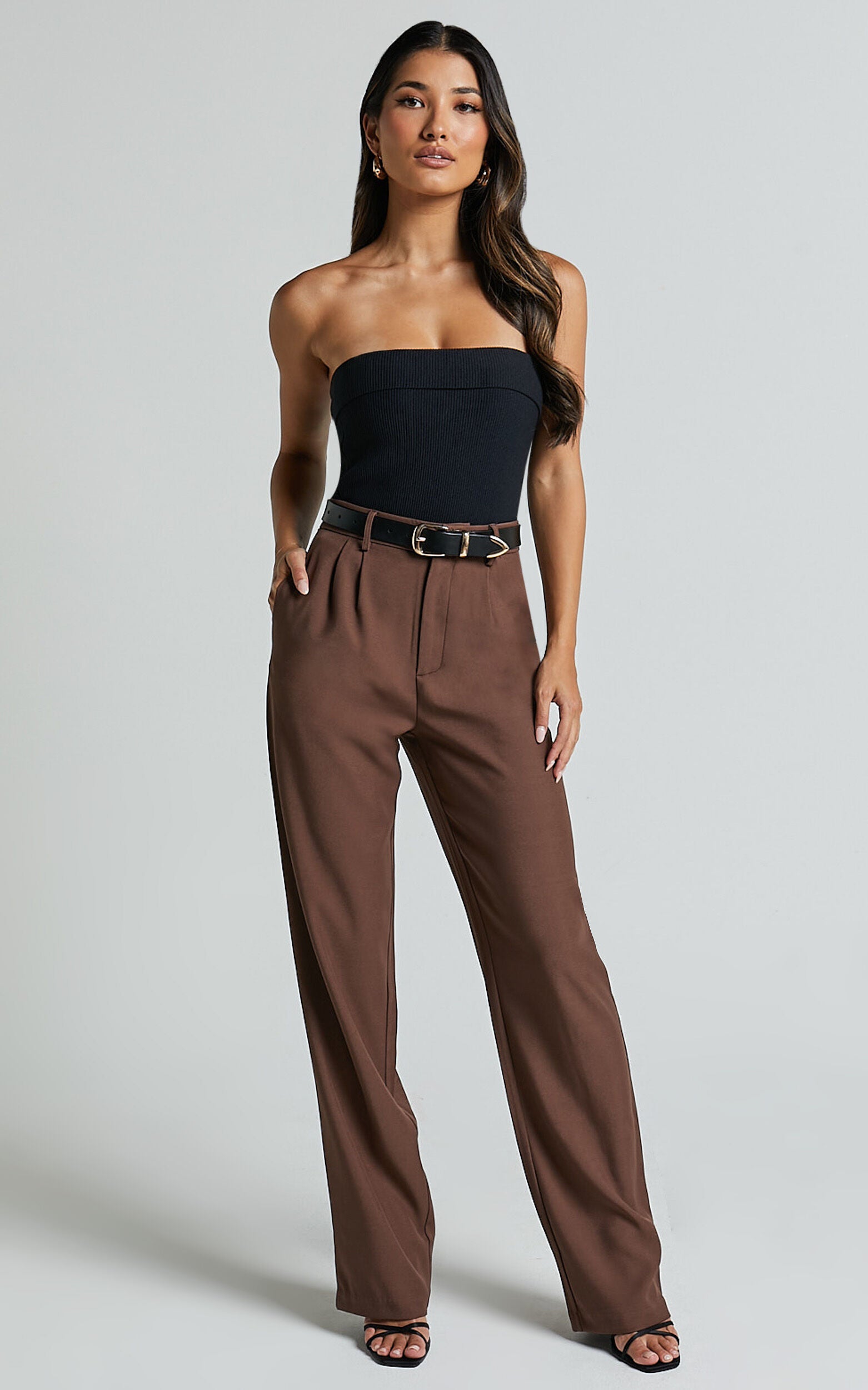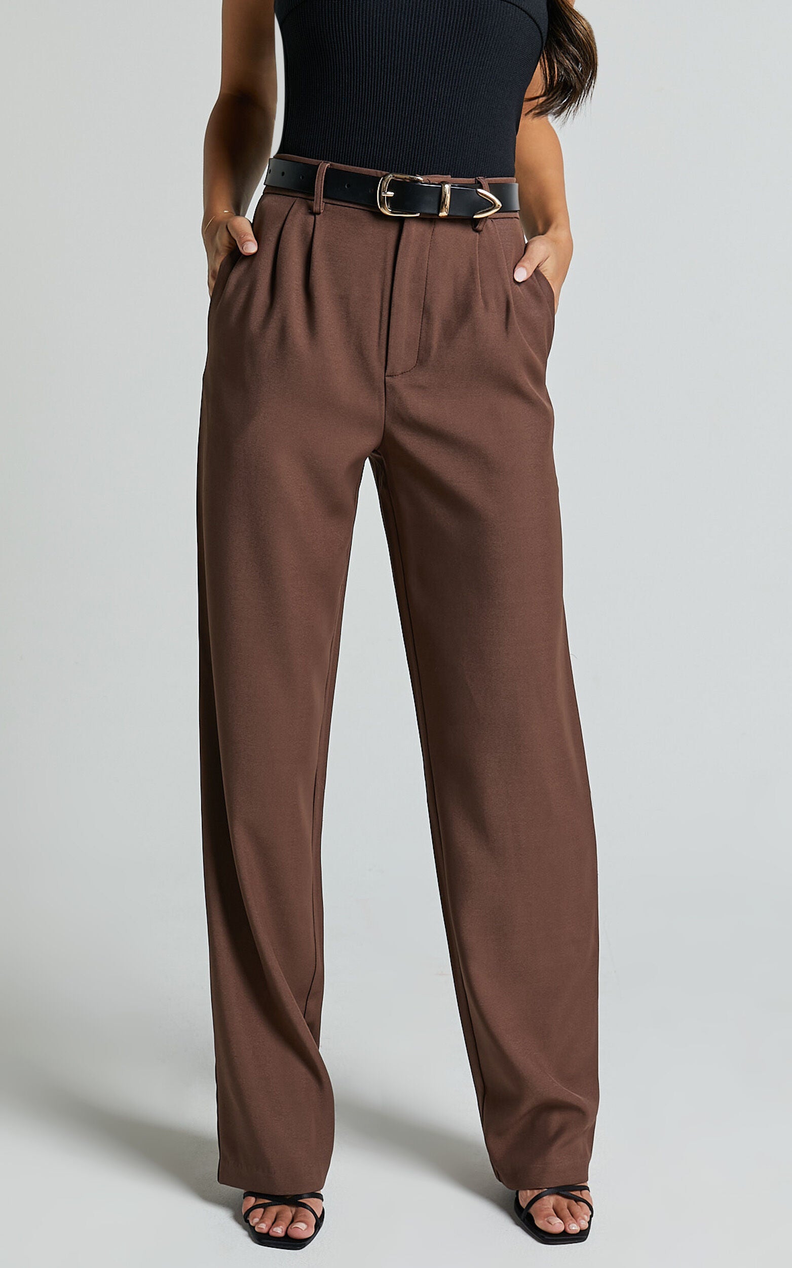 Lorcan Pants - High Waisted Tailored Pants in Chocolate
