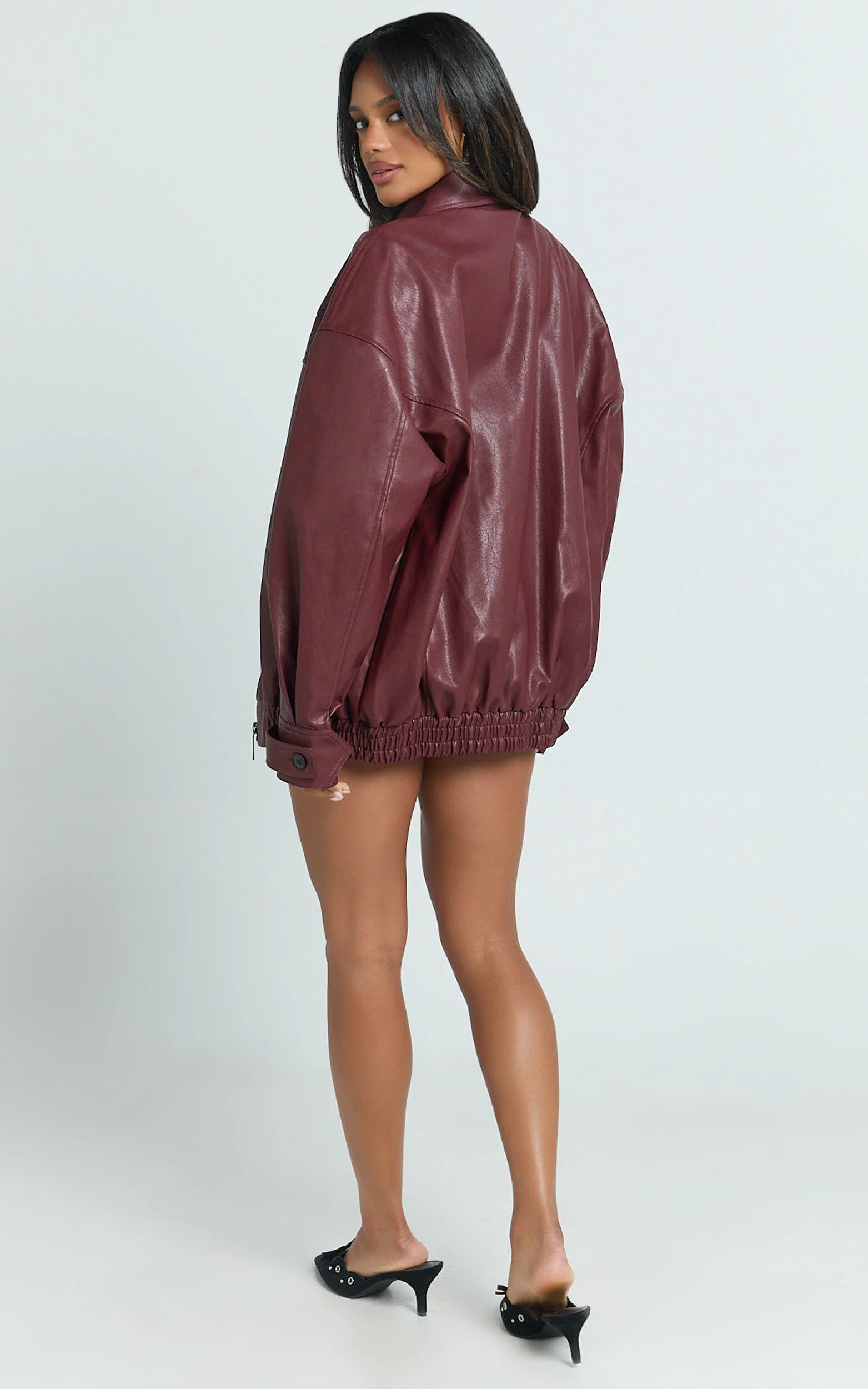 Rosetta Jacket - Oversized Faux Leather Bomber Jacket in Wine