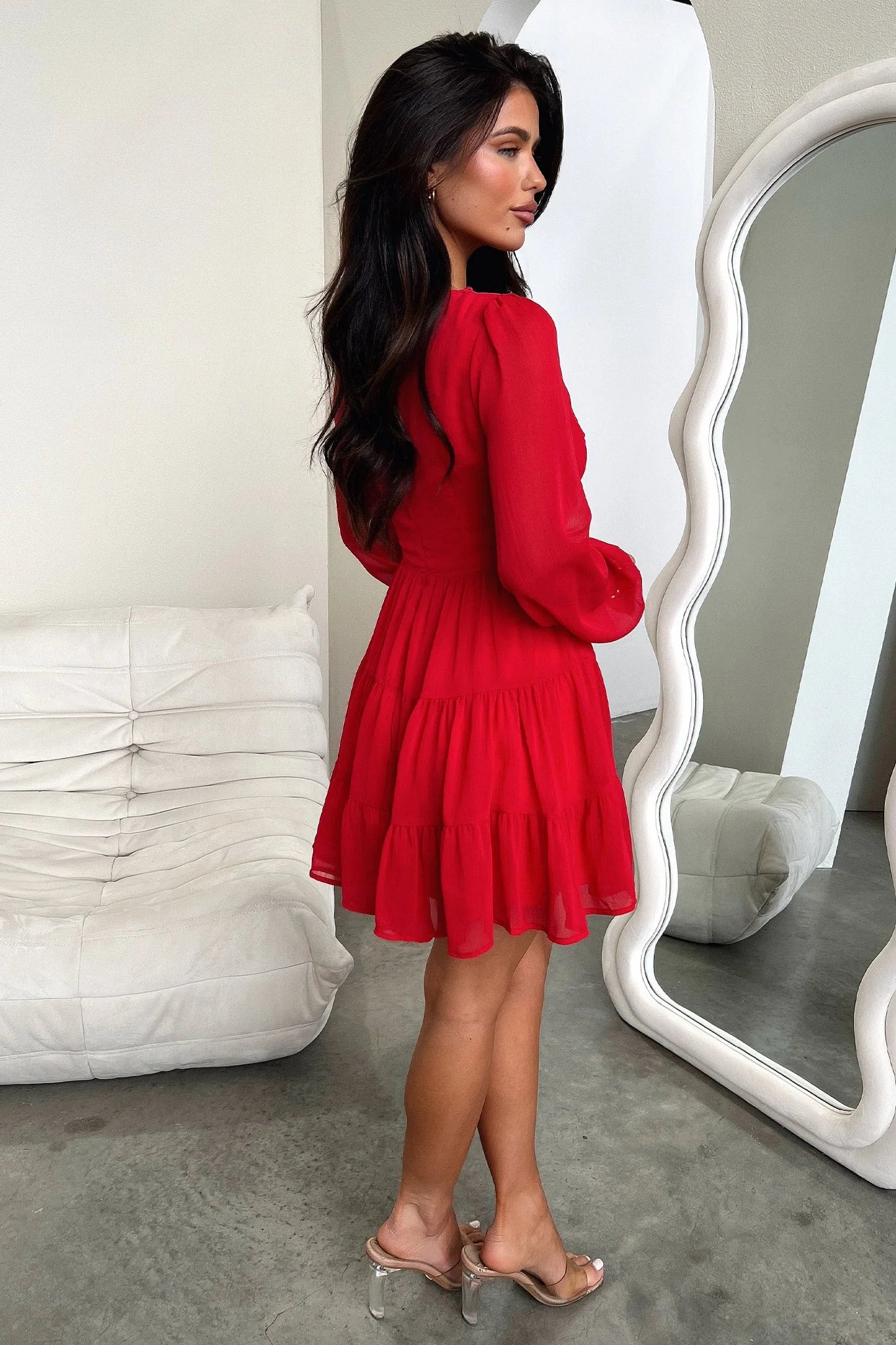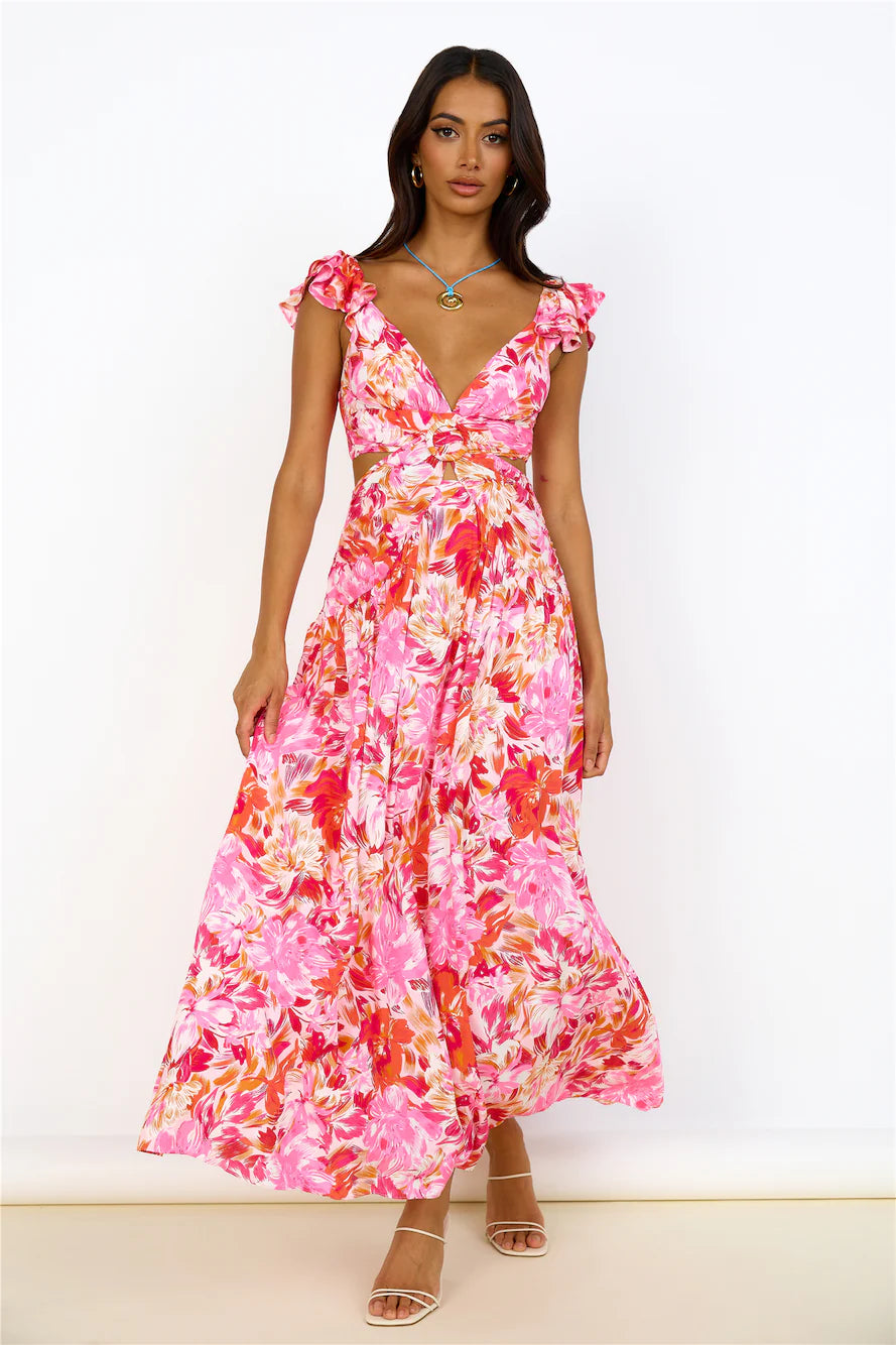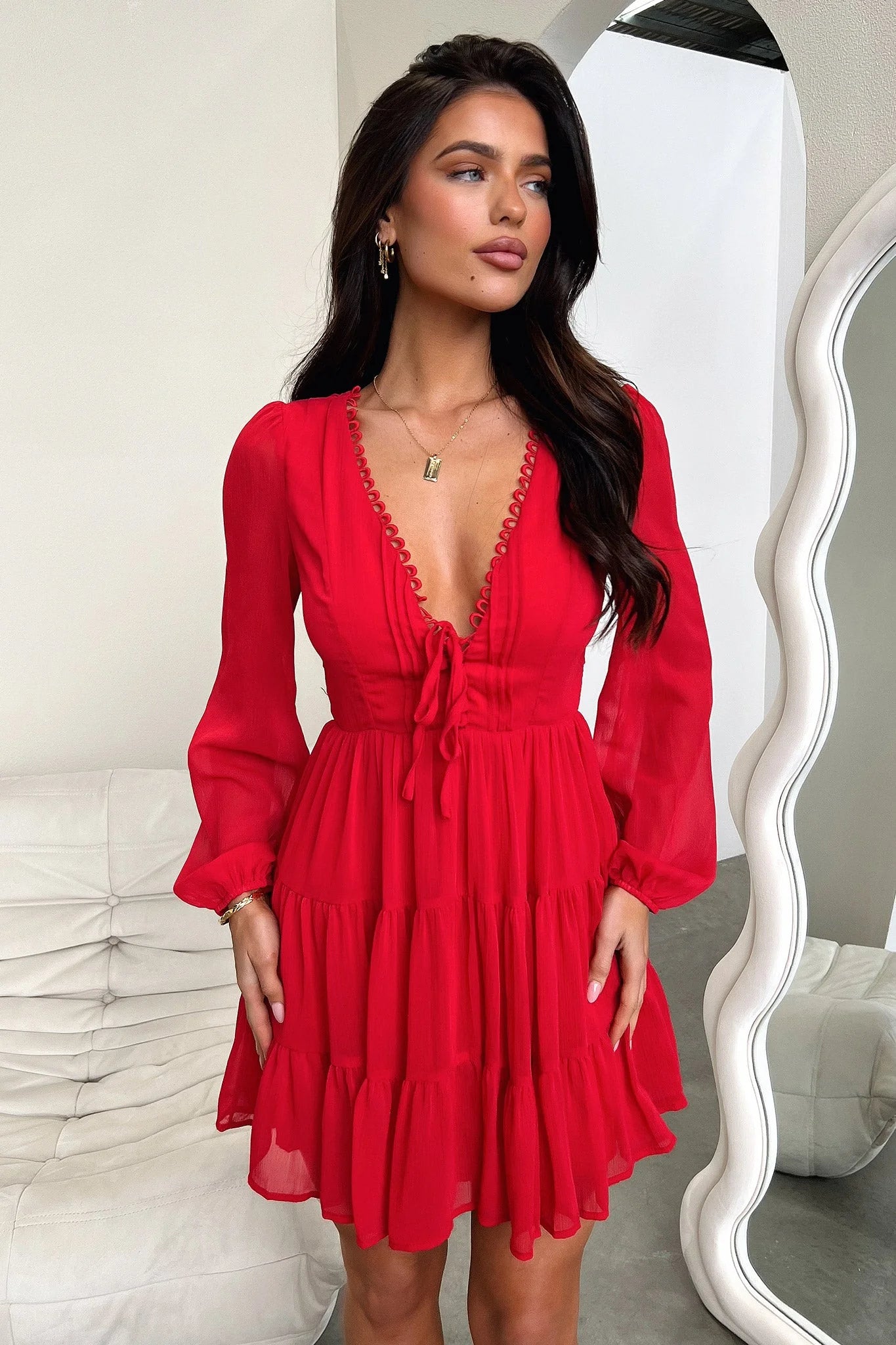 Libre Plunging Halter Ruffle Maxi Dress Red