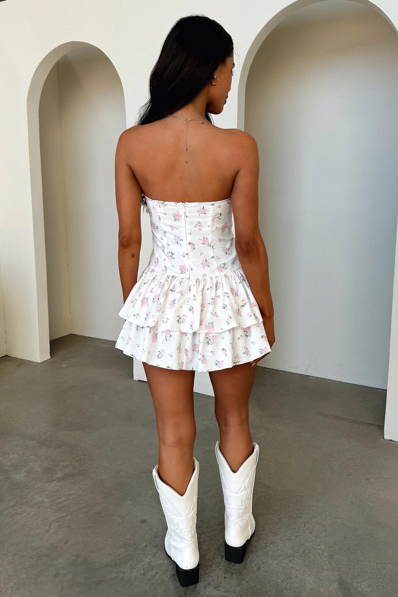 Lettie Mini Dress - Strapless Tiered Hem Dress in Pink