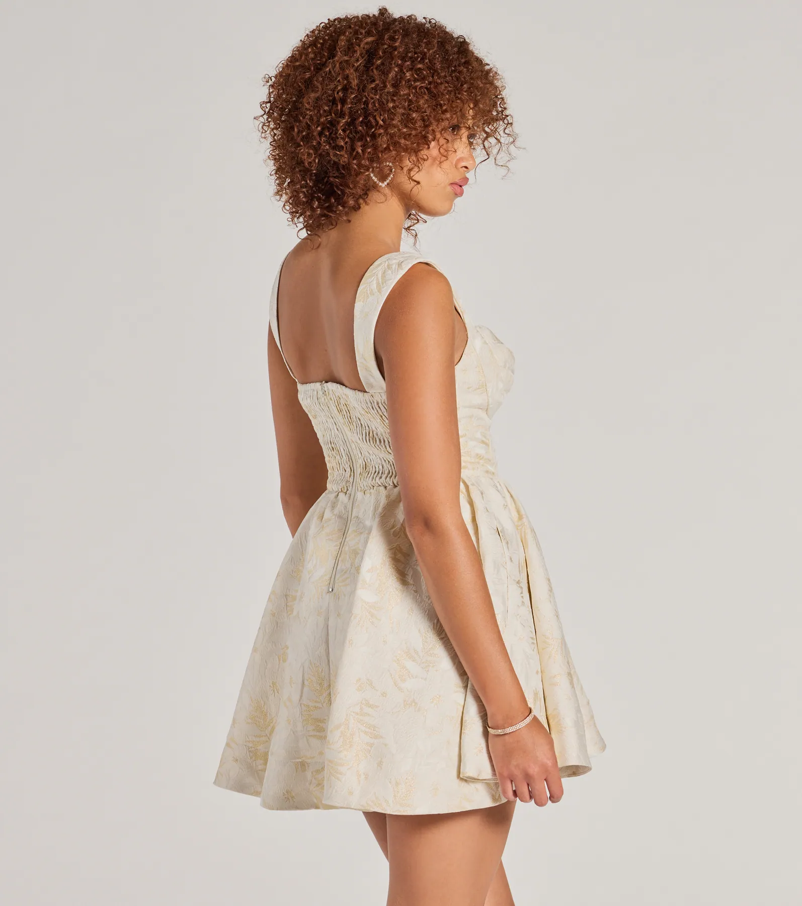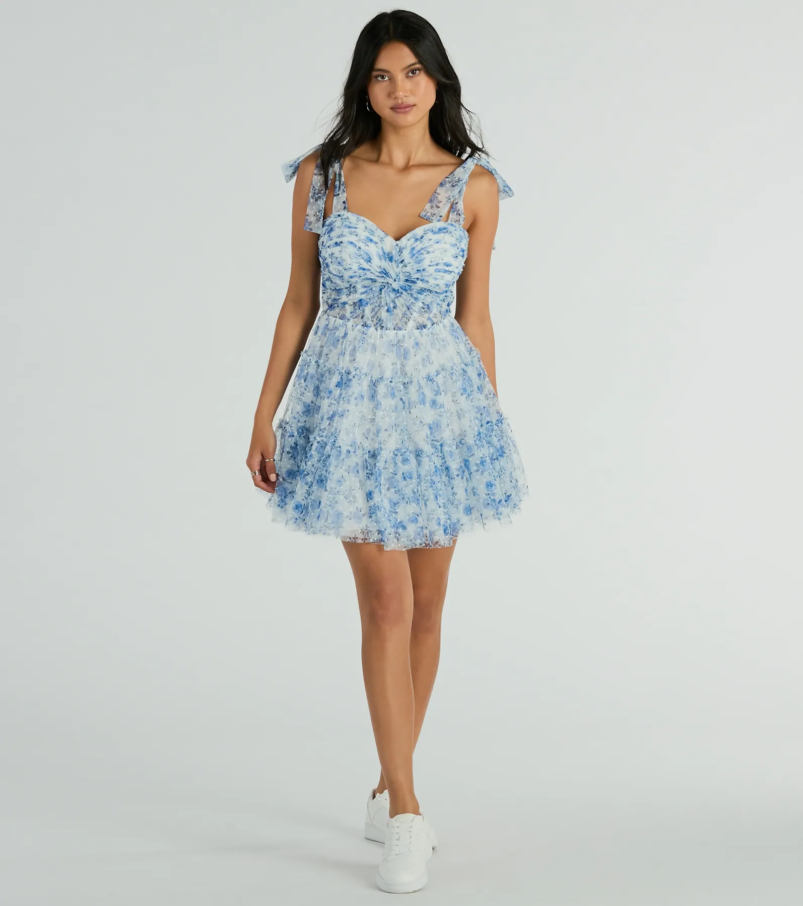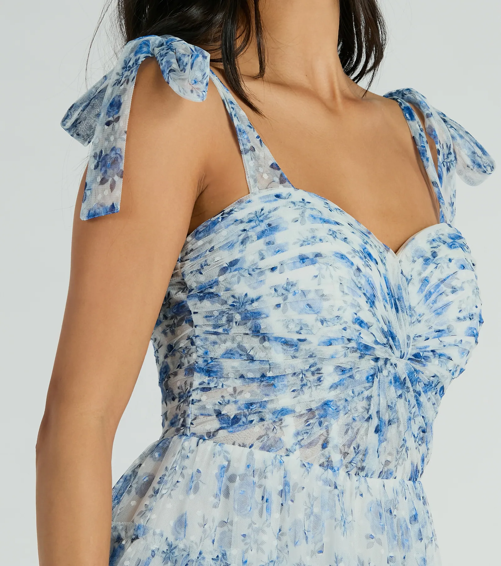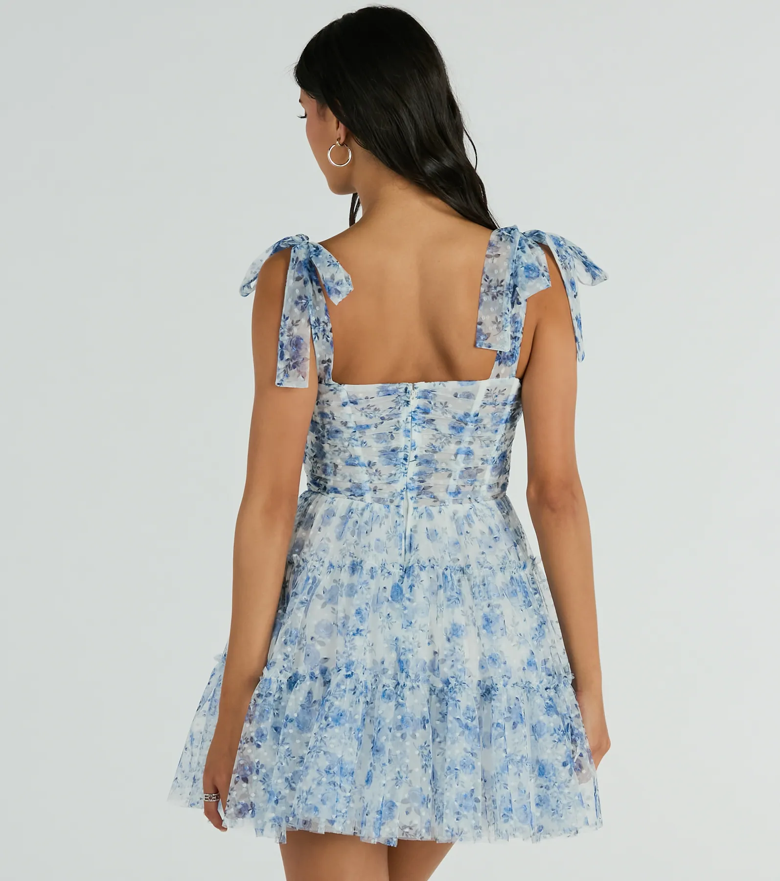 Brynne Formal Floral Mesh Ruffled Skater Dress