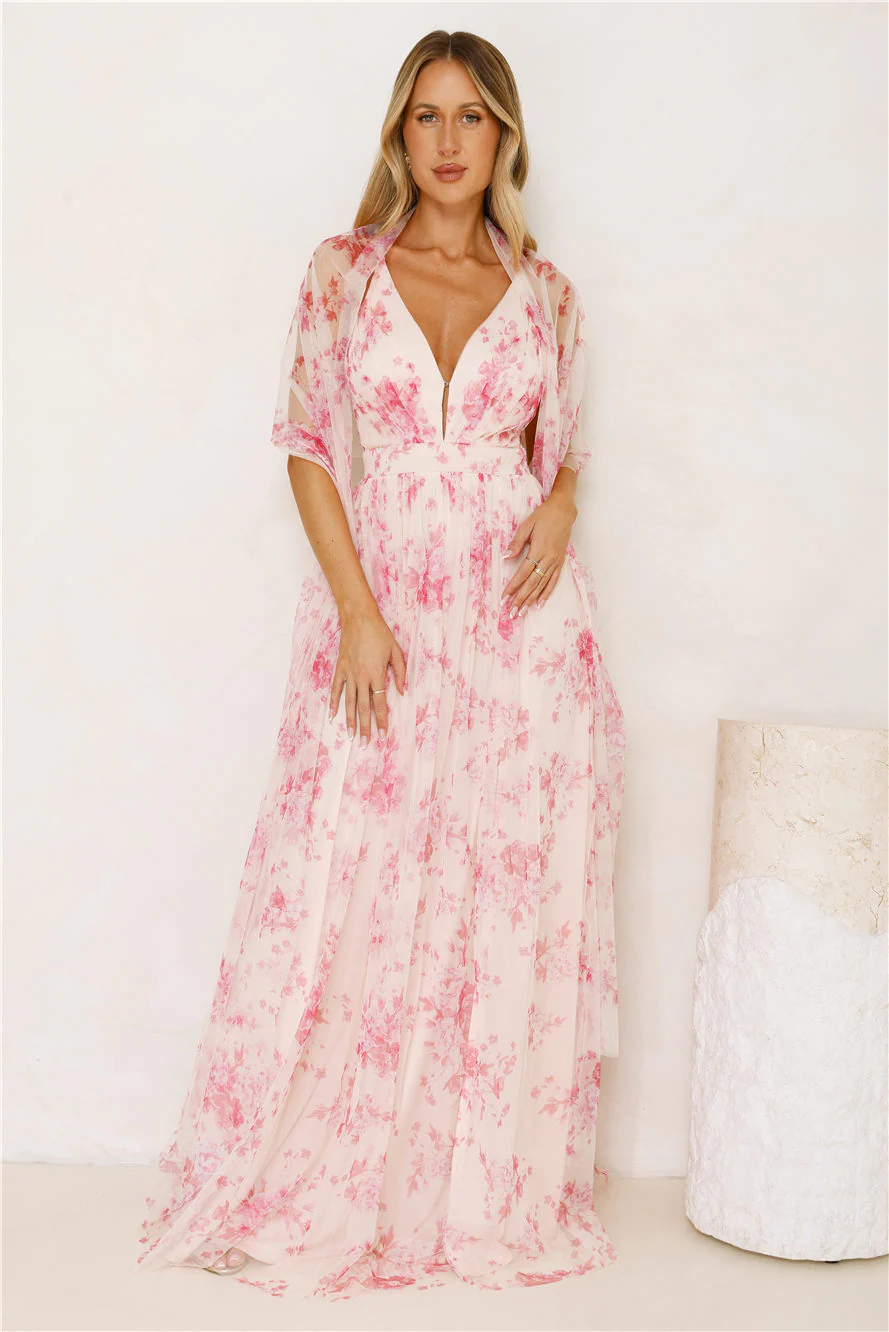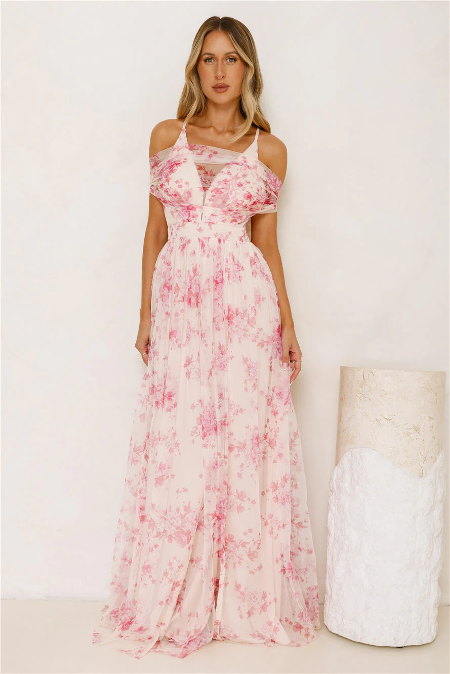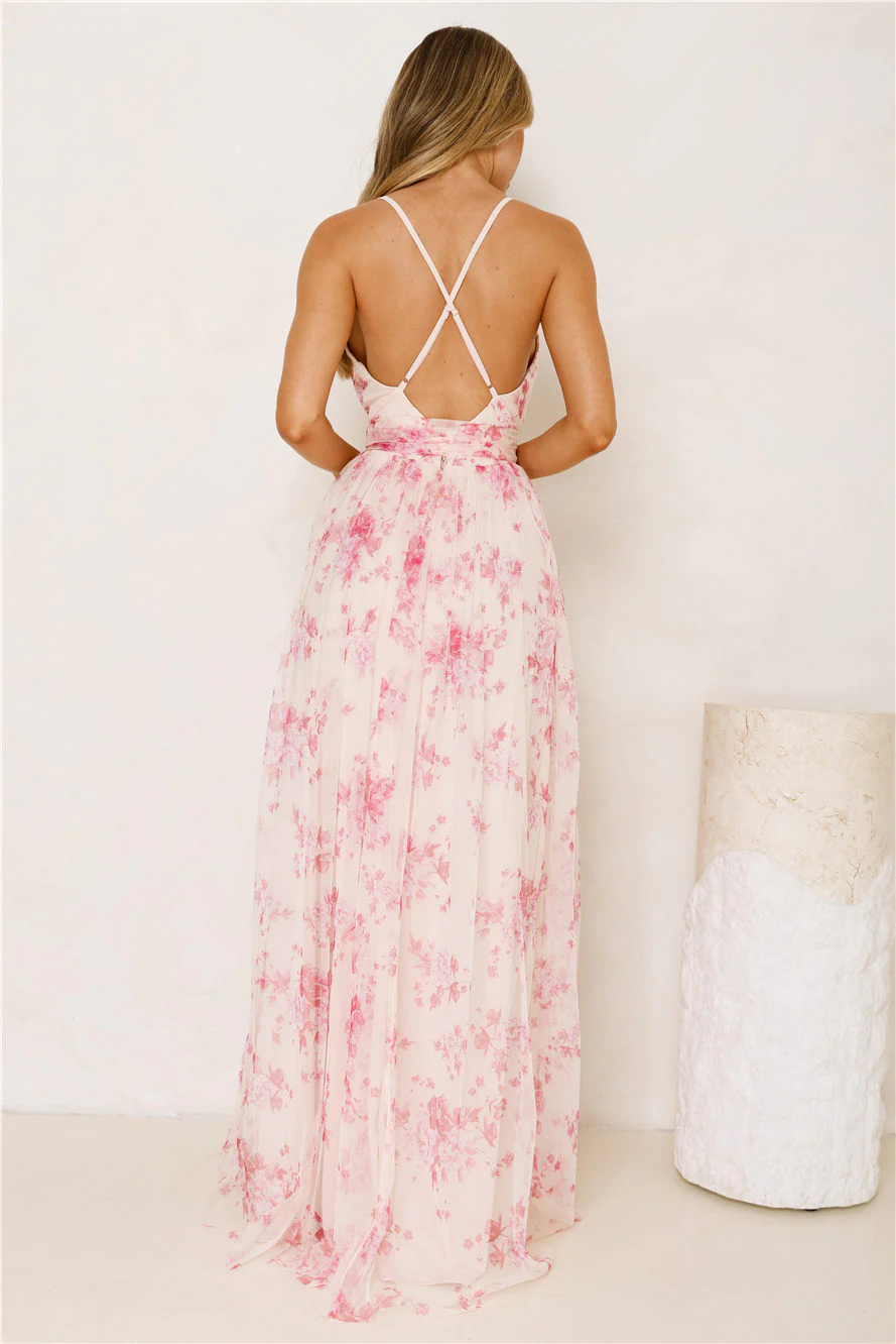 Rule The Glow Satin Mesh Maxi Dress Pink