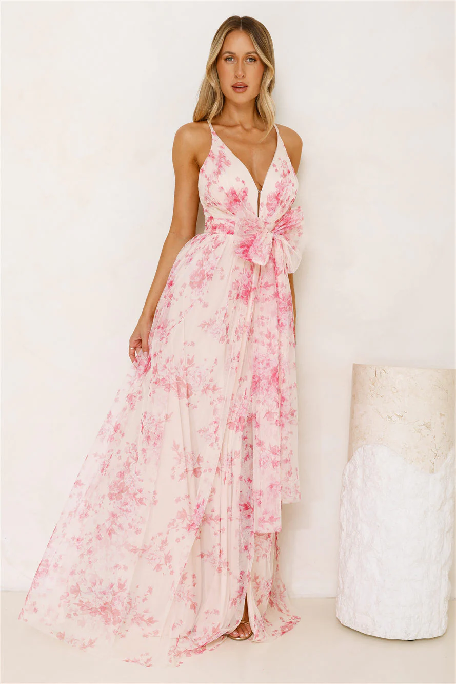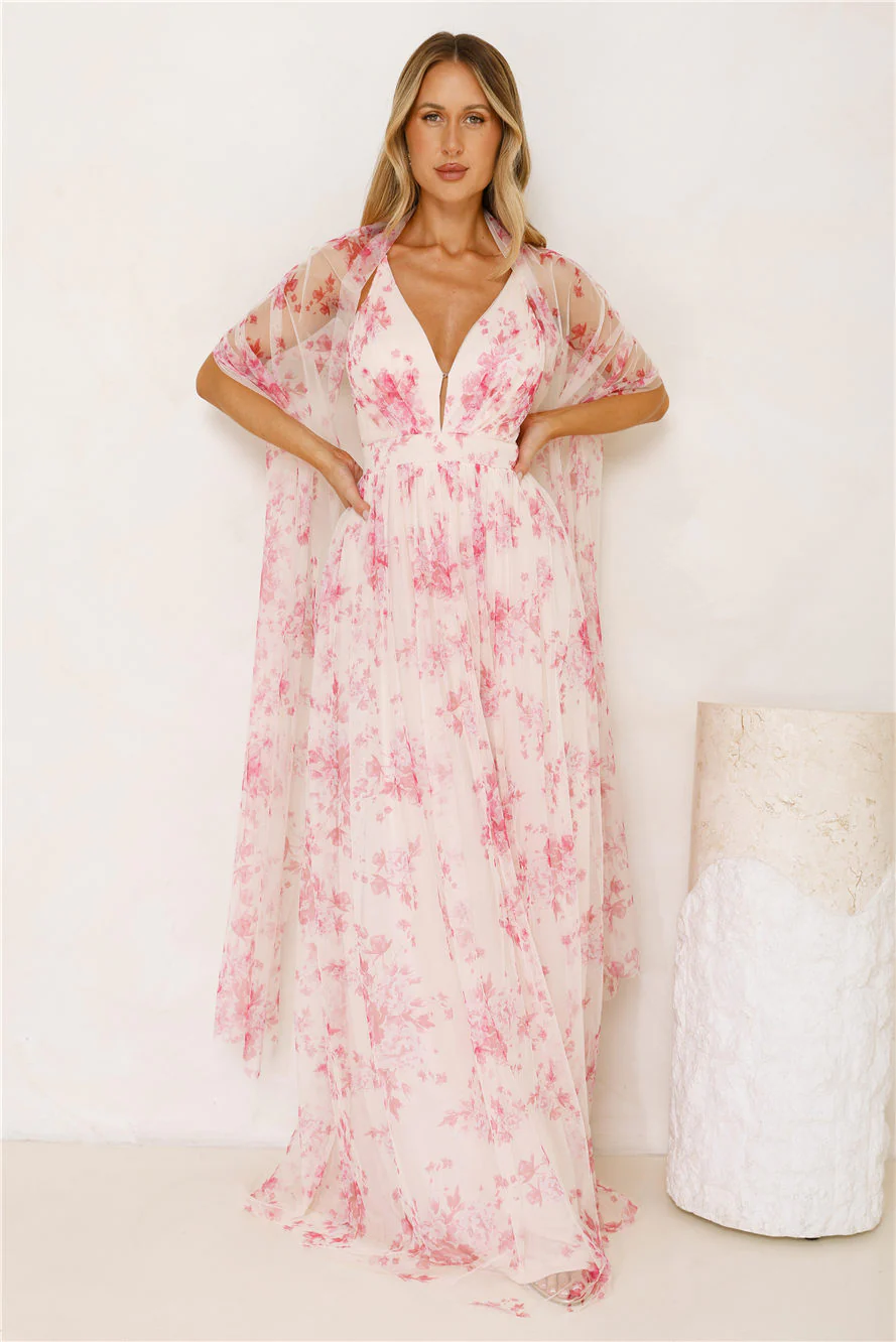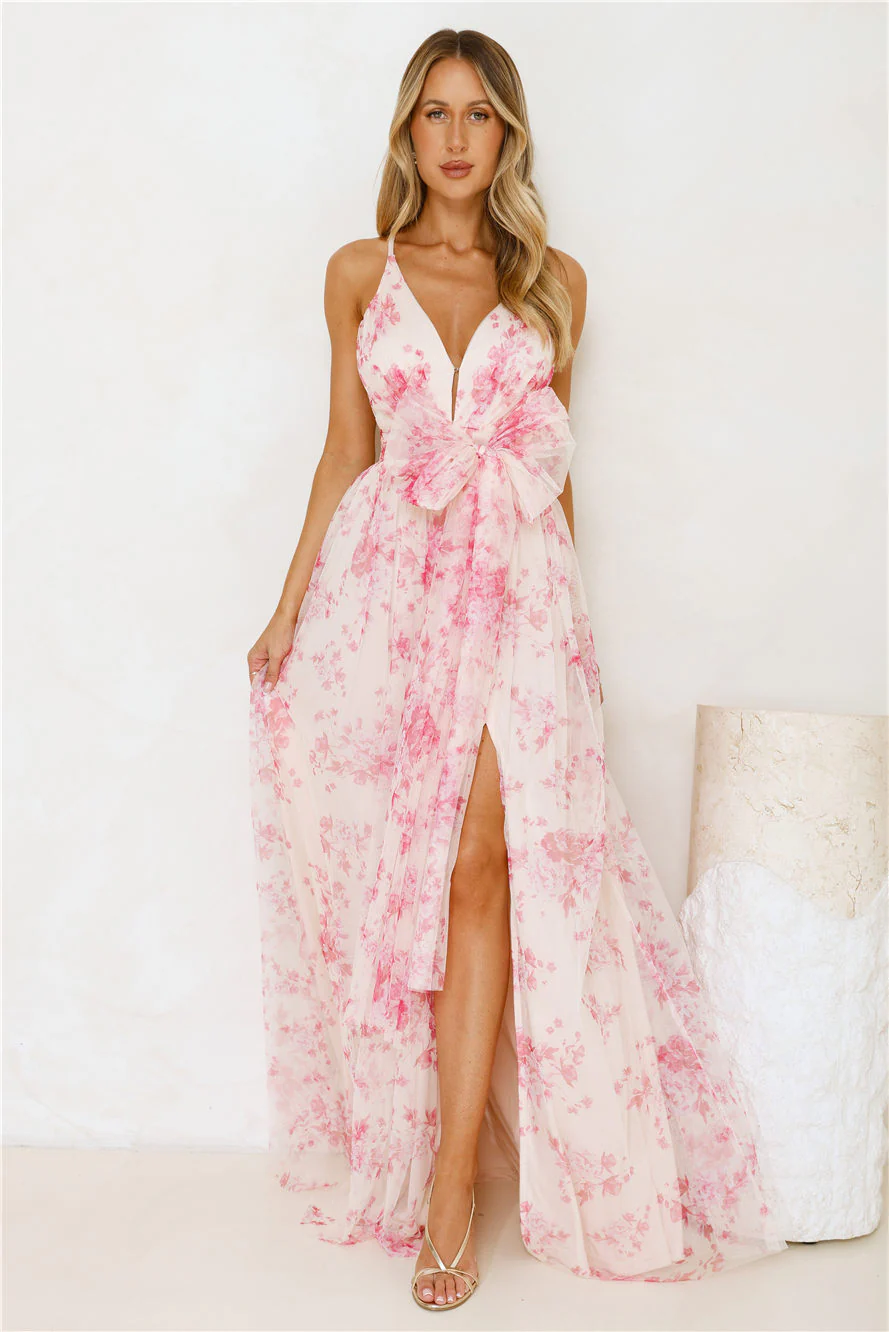Rule The Glow Satin Mesh Maxi Dress Pink