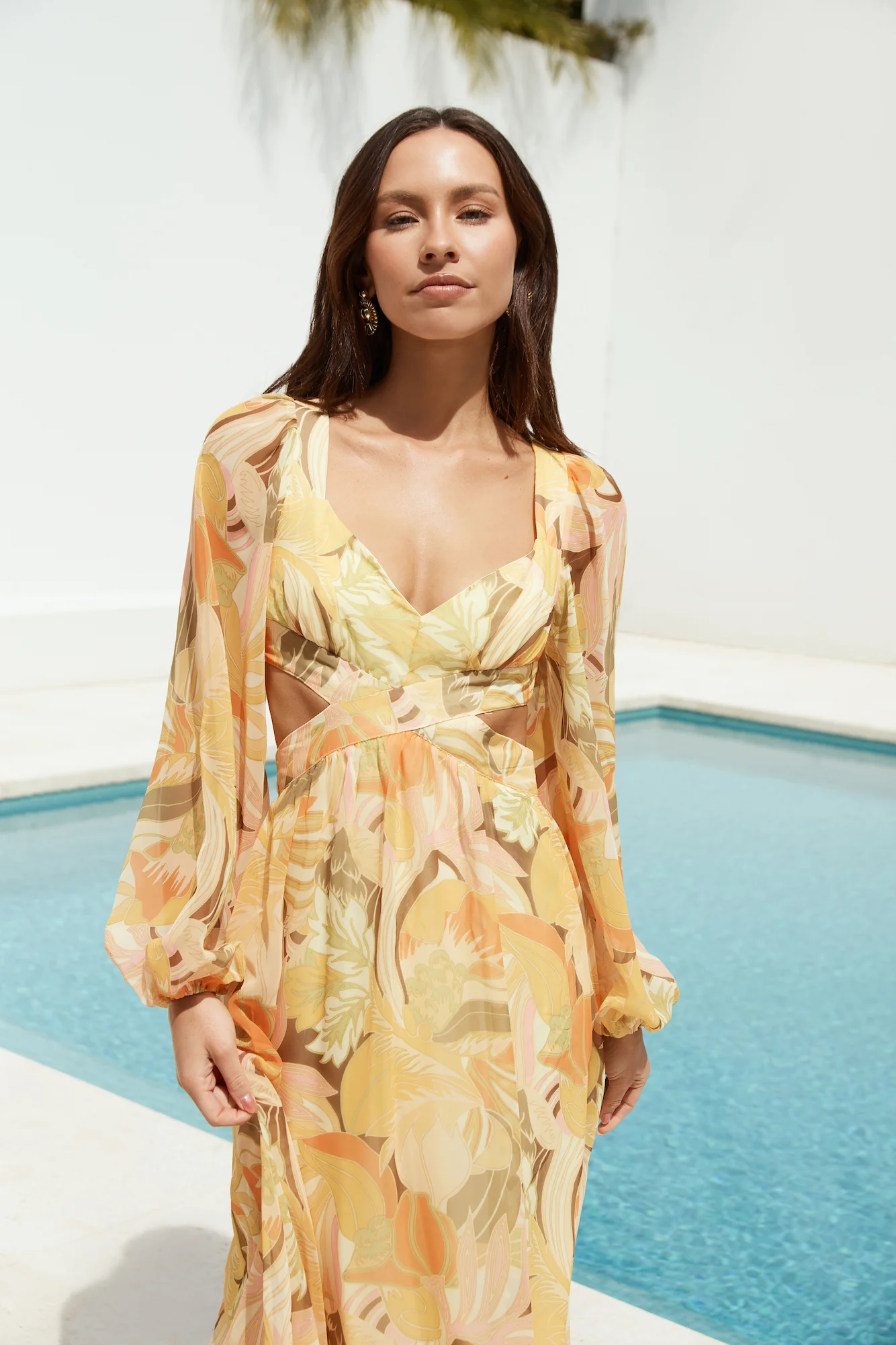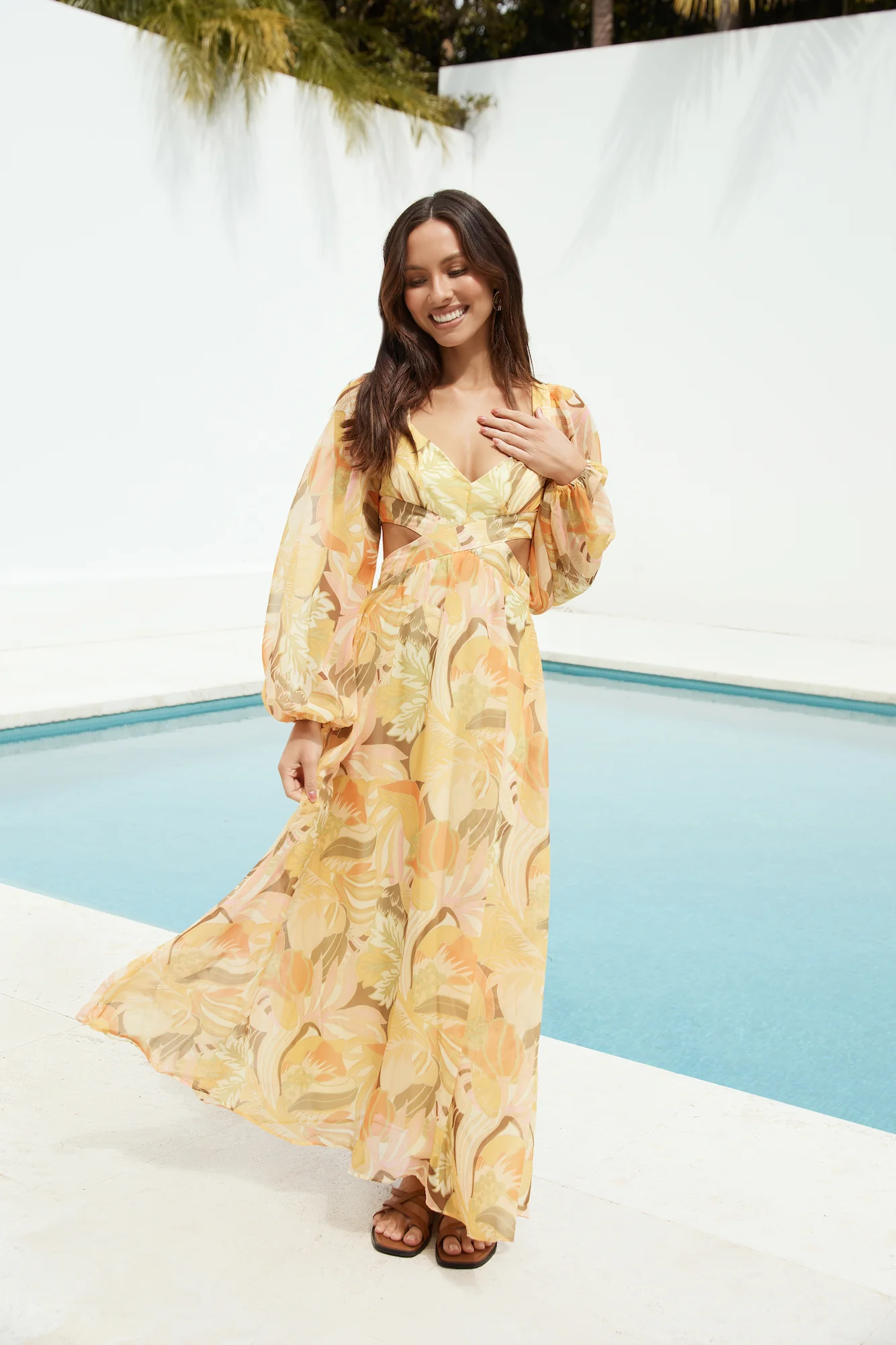 Starlight Blooms Long Sleeve Maxi Dress Yellow