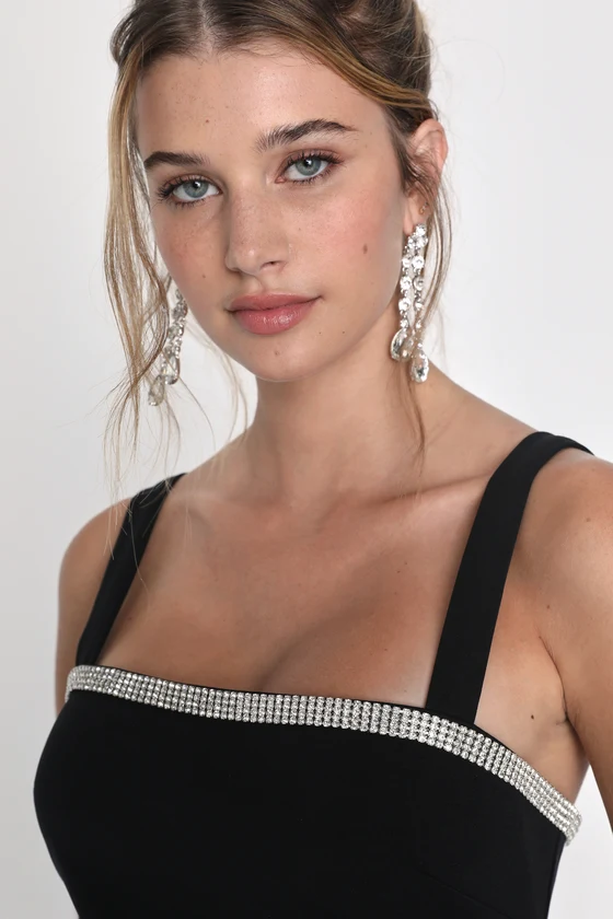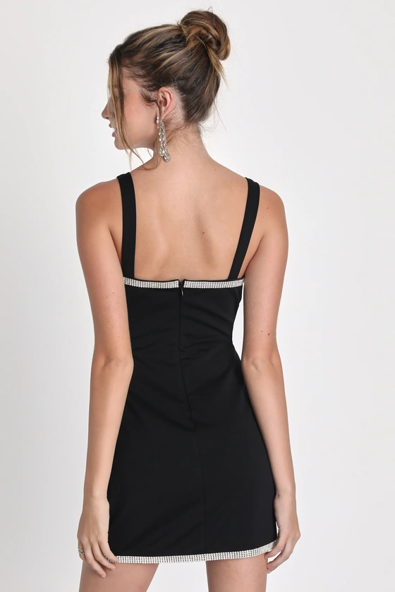 Glowing Allure Black Rhinestone Sleeveless Bodycon Mini Dress