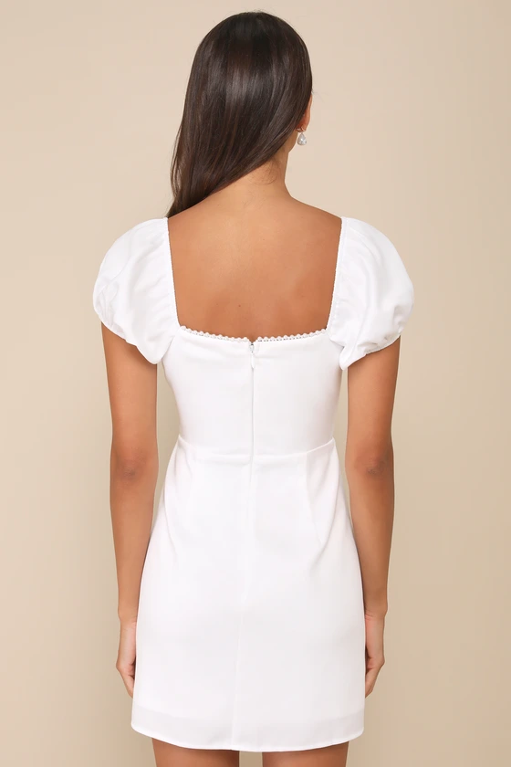 Adorable Poise White Pearl Puff Sleeve Mini Dress