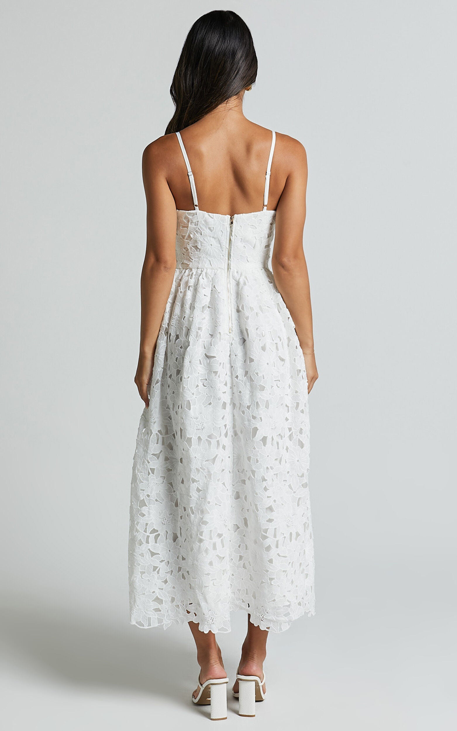 Deborah Midi Dress - Strappy Sweetheart Neck Corset Lace Dress in White