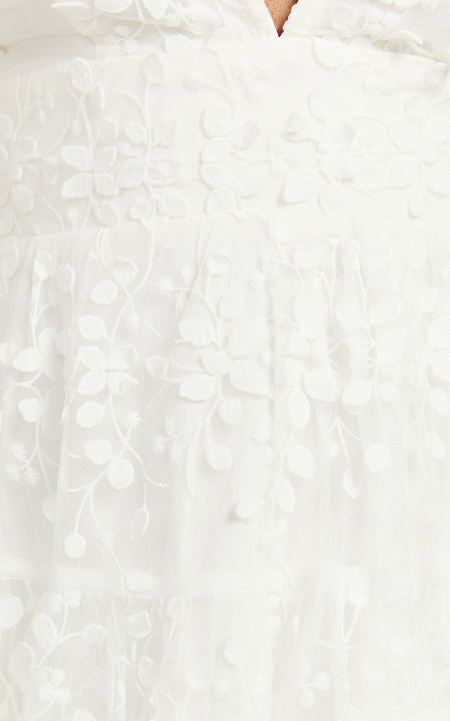 Pamela Mini Dress - Embroidered Plunge Tiered Dress in White
