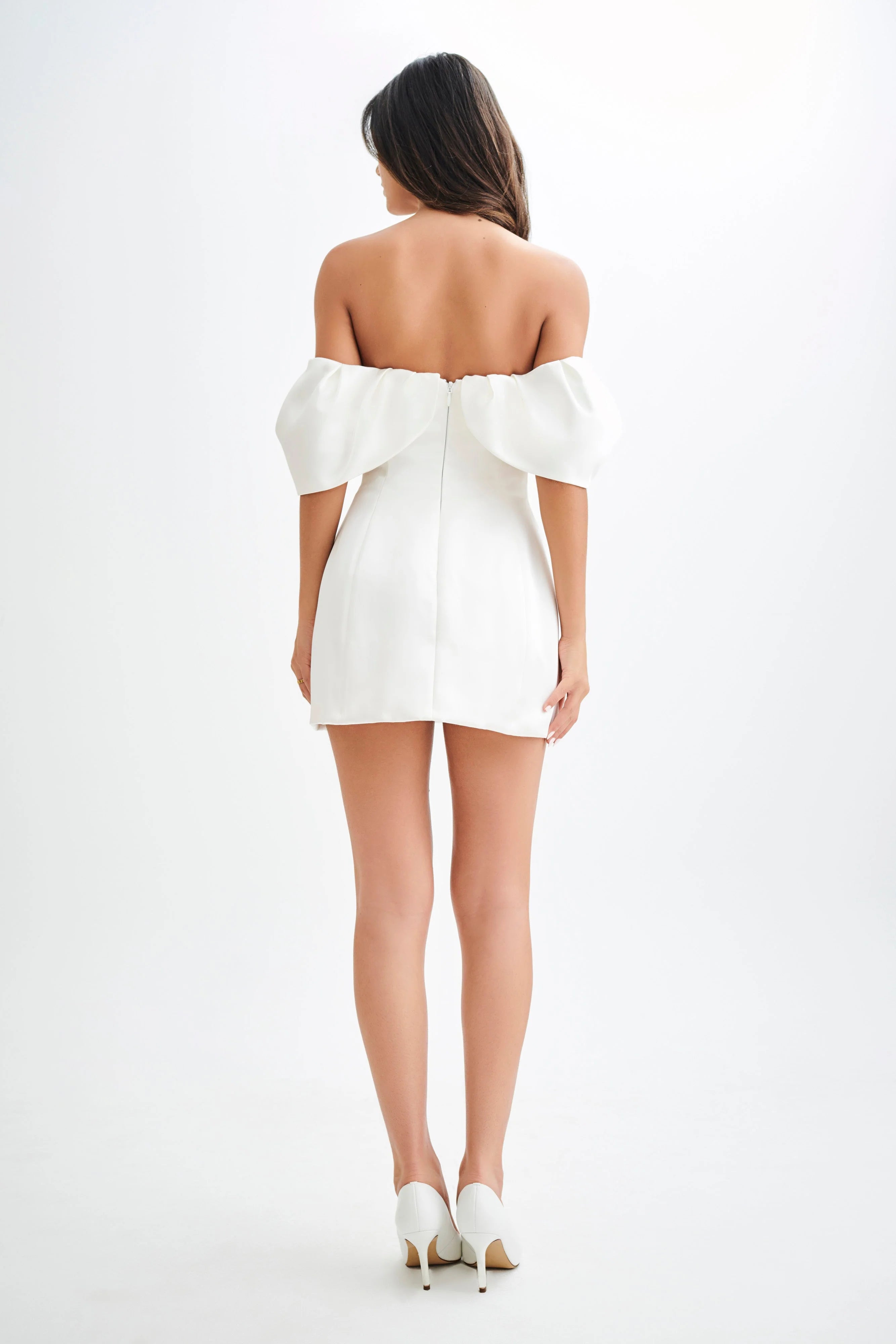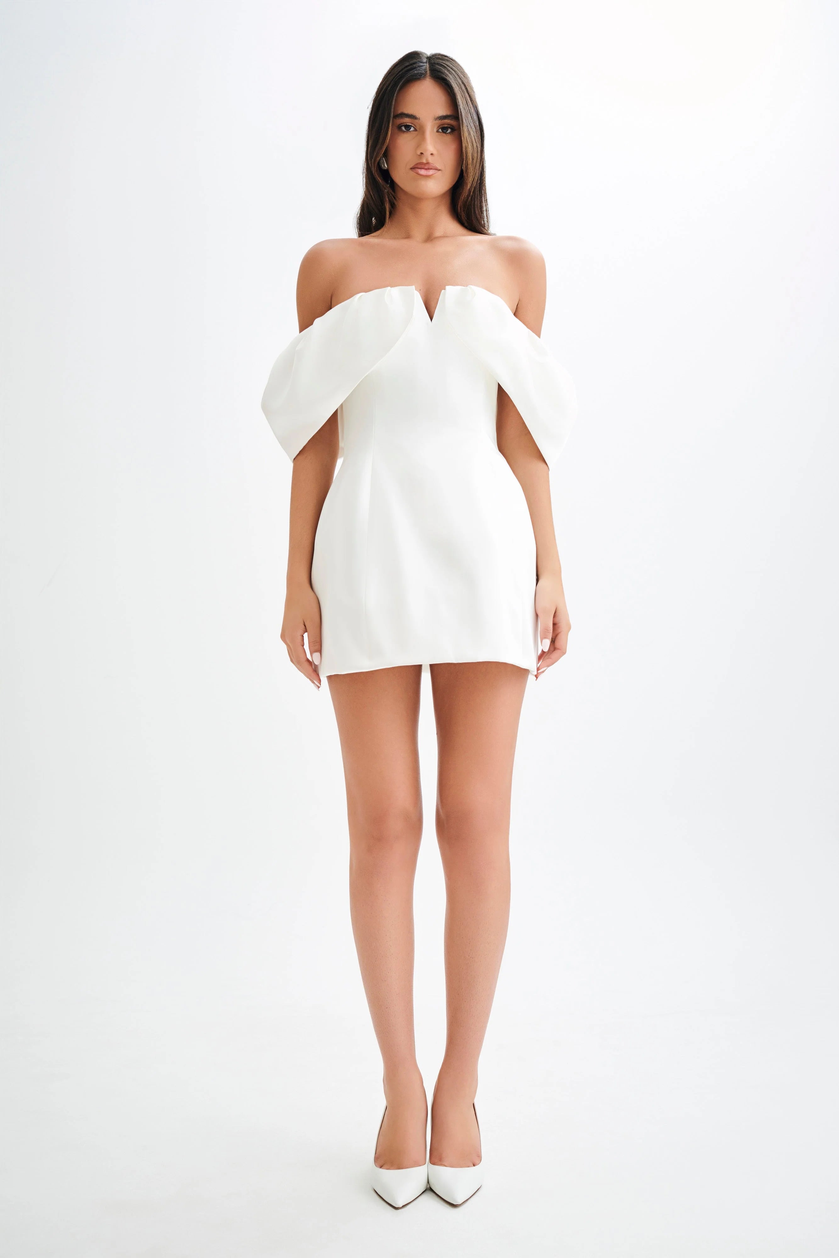 Portia Off Shoulder Satin Corset Dress - White