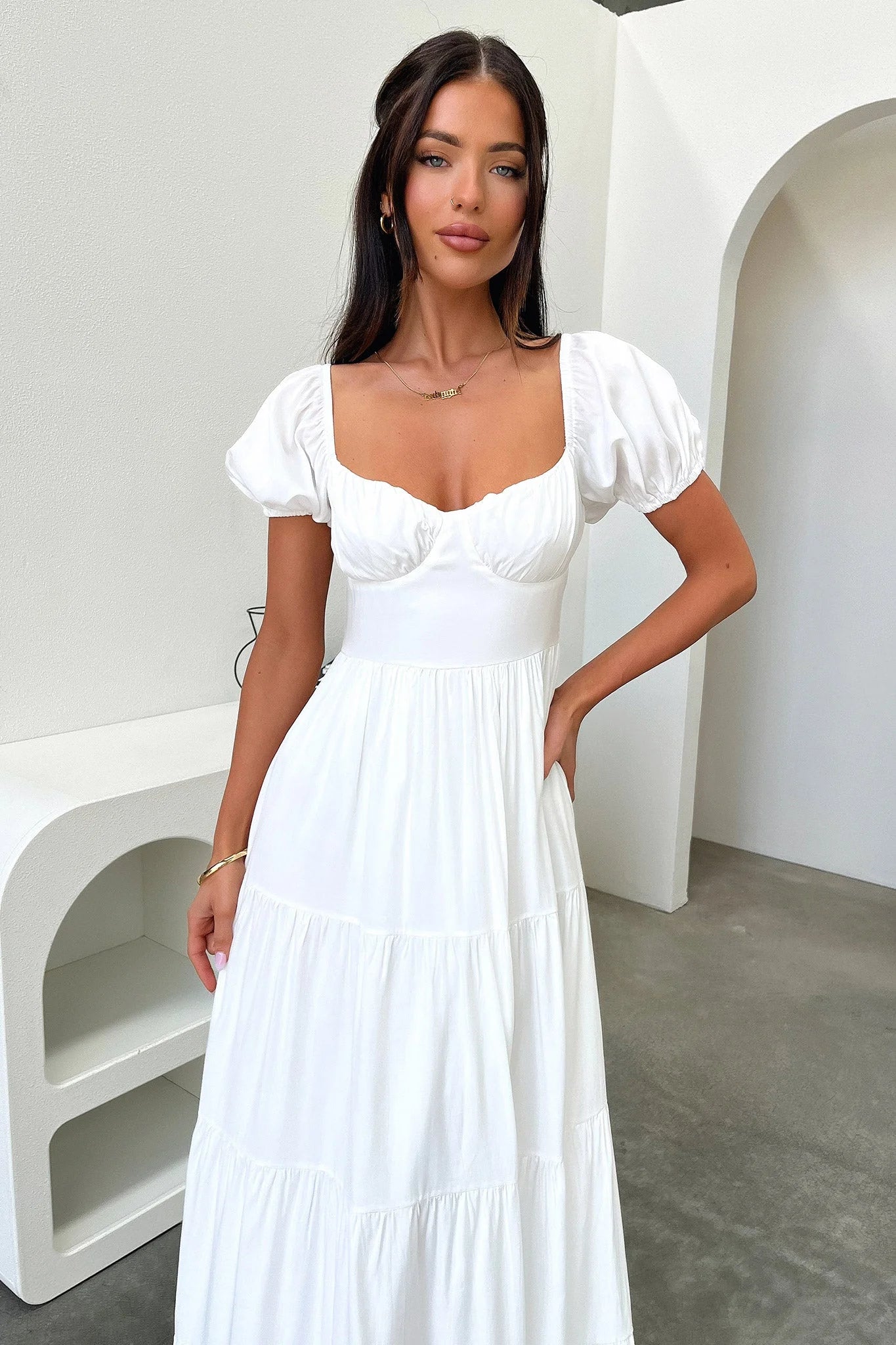 Leanne Midi Dress - Tie Shoulder Corset Lace Dress in White