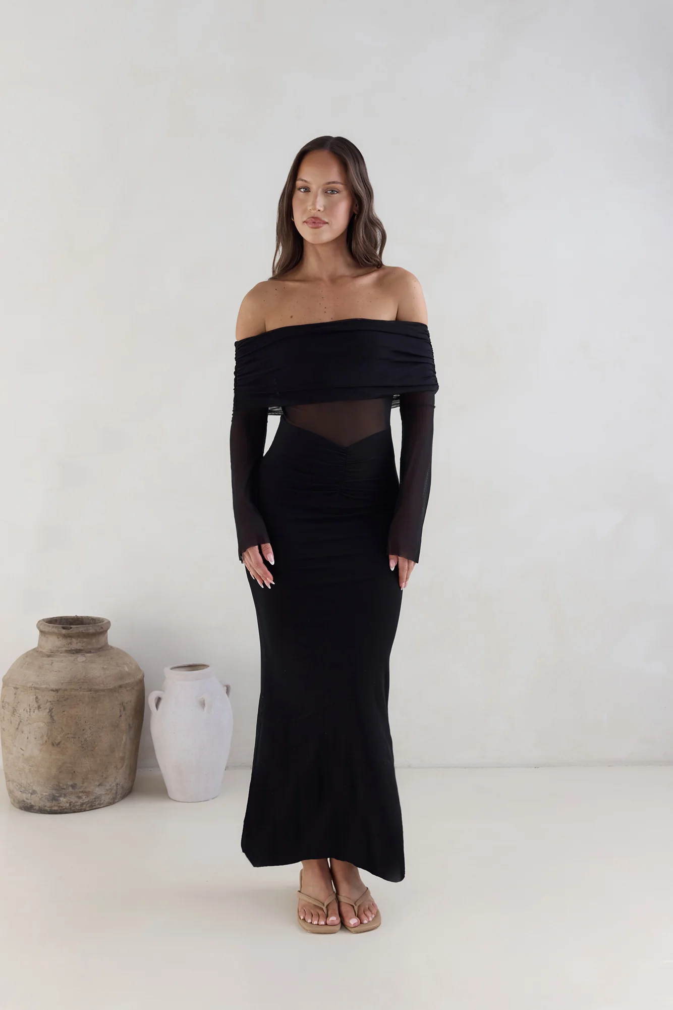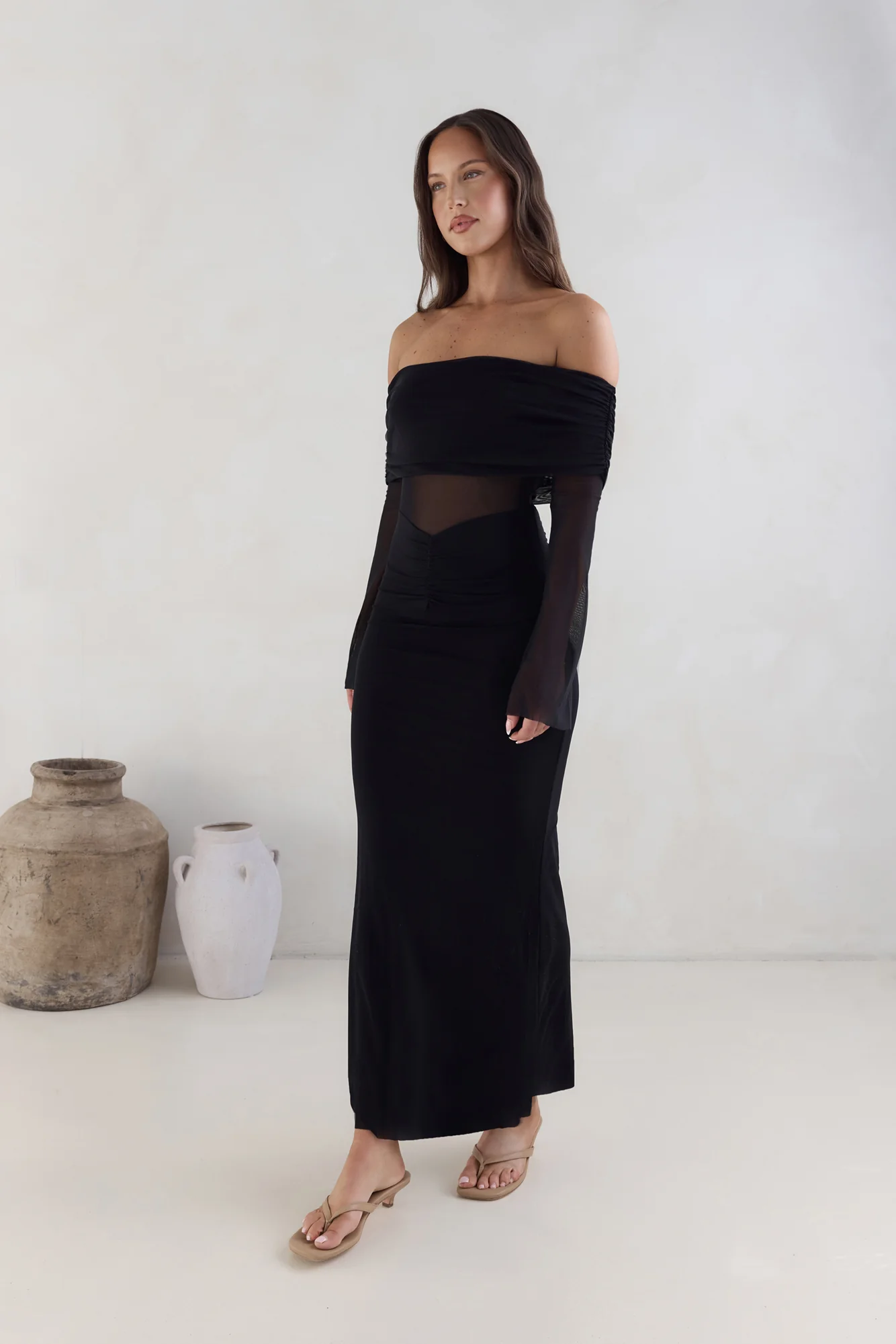 Sands Of Somewhere Off Shoulder Maxi Dress Black